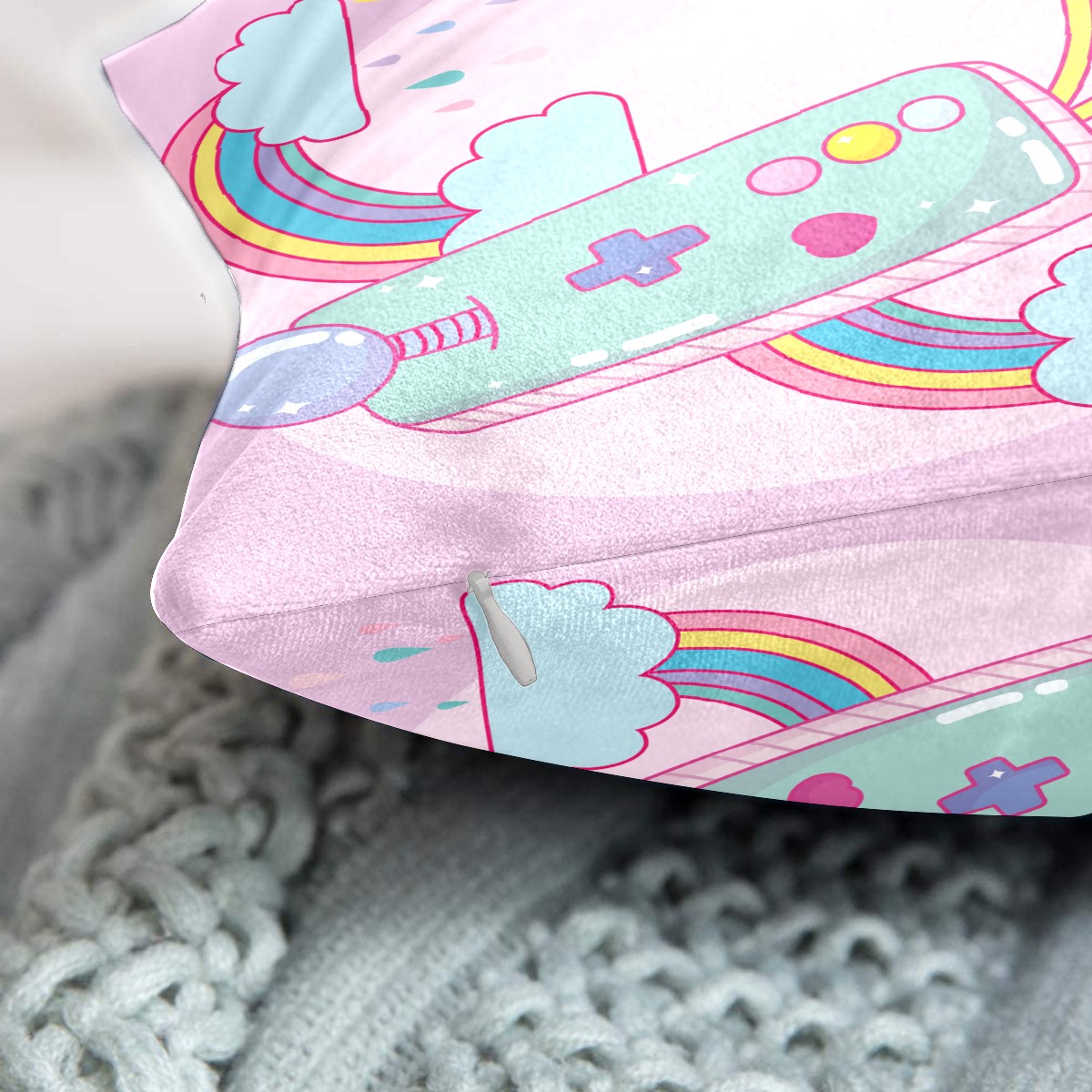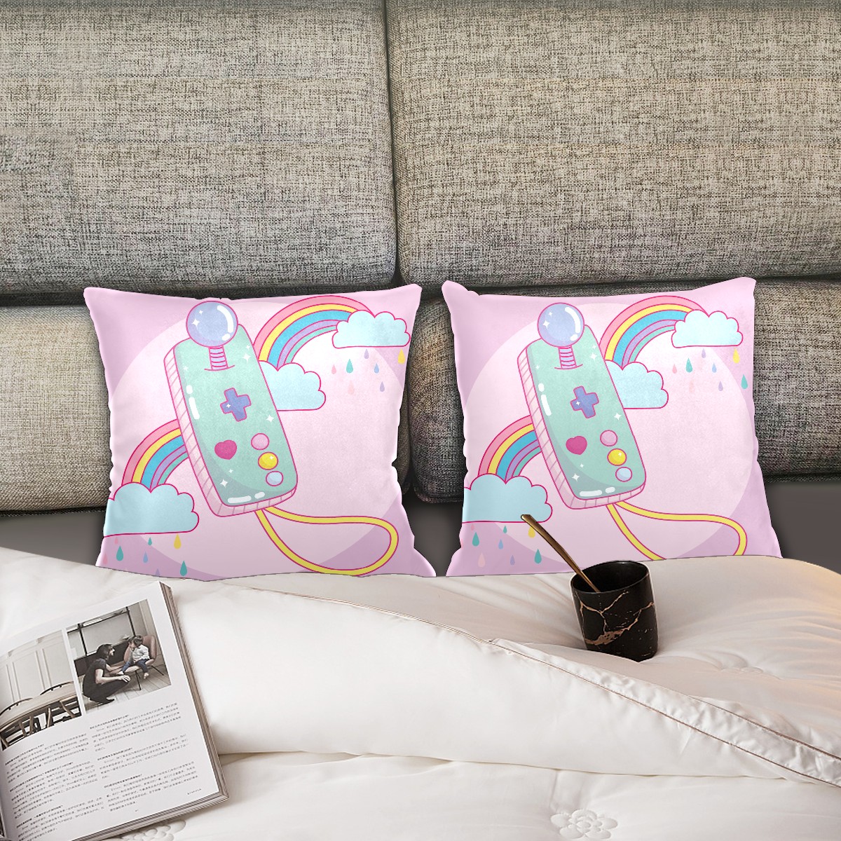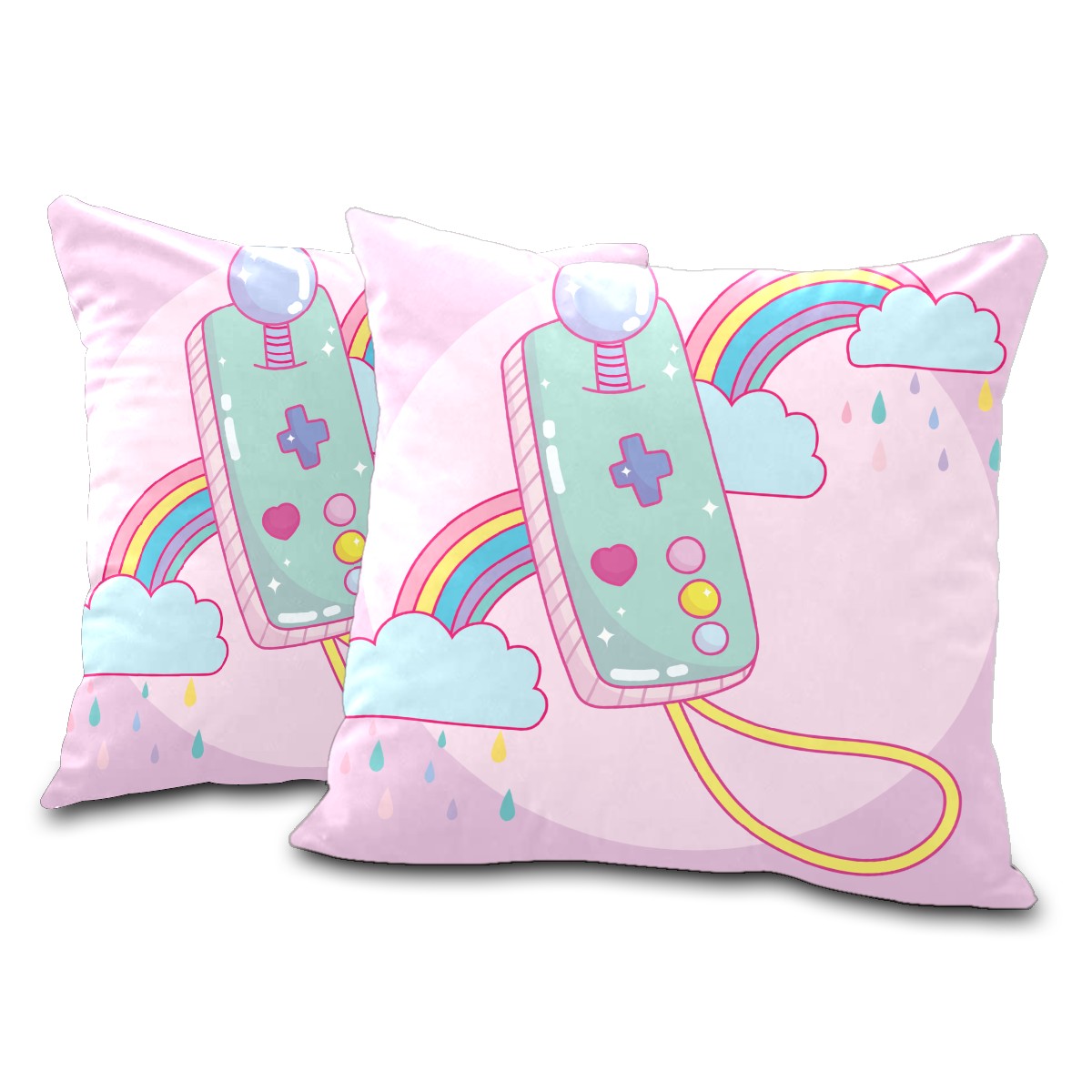 Girls Pink Gamepad Game Controller Rainbow Pillow Covers 16x16 Square Decorative Throw Pillow Cover Case Soft Velvet Cushion Cover for Couch Sofa Bed Living Room Car Home Decoration Set of 2