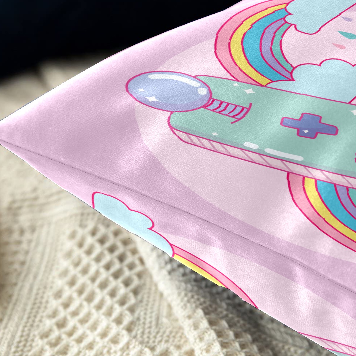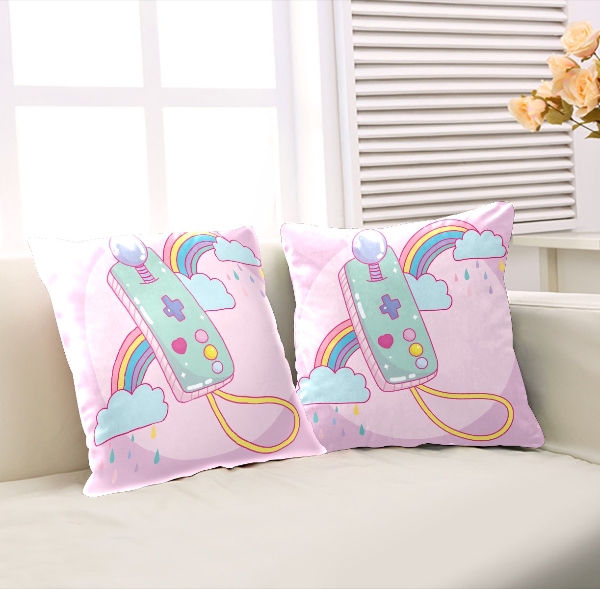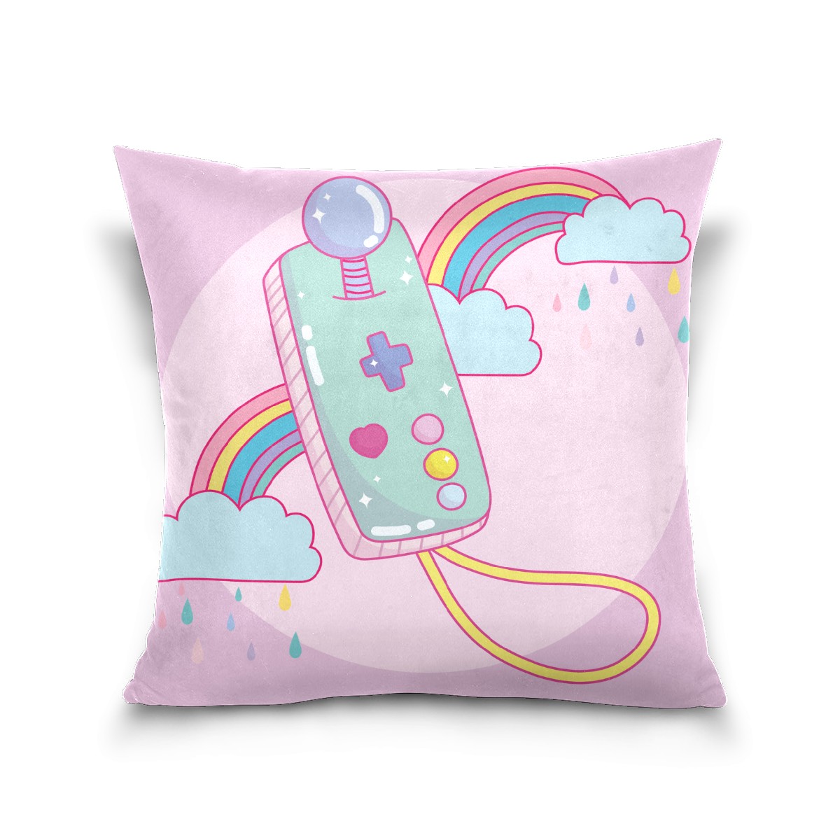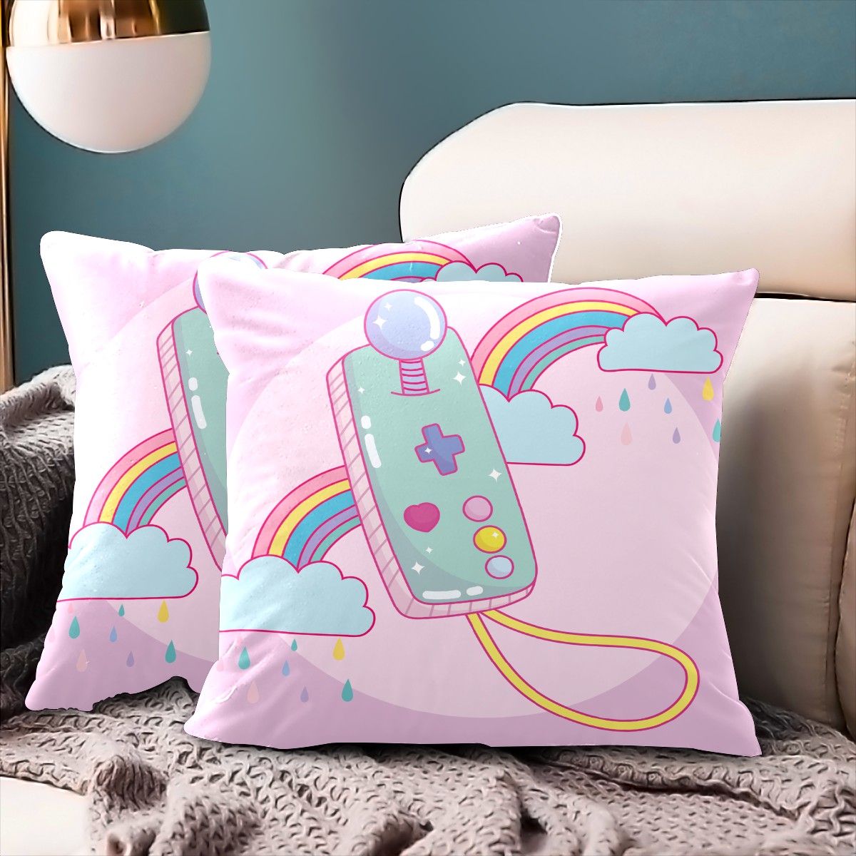 Girls Pink Gamepad Game Controller Rainbow Pillow Covers 16x16 Square Decorative Throw Pillow Cover Case Soft Velvet Cushion Cover for Couch Sofa Bed Living Room Car Home Decoration Set of 2