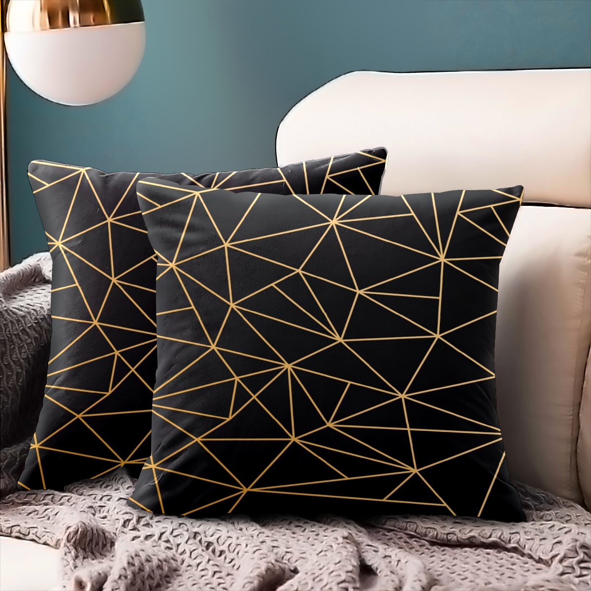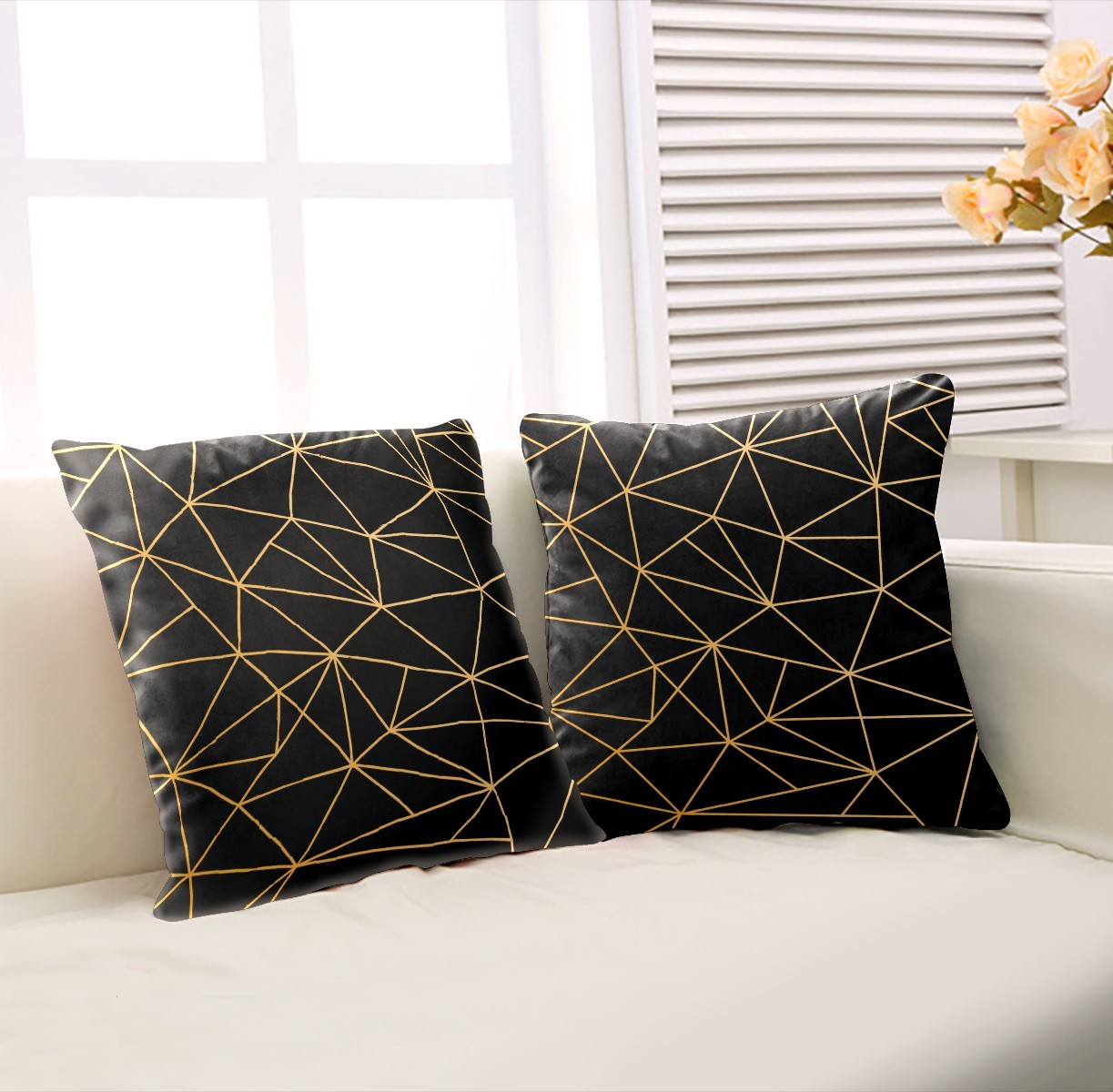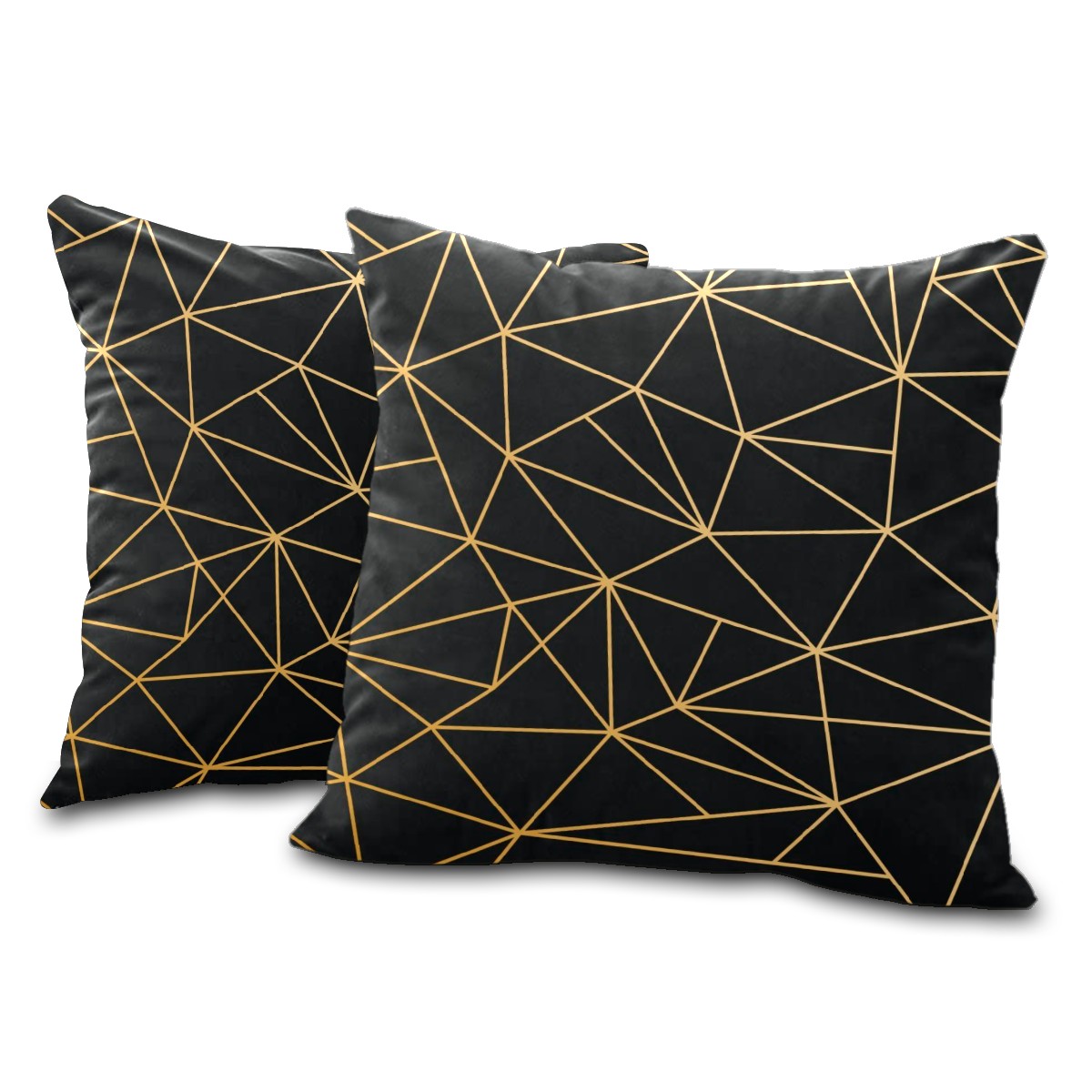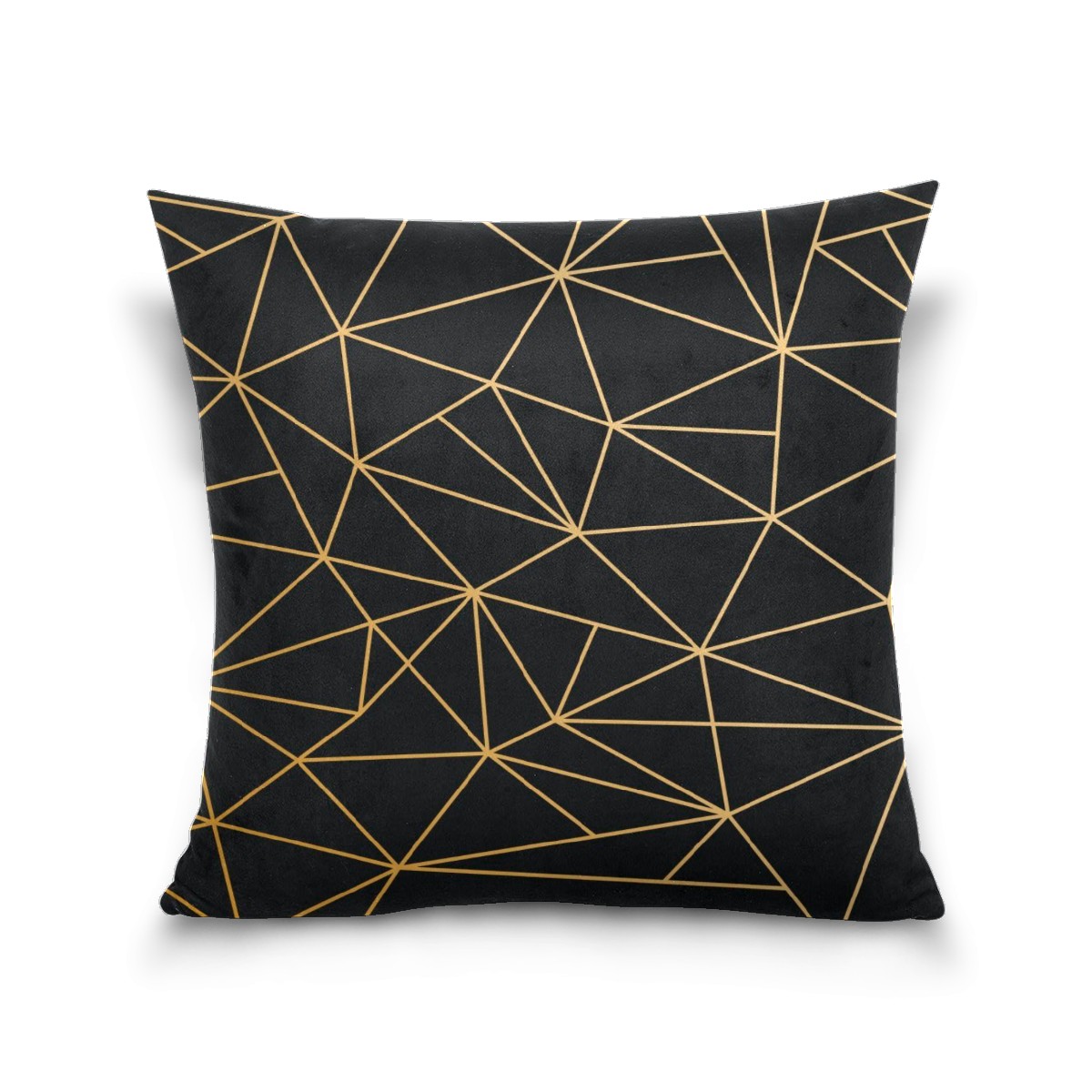 Golden Line Geometry Black Pillow Covers 16x16 Square Decorative Throw Pillow Cover Case Soft Velvet Cushion Cover for Couch Sofa Bed Living Room Car Home Decoration Set of 2