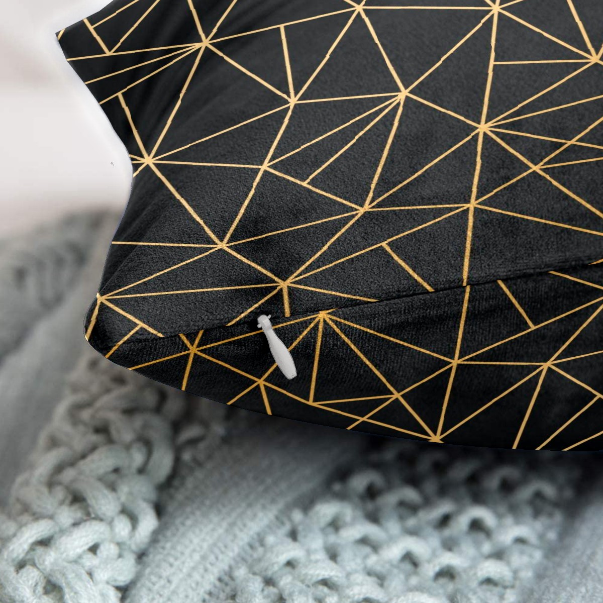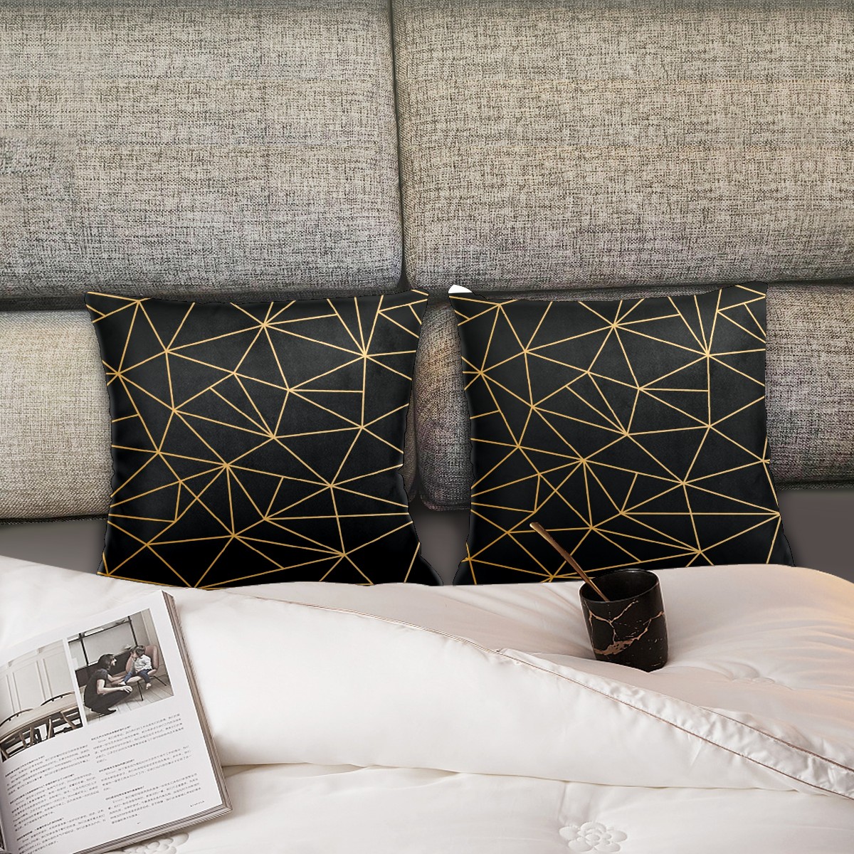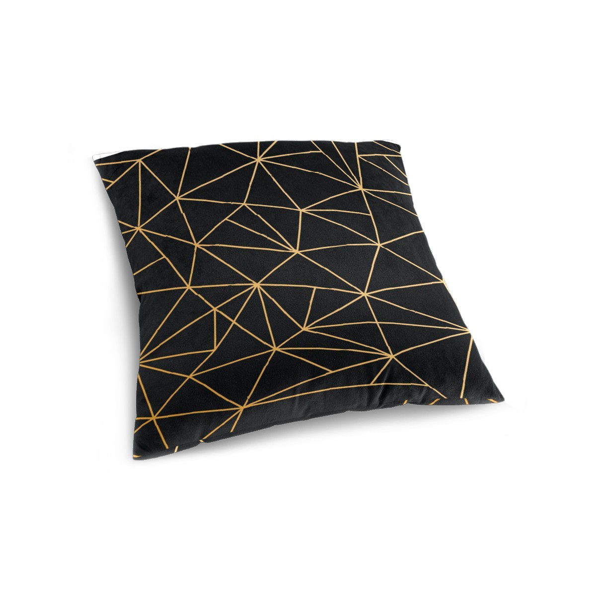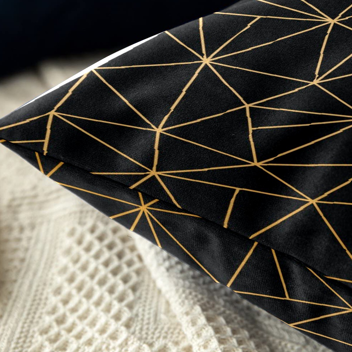 Golden Line Geometry Black Pillow Covers 16x16 Square Decorative Throw Pillow Cover Case Soft Velvet Cushion Cover for Couch Sofa Bed Living Room Car Home Decoration Set of 2