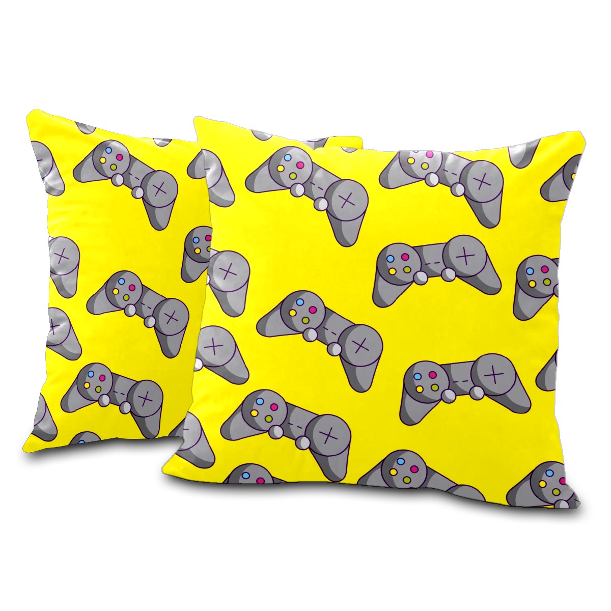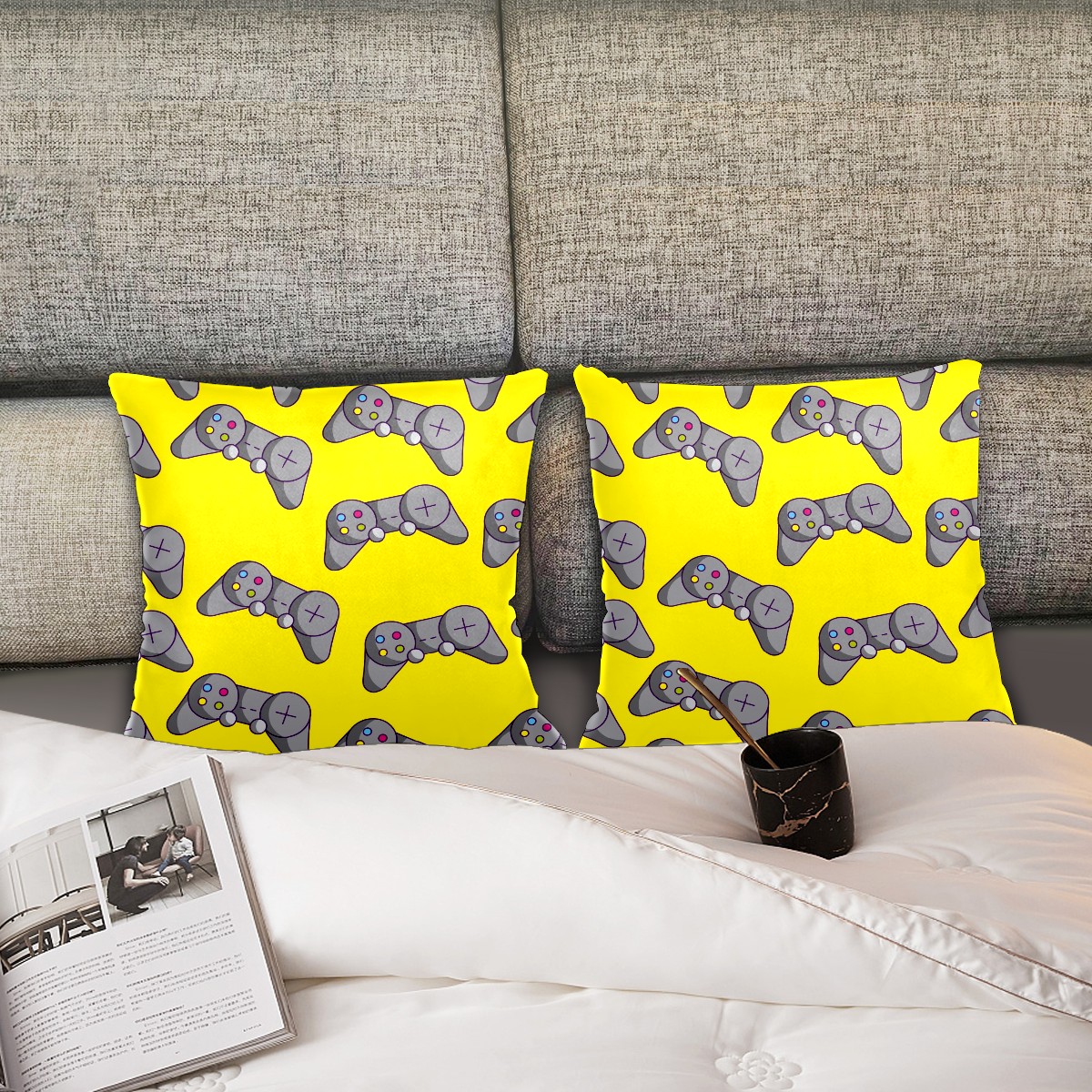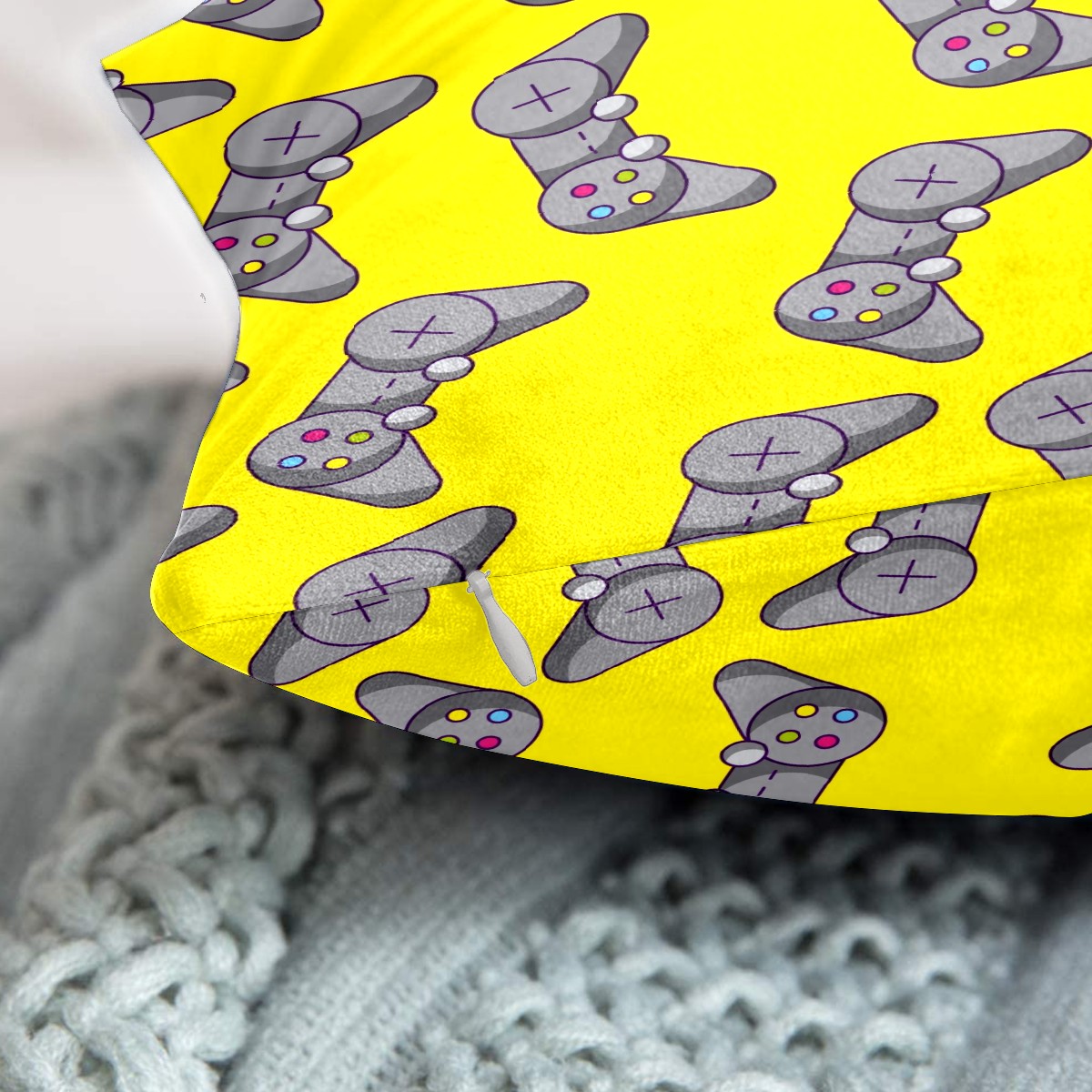Gamer Controller Video Game Yellow Pillow Covers 16x16 Square Decorative Throw Pillow Cover Case Soft Velvet Cushion Cover for Couch Sofa Bed Living Room Car Home Decoration Set of 2