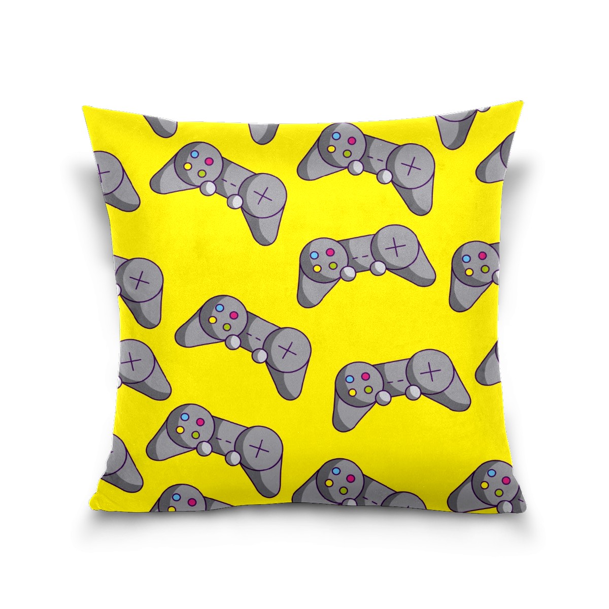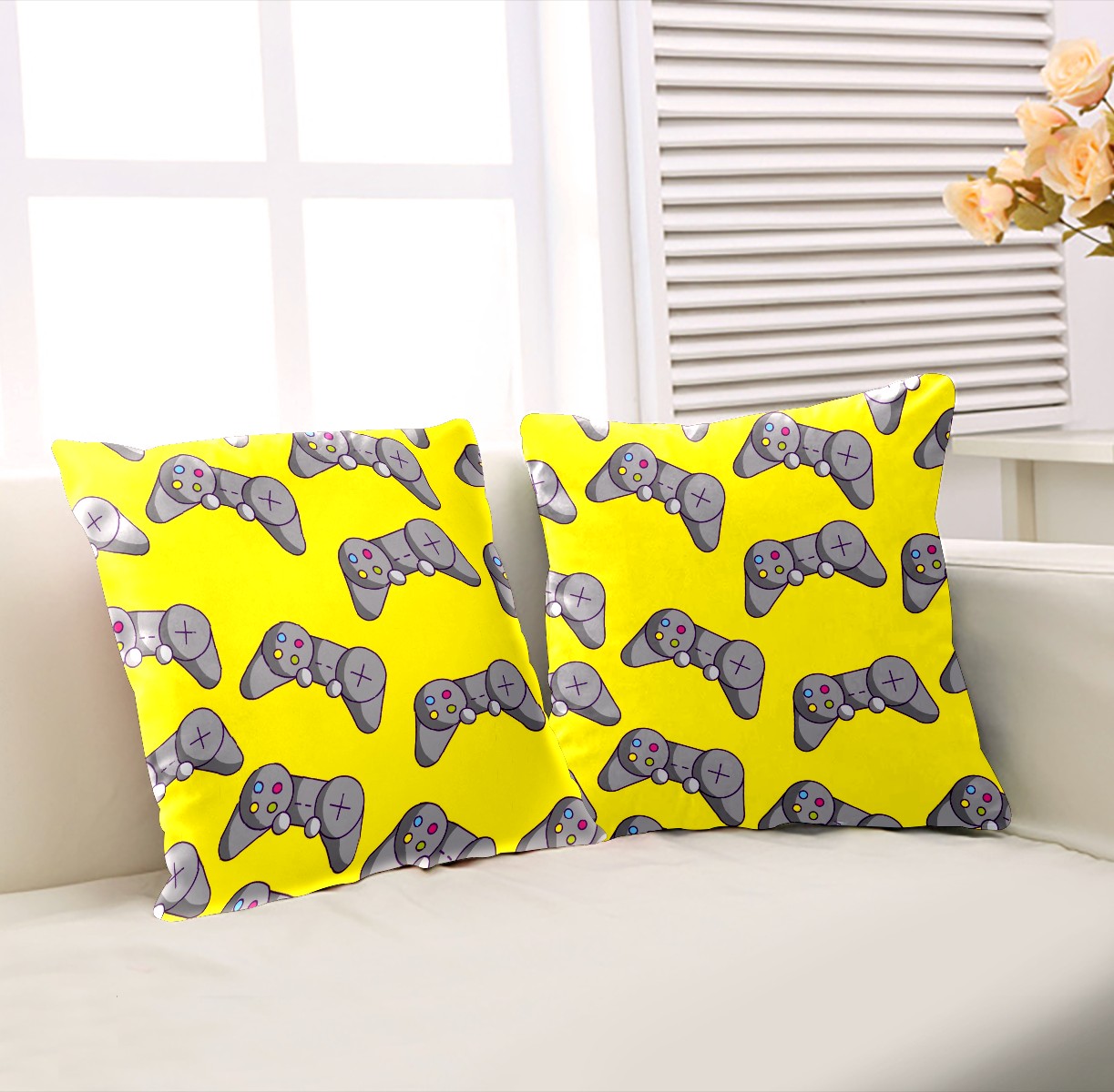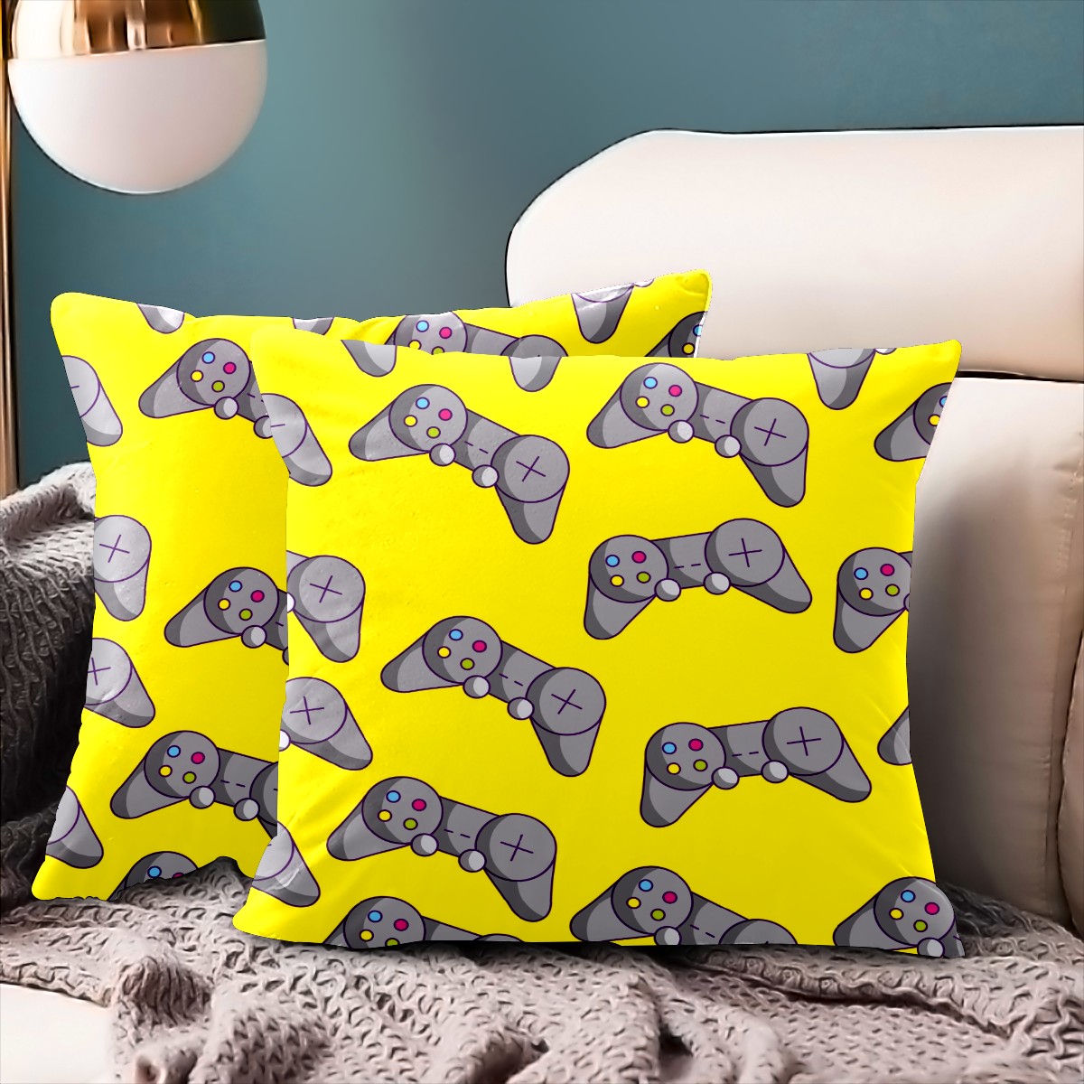 Gamer Controller Video Game Yellow Pillow Covers 16x16 Square Decorative Throw Pillow Cover Case Soft Velvet Cushion Cover for Couch Sofa Bed Living Room Car Home Decoration Set of 2