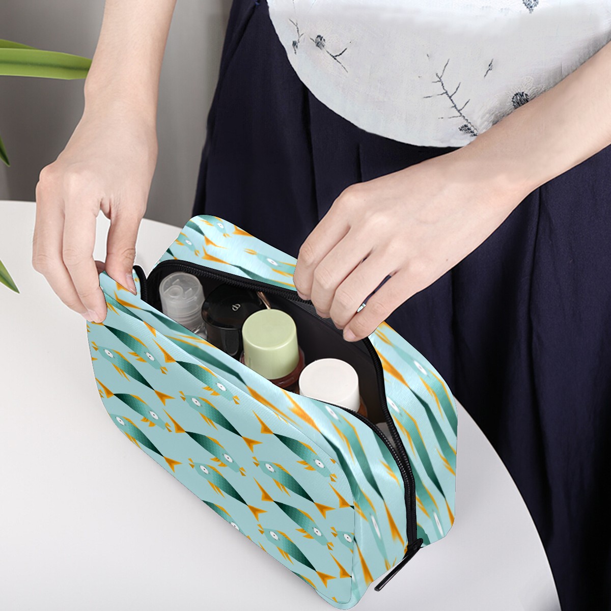 Cosmetic Bag for Women Girls Trave Makeup Bag Toiletry Case Pouch Accessories Organizer Cute Cartoon Fish Pattern