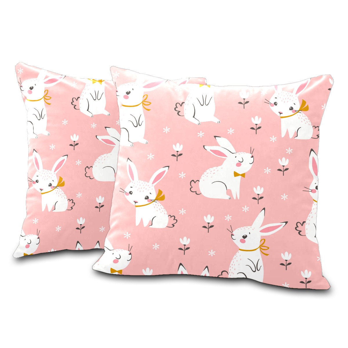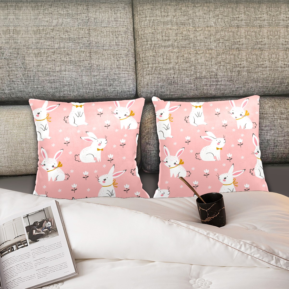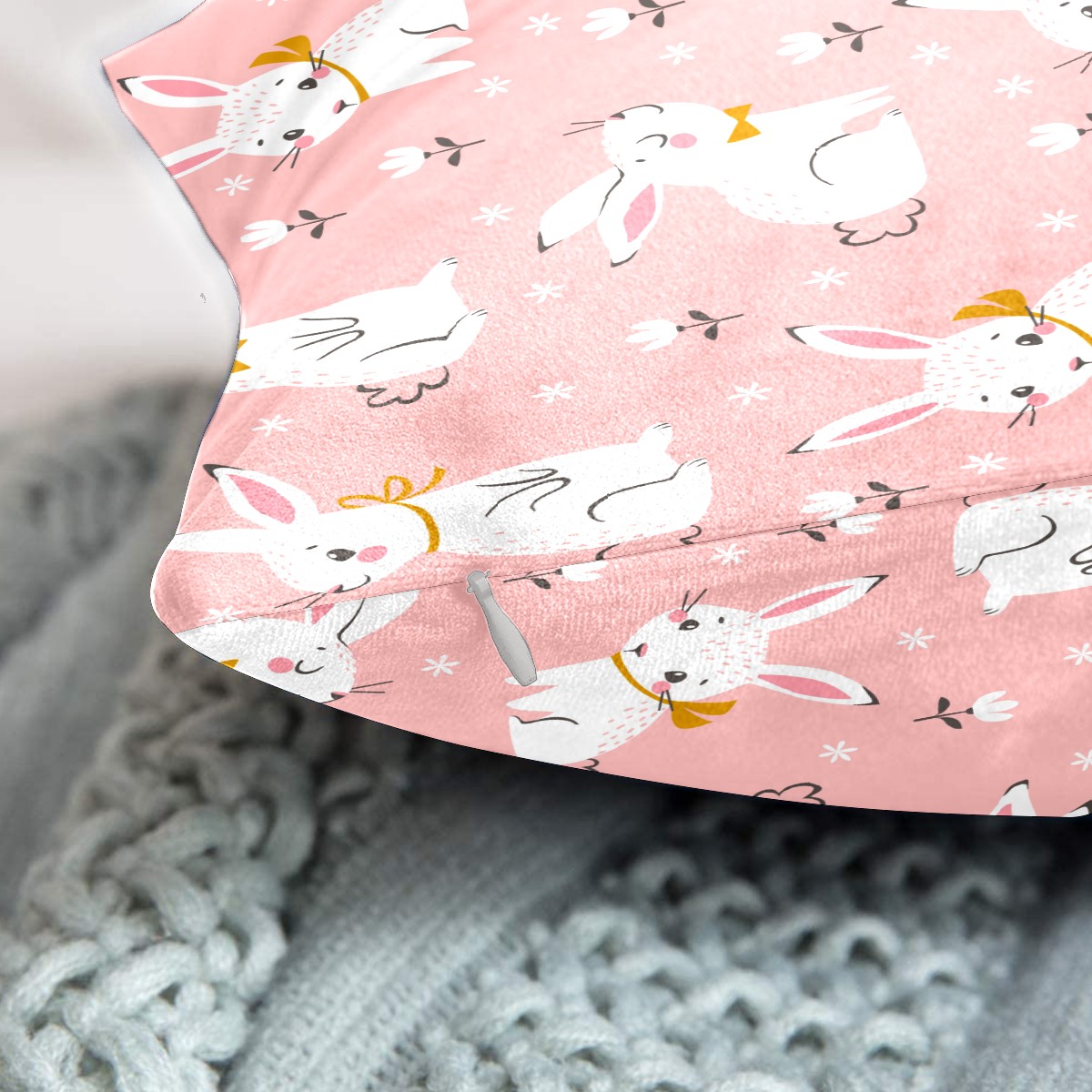 Cute Rabbit Bunny Pink Pillow Covers 16x16 Square Decorative Throw Pillow Cover Case Soft Velvet Cushion Cover for Couch Sofa Bed Living Room Car Home Decoration Set of 2