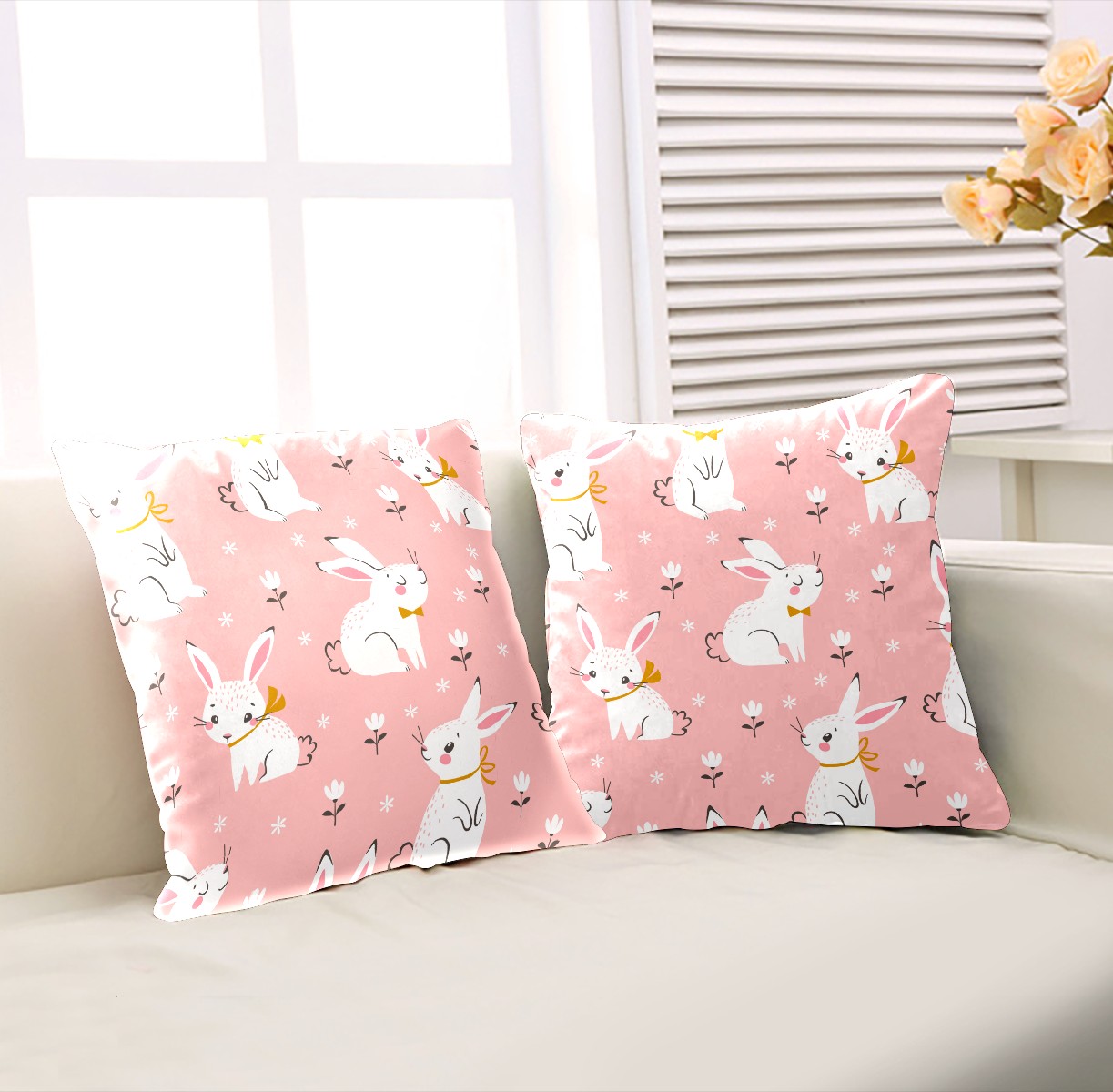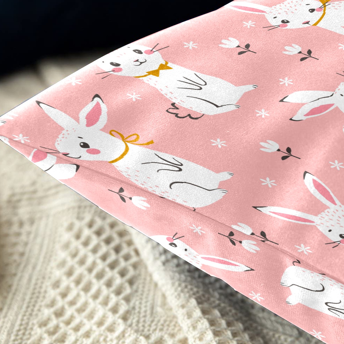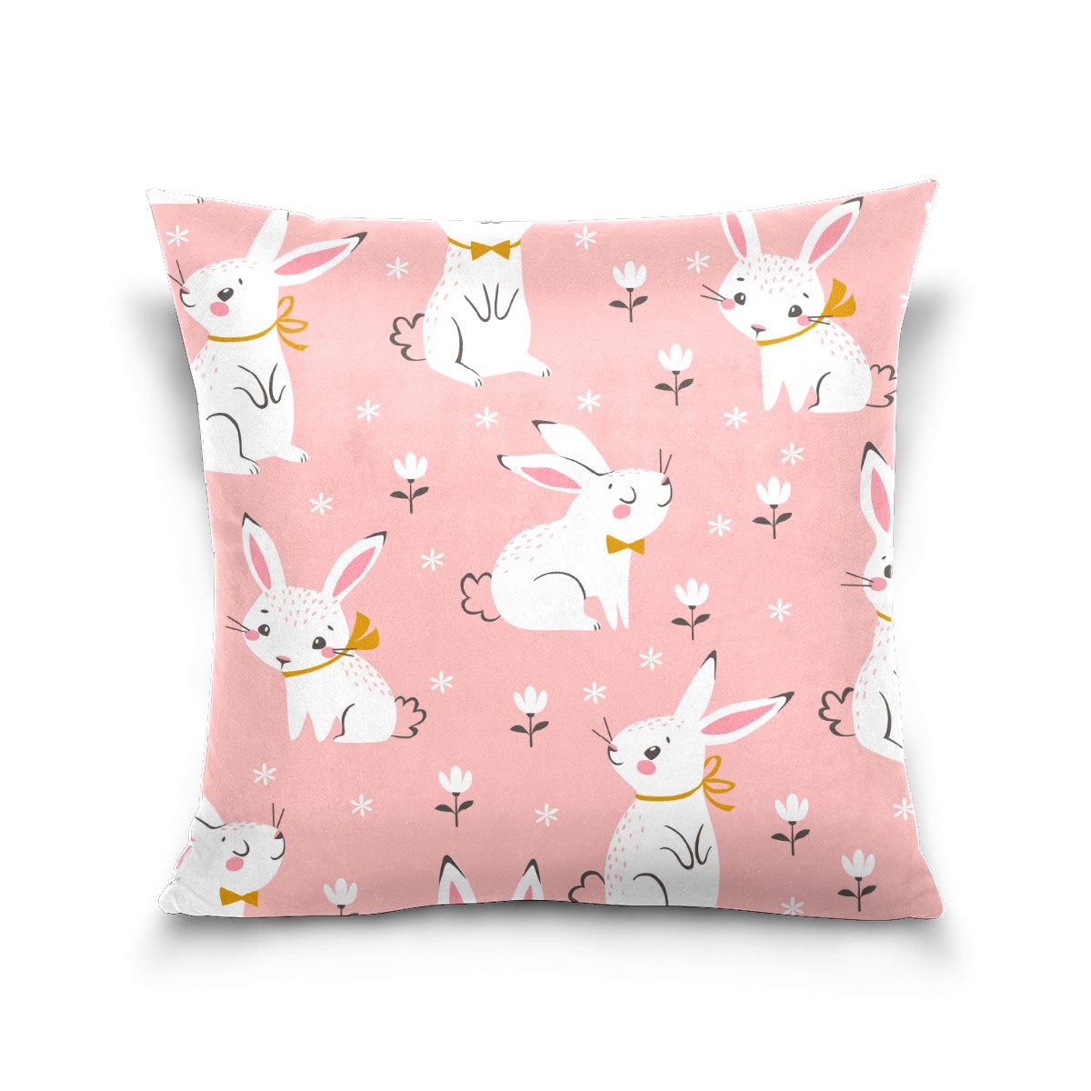 Cute Rabbit Bunny Pink Pillow Covers 16x16 Square Decorative Throw Pillow Cover Case Soft Velvet Cushion Cover for Couch Sofa Bed Living Room Car Home Decoration Set of 2