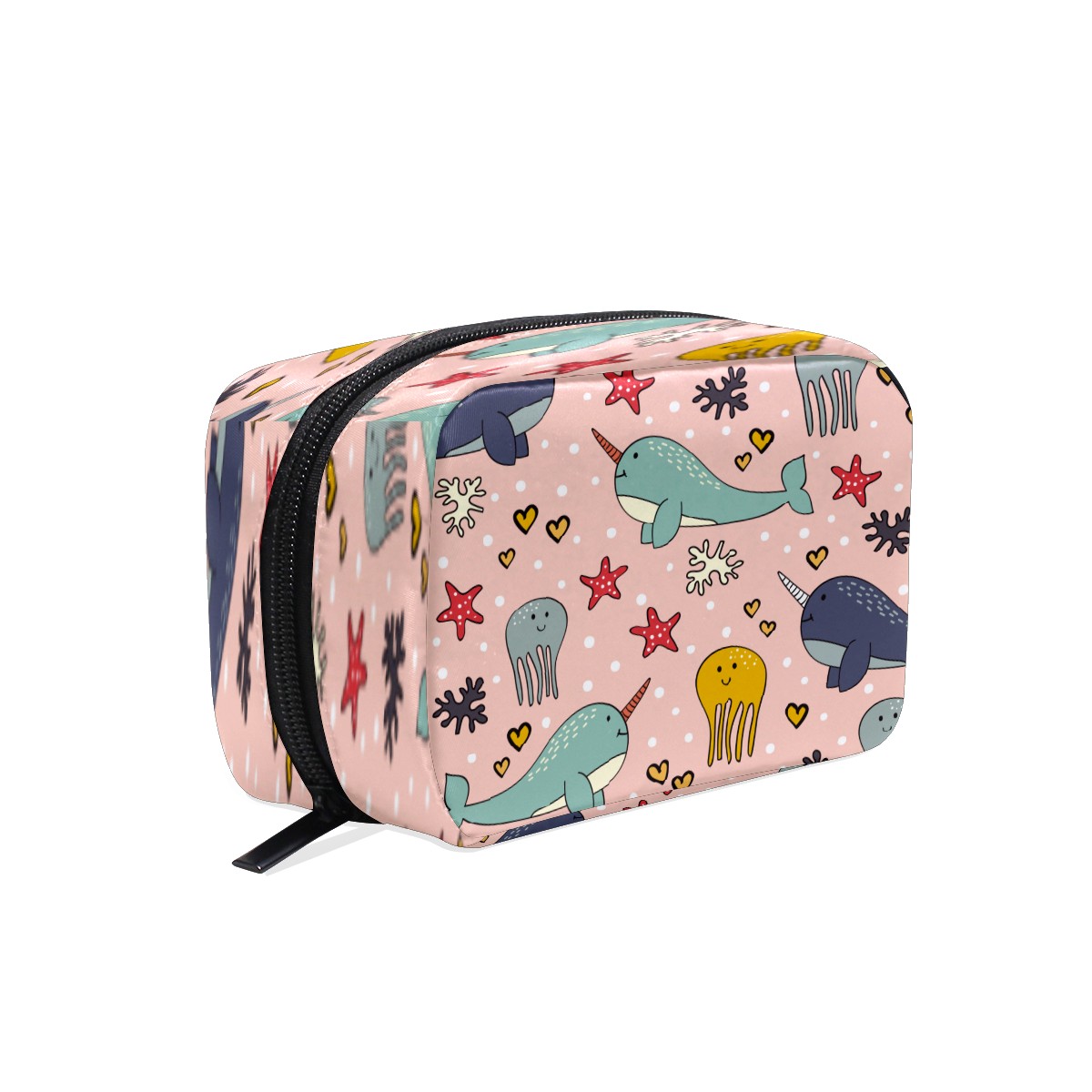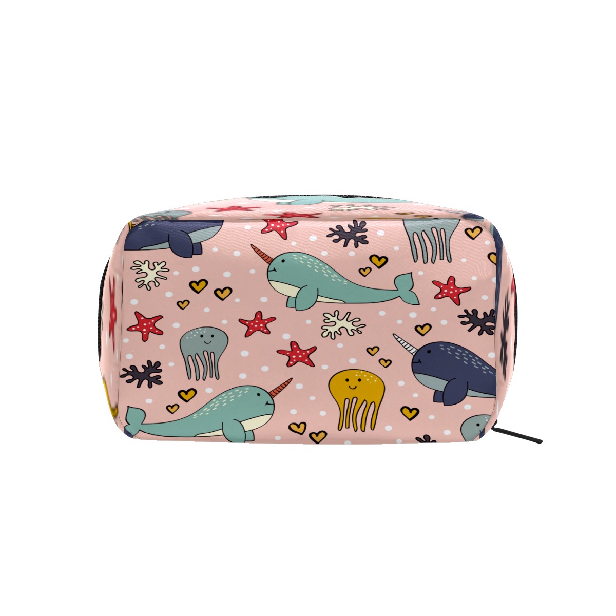 Cosmetic Bag for Women Girls Trave Makeup Bag Toiletry Case Pouch Accessories Organizer Cute Cartoon Dolphin Starfish Heart Dot