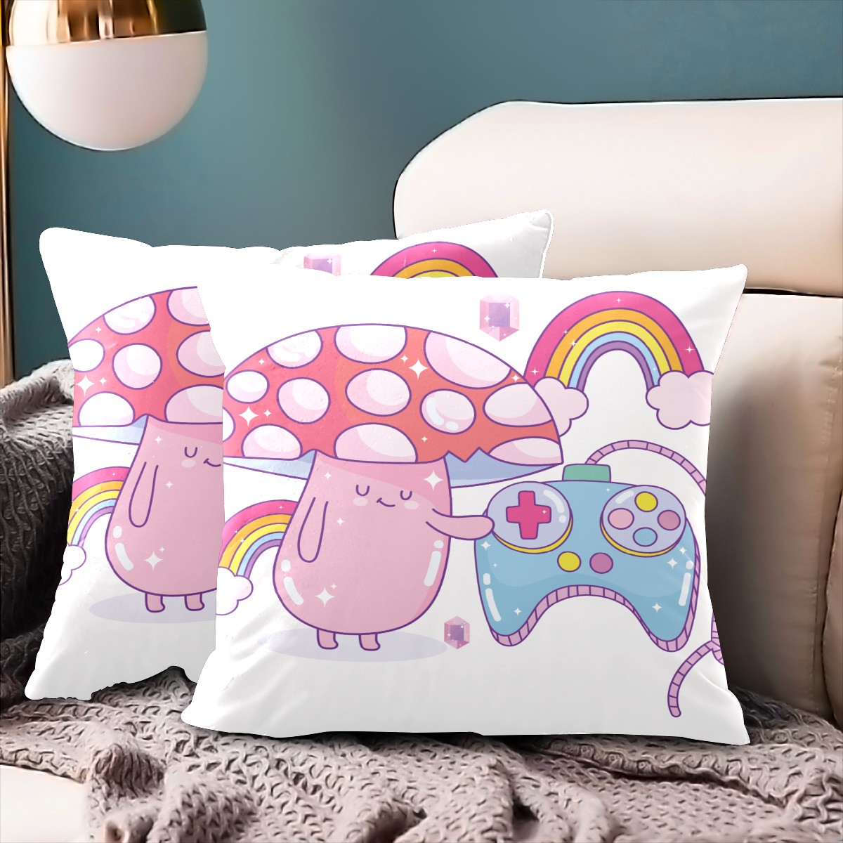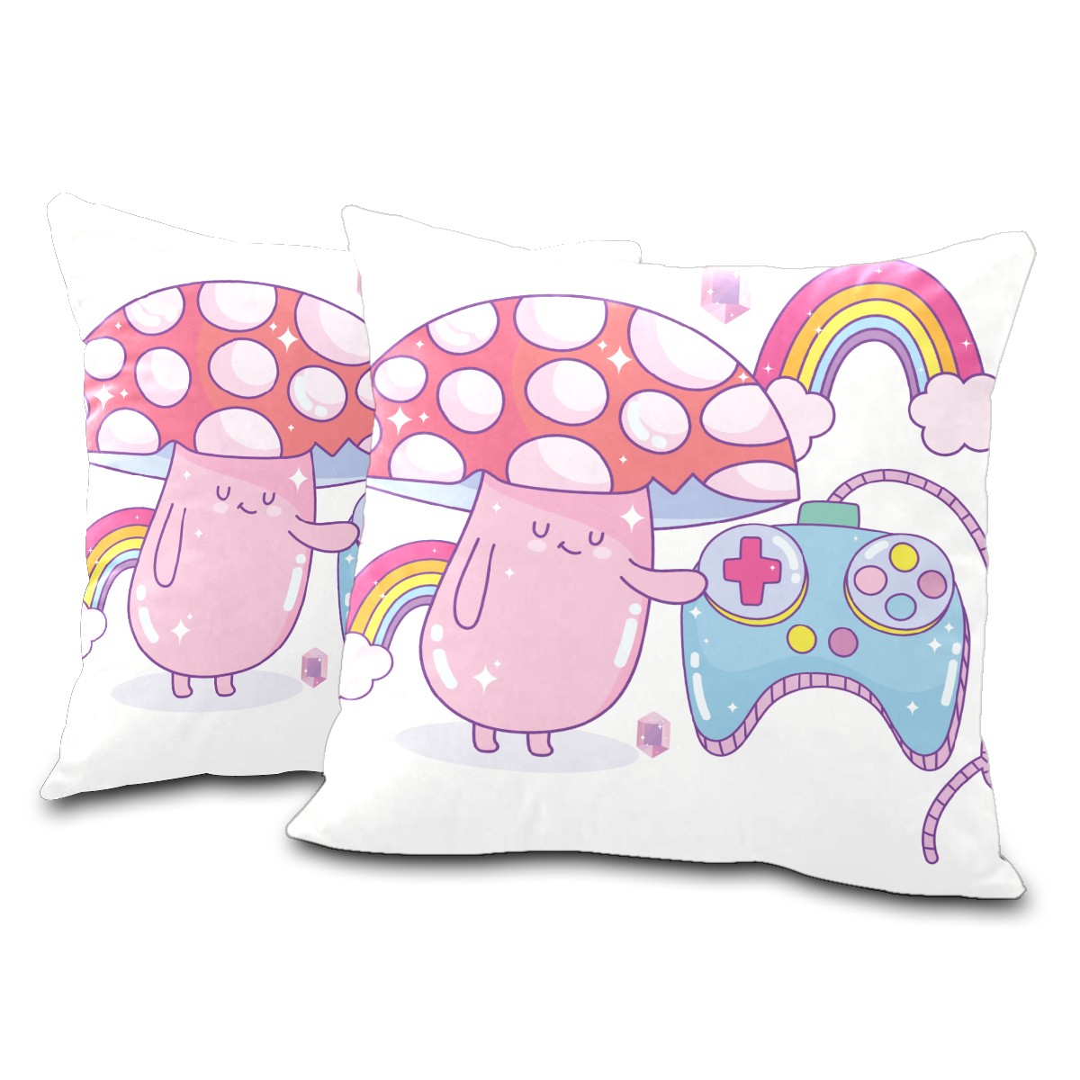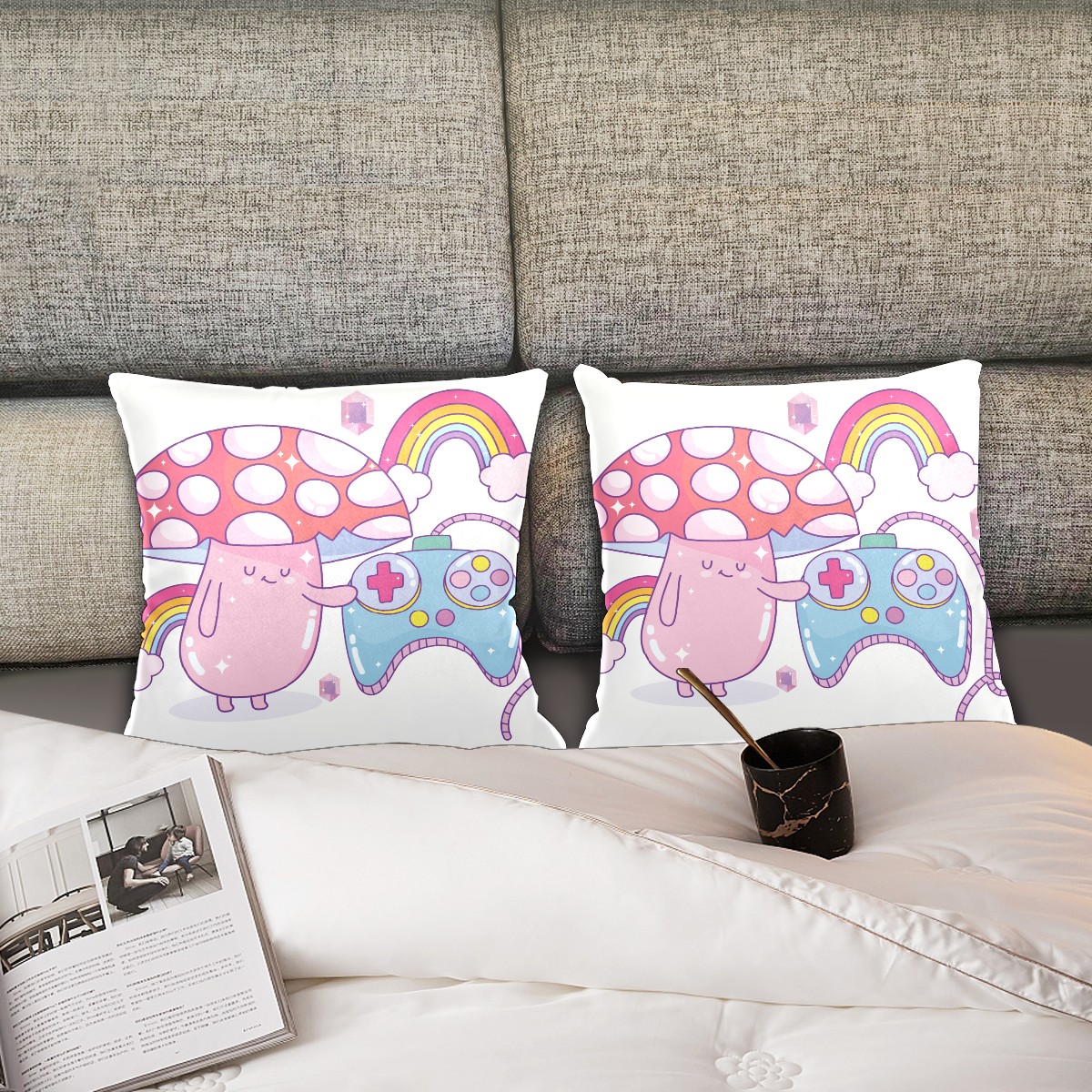 Cute Mushroom Holding Gamer Controller Pillow Covers 16x16 Square Decorative Throw Pillow Cover Case Soft Velvet Cushion Cover for Couch Sofa Bed Living Room Car Home Decoration Set of 2
