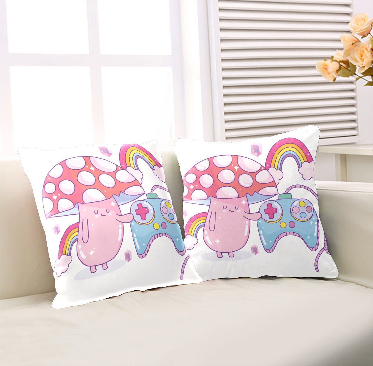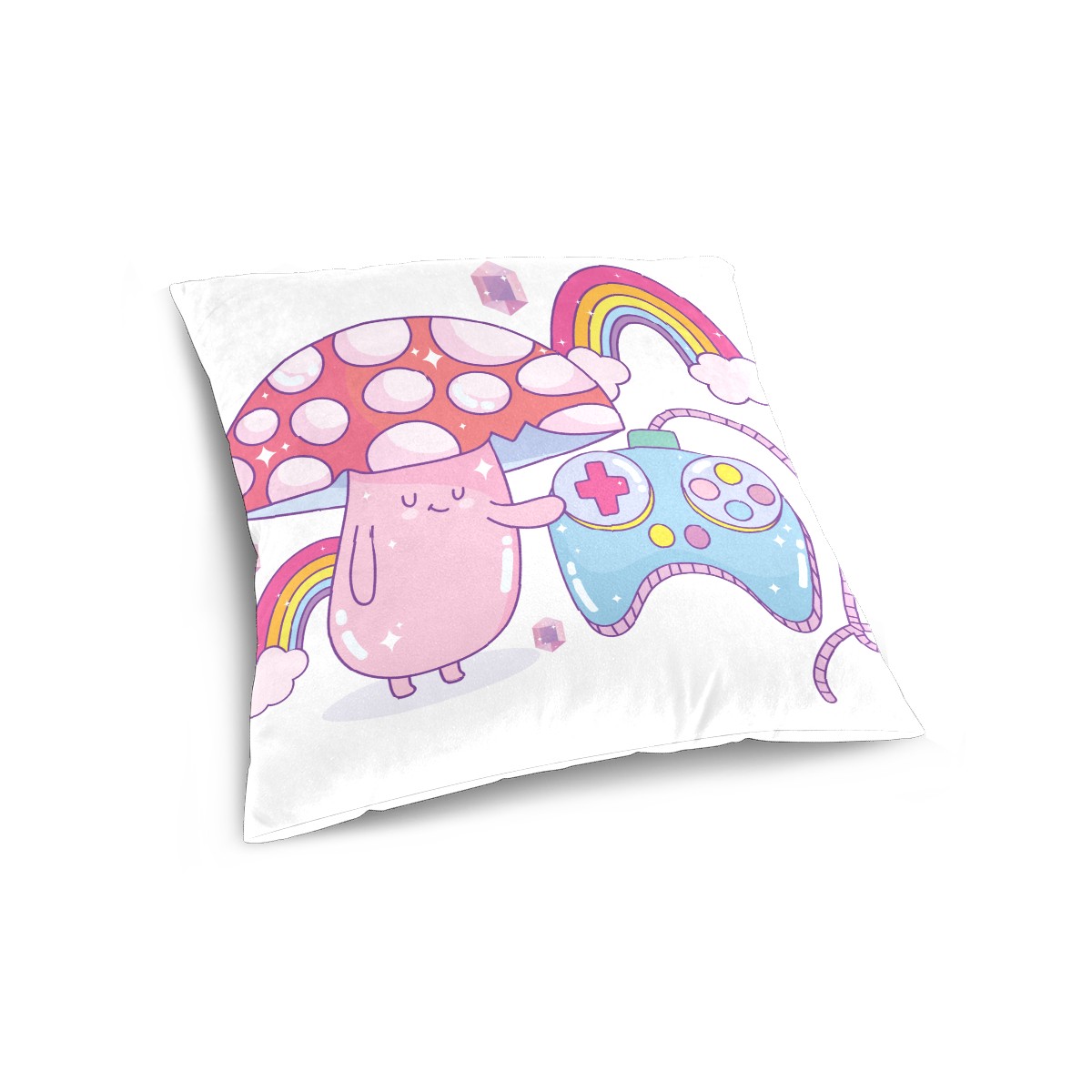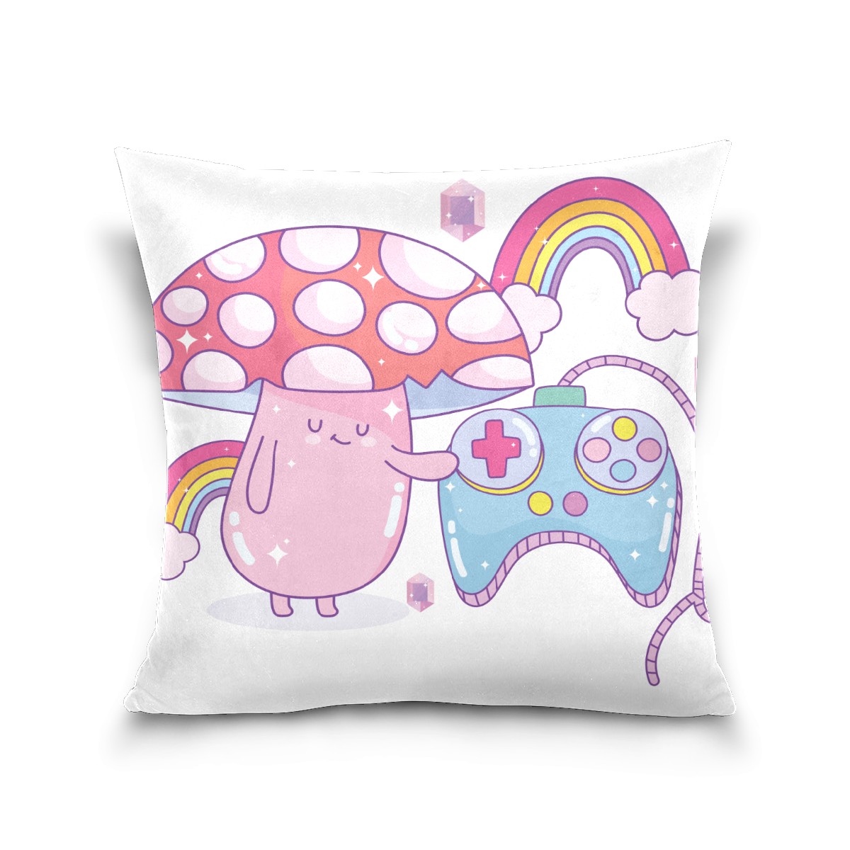 Cute Mushroom Holding Gamer Controller Pillow Covers 16x16 Square Decorative Throw Pillow Cover Case Soft Velvet Cushion Cover for Couch Sofa Bed Living Room Car Home Decoration Set of 2