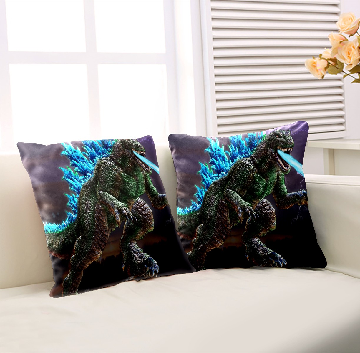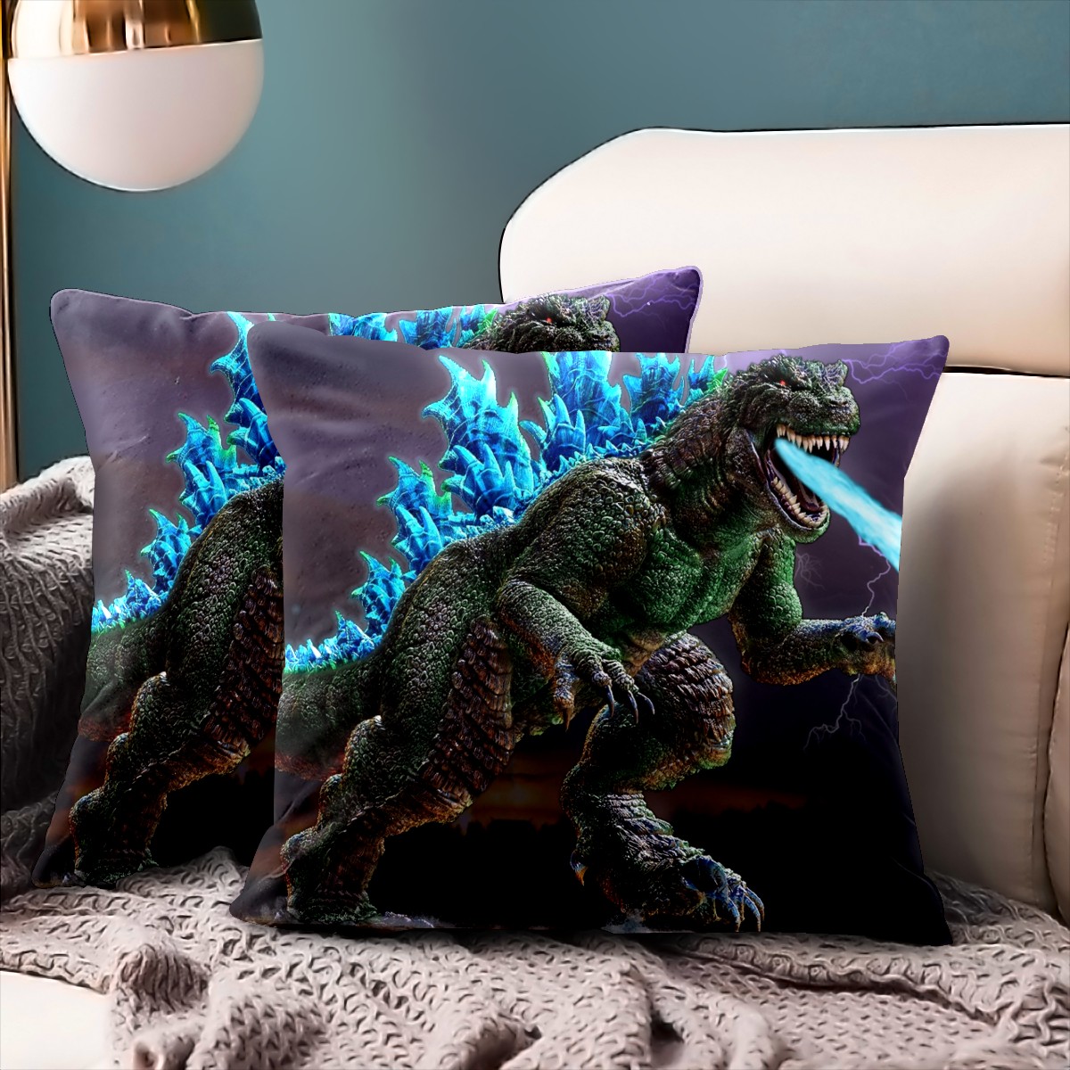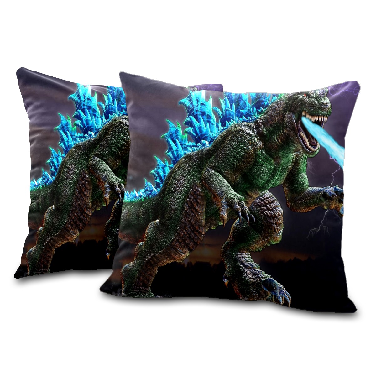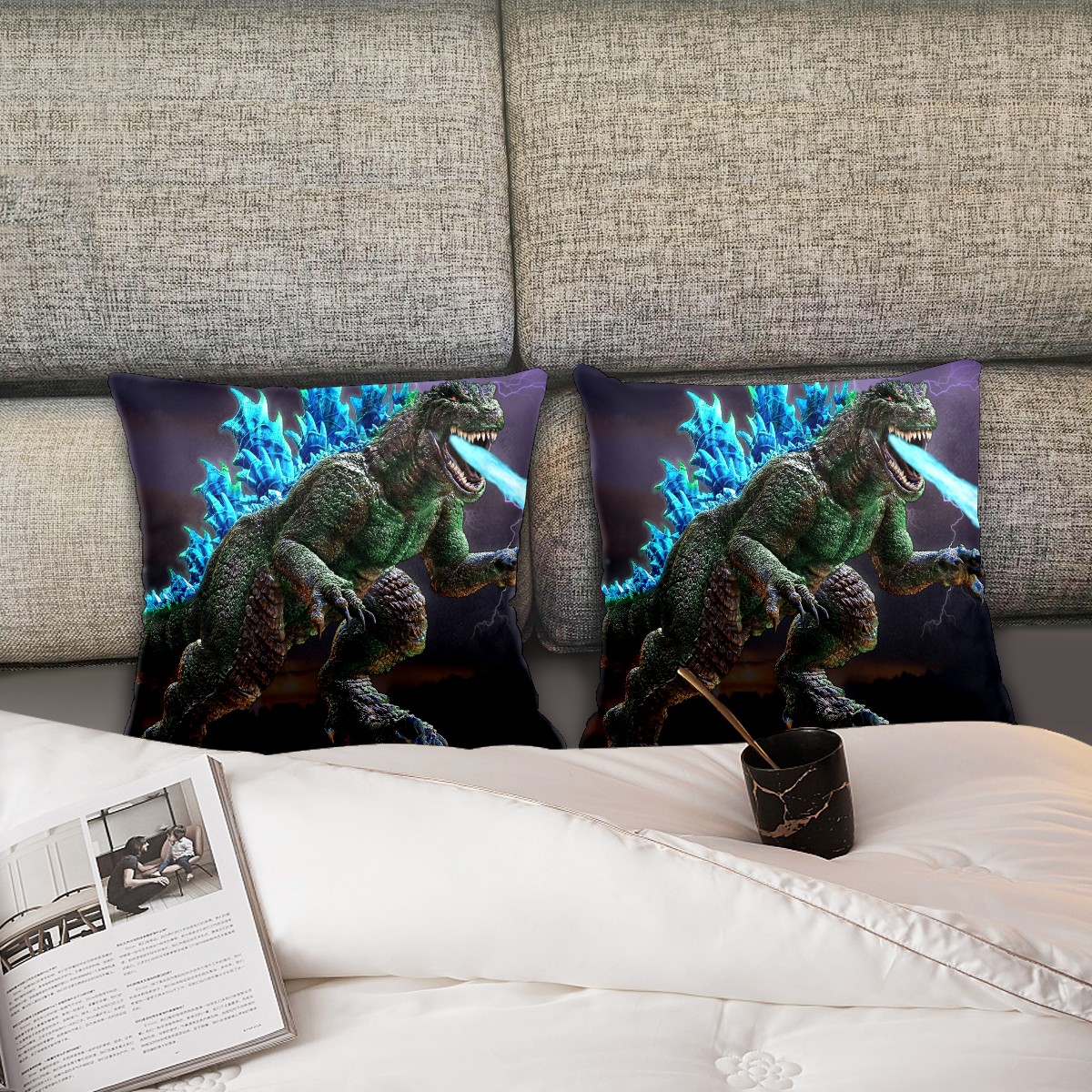 Cool Japanese Godzilla Monster Pillow Covers 16x16 Square Decorative Throw Pillow Cover Case Soft Velvet Cushion Cover for Couch Sofa Bed Living Room Car Home Decoration Set of 2