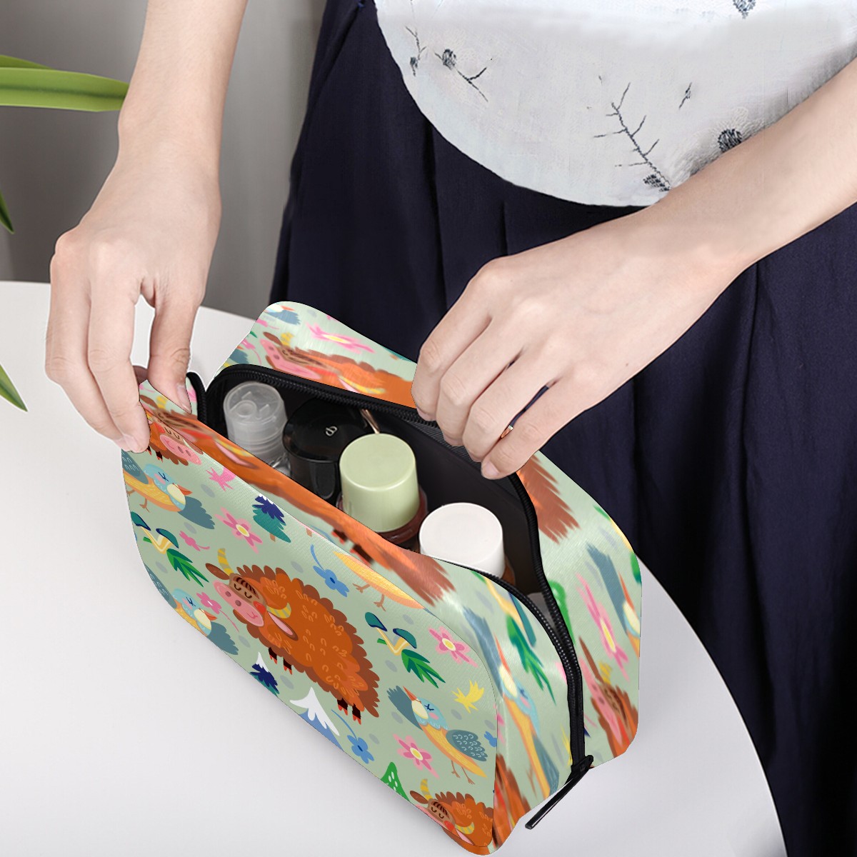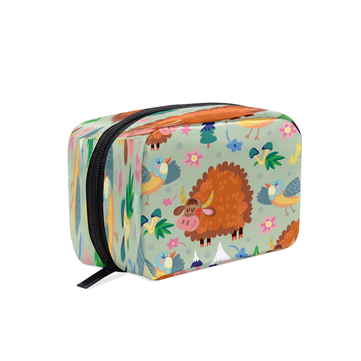 Cosmetic Bag for Women Girls Trave Makeup Bag Toiletry Case Pouch Accessories Organizer Cute Animal Lama Bird Yak Horse Flowers Butterfly Trees