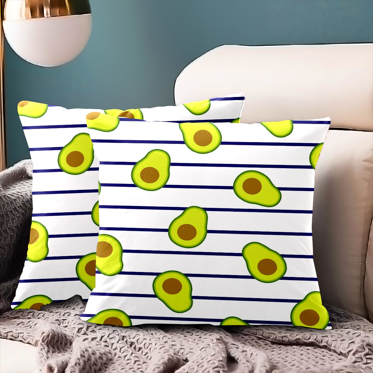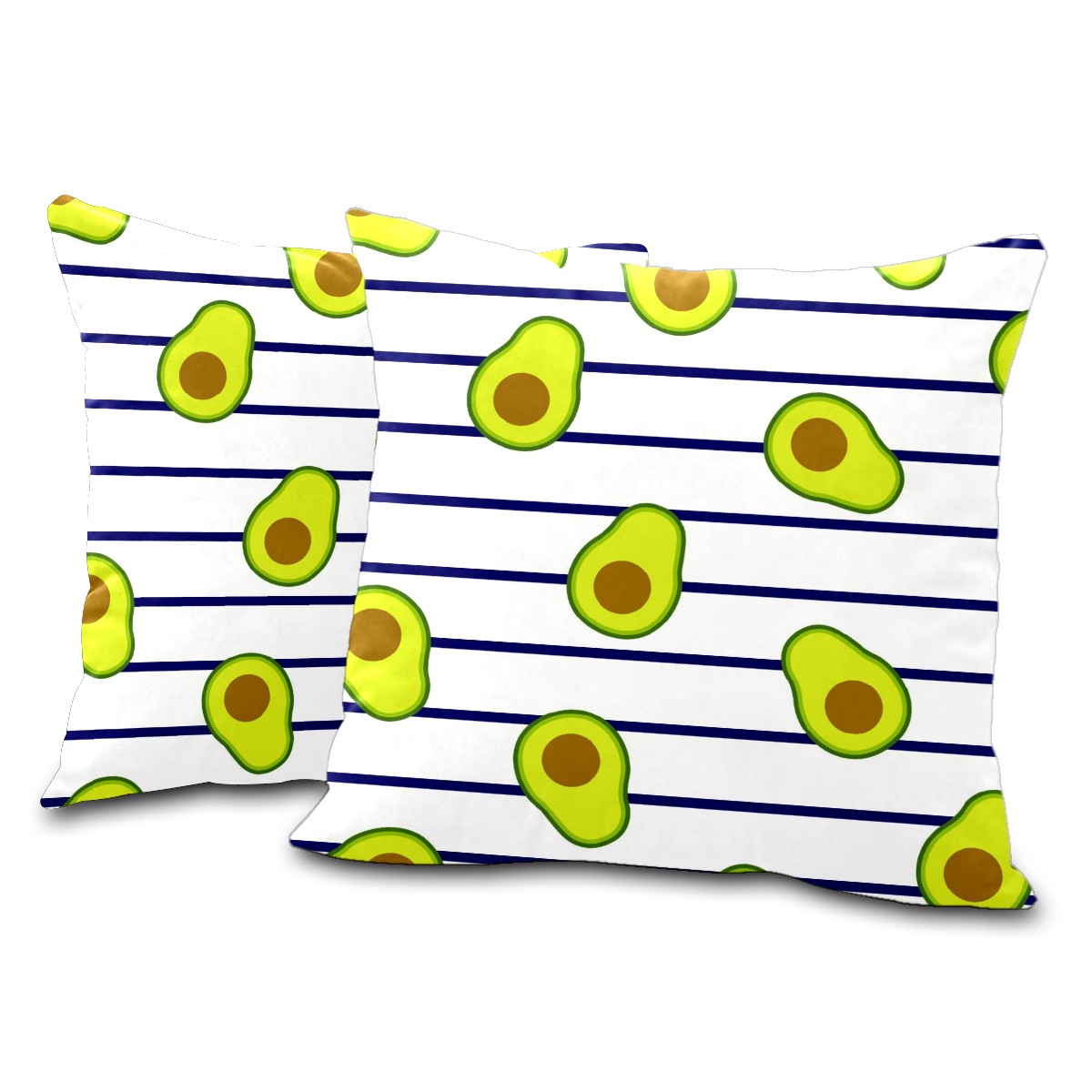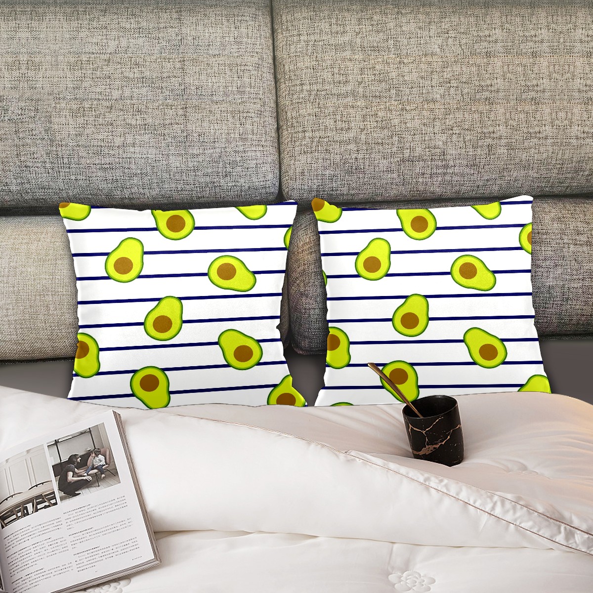 Cartoon Avocado And Stripes Pillow Covers 16x16 Square Decorative Throw Pillow Cover Case Soft Velvet Cushion Cover for Couch Sofa Bed Living Room Car Home Decoration Set of 2