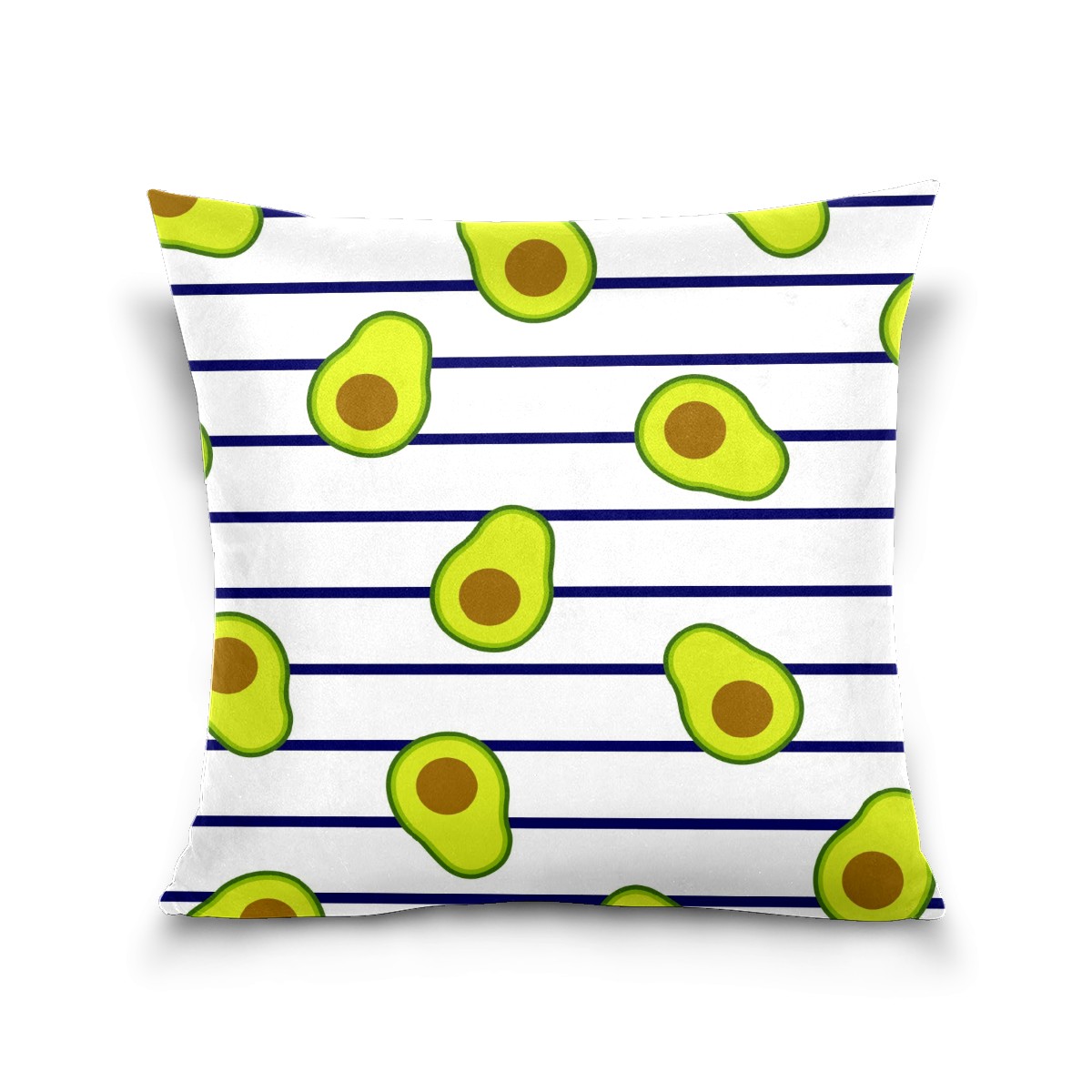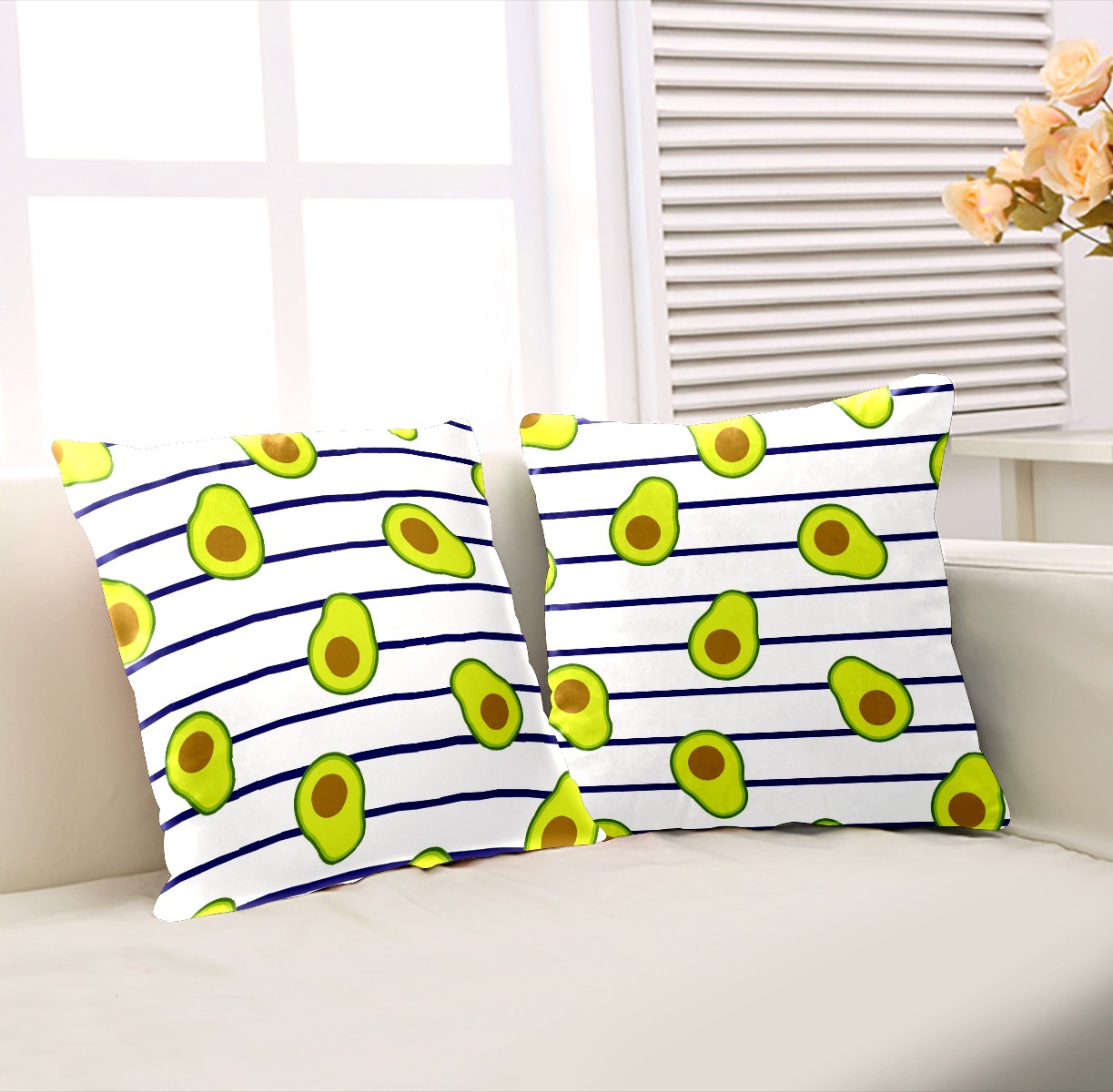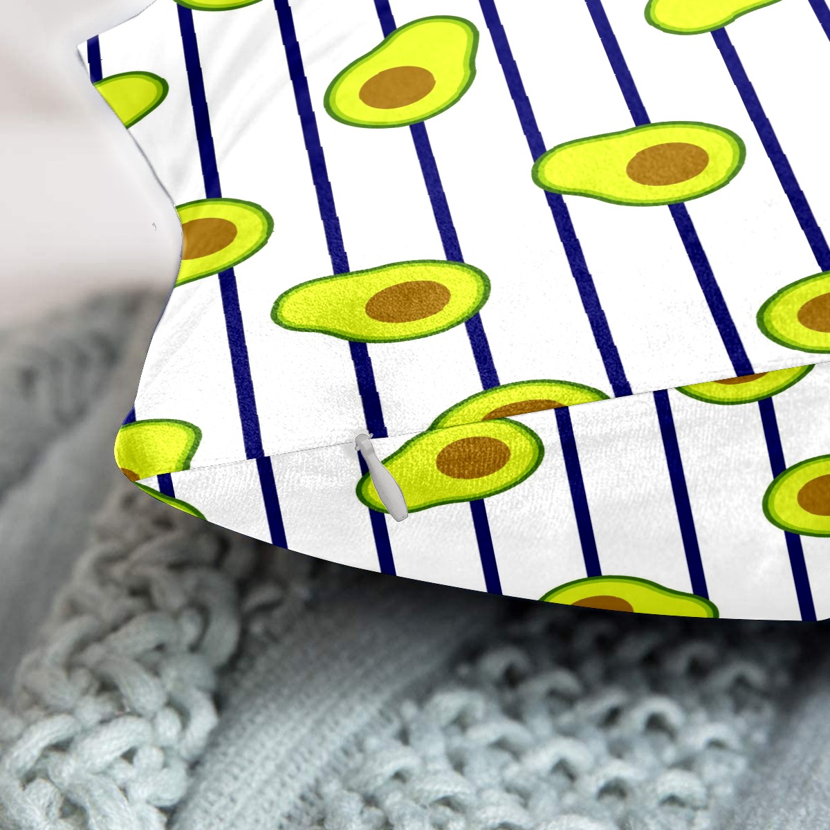 Cartoon Avocado And Stripes Pillow Covers 16x16 Square Decorative Throw Pillow Cover Case Soft Velvet Cushion Cover for Couch Sofa Bed Living Room Car Home Decoration Set of 2