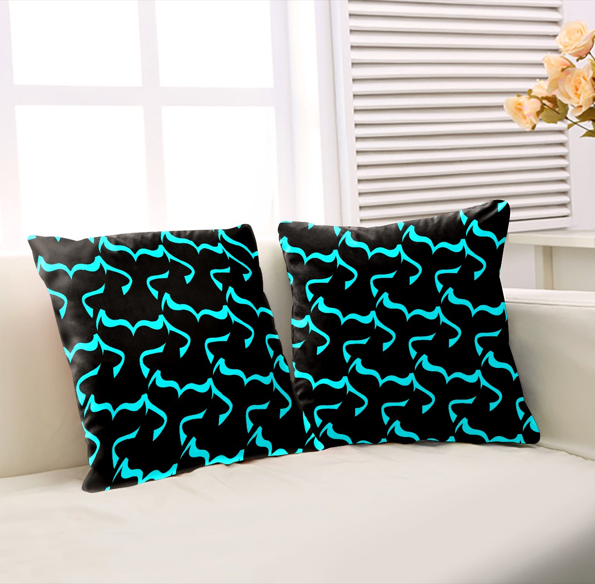 Killer Whale Orca Blue Line Pillow Covers 16x16 Square Decorative Throw Pillow Cover Case Soft Velvet Cushion Cover for Couch Sofa Bed Living Room Car Home Decoration Set of 2