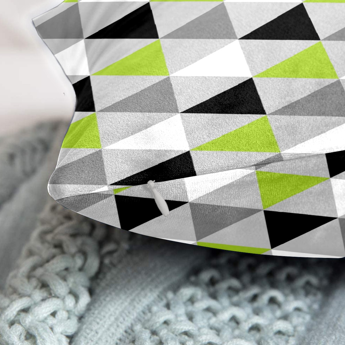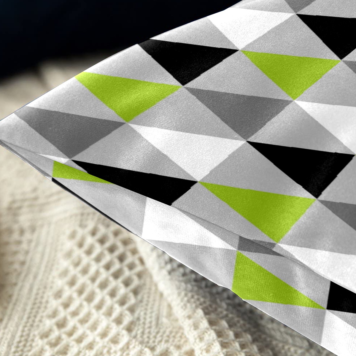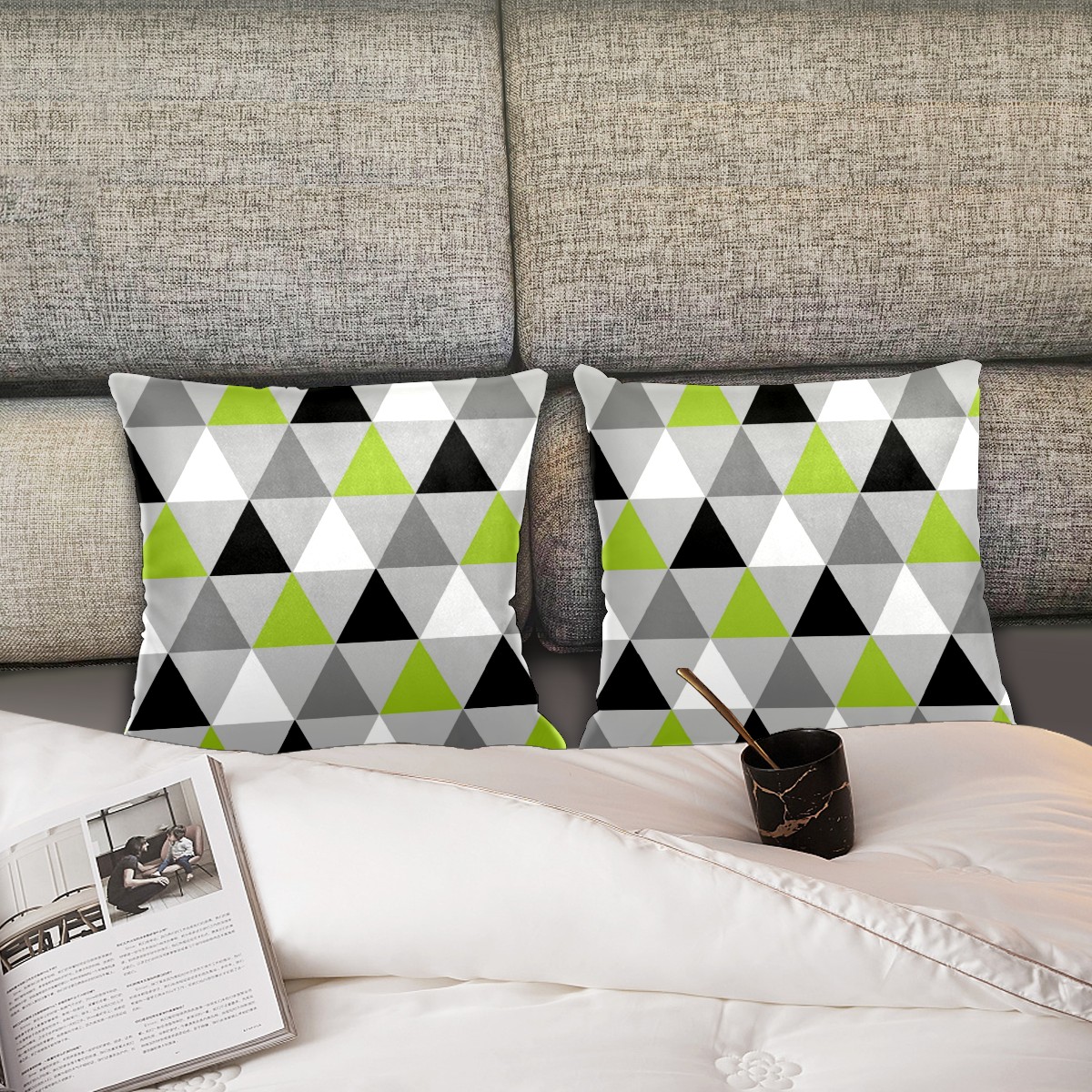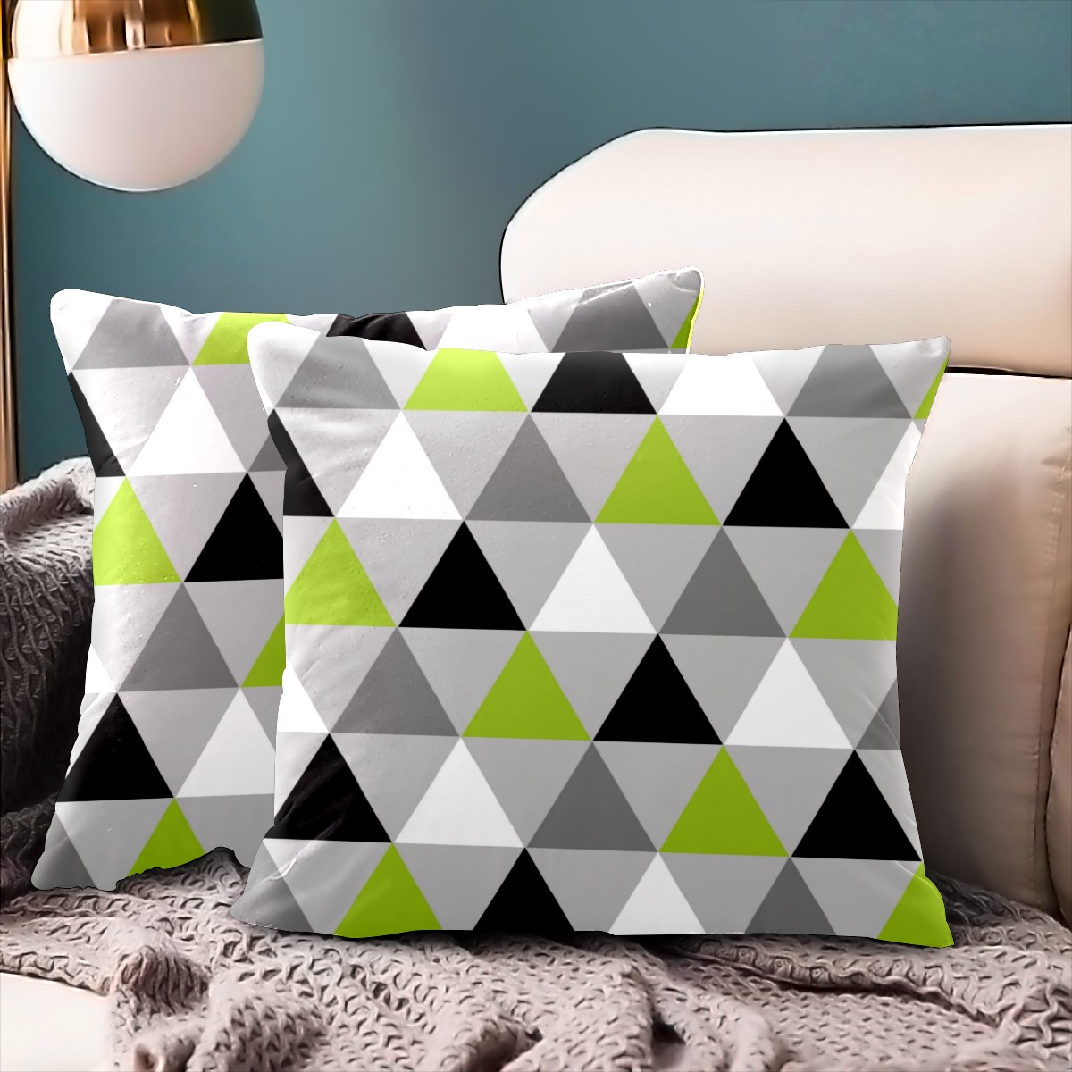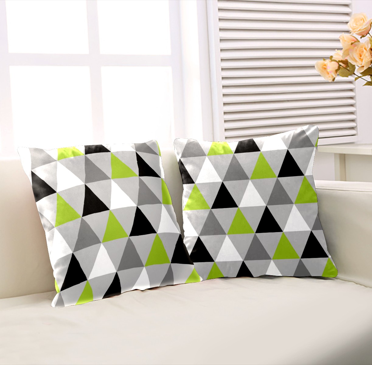 Lime Green Black White Triangles Pillow Covers 16x16 Square Decorative Throw Pillow Cover Case Soft Velvet Cushion Cover for Couch Sofa Bed Living Room Car Home Decoration Set of 2