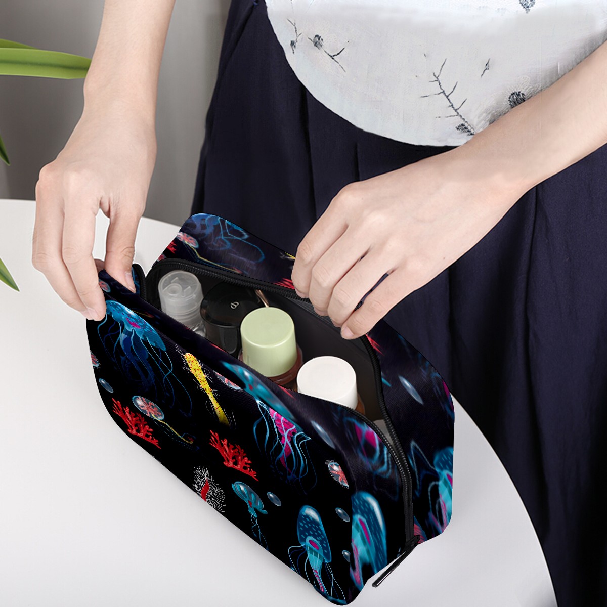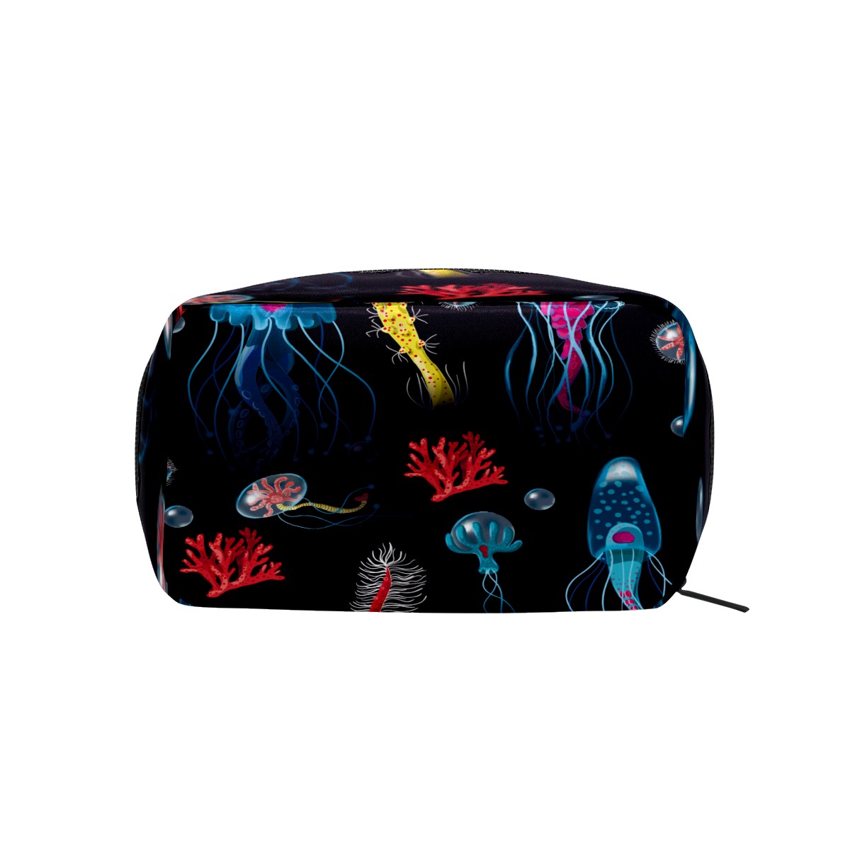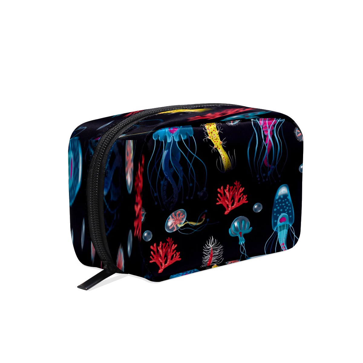 Cosmetic Bag for Women Girls Trave Makeup Bag Toiletry Case Pouch Accessories Organizer Colorful Jellyfish Seaweed Pattern