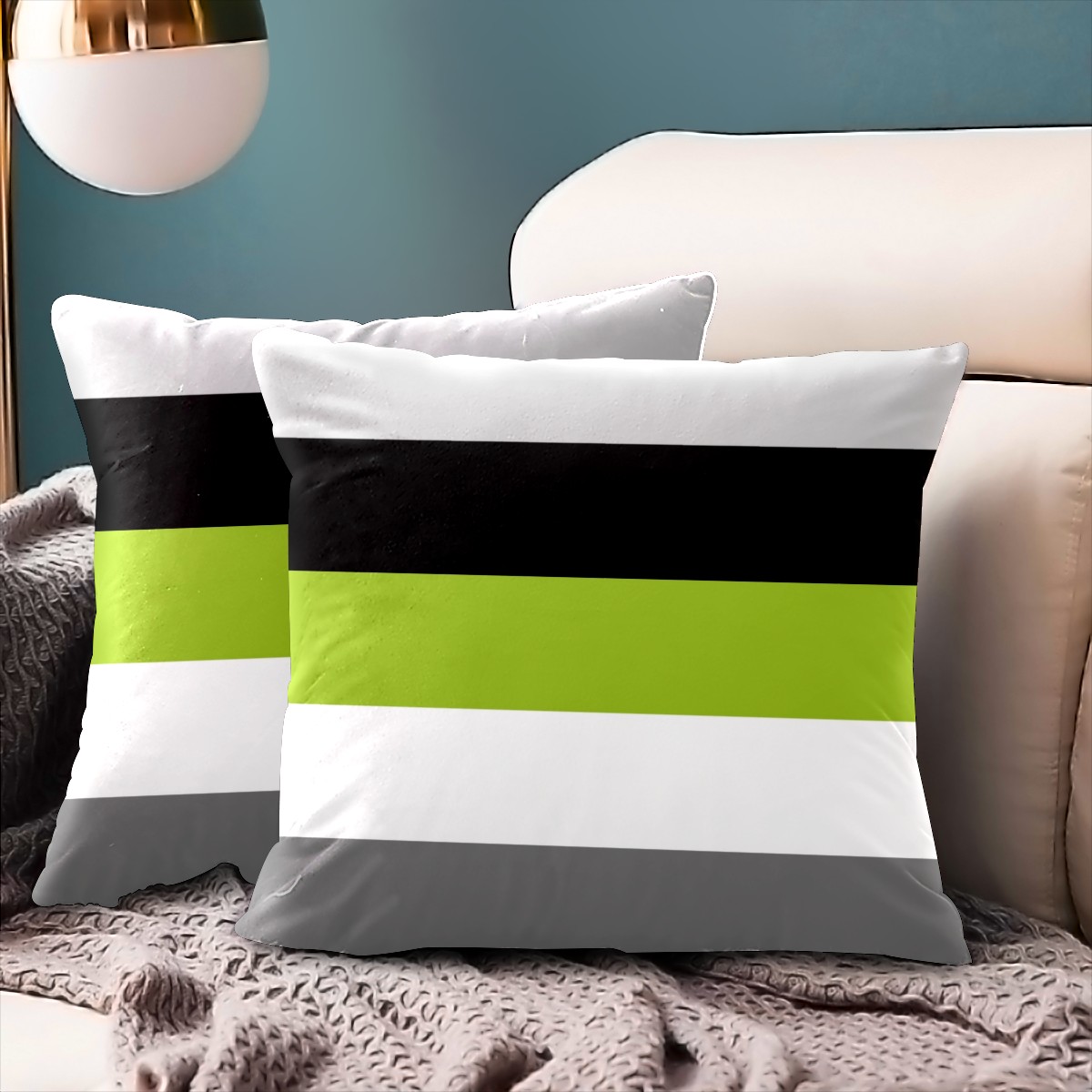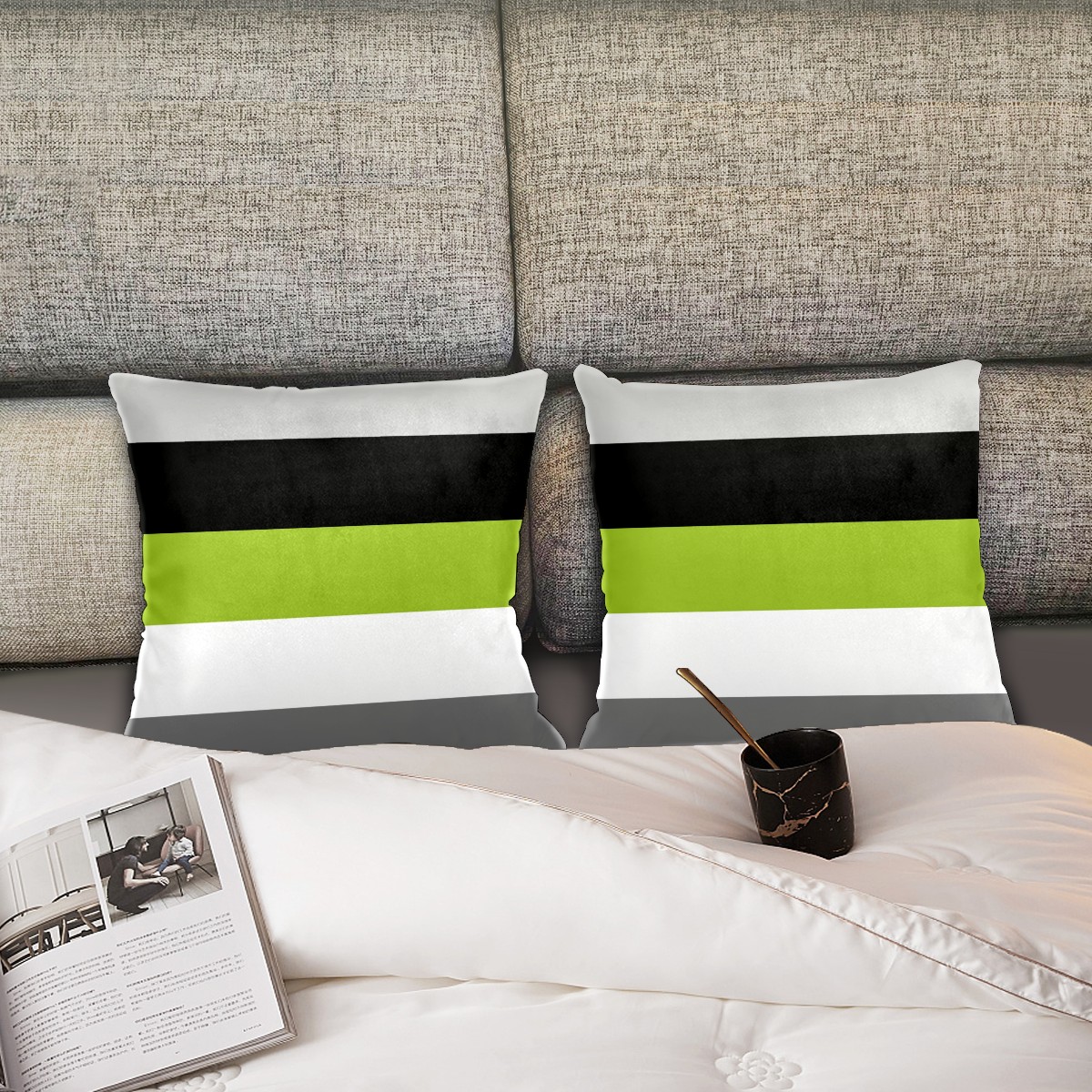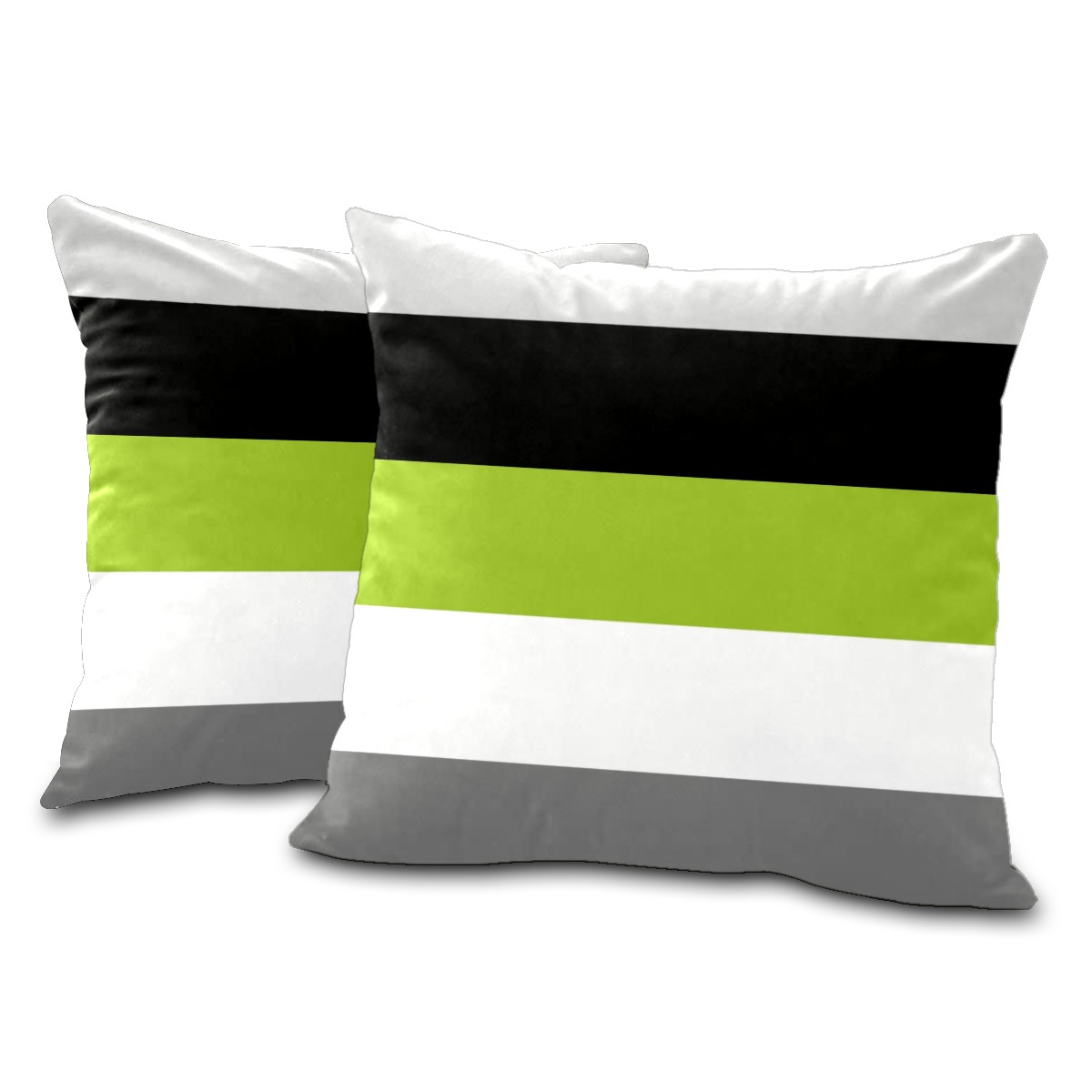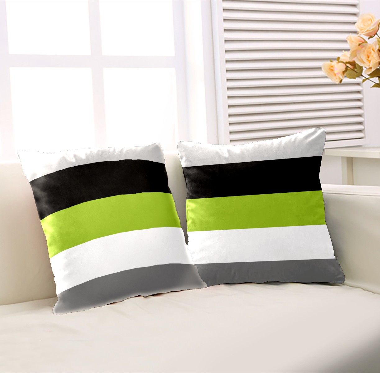 Lime Green Gray Black White Stripes Pillow Covers 16x16 Square Decorative Throw Pillow Cover Case Soft Velvet Cushion Cover for Couch Sofa Bed Living Room Car Home Decoration Set of 2