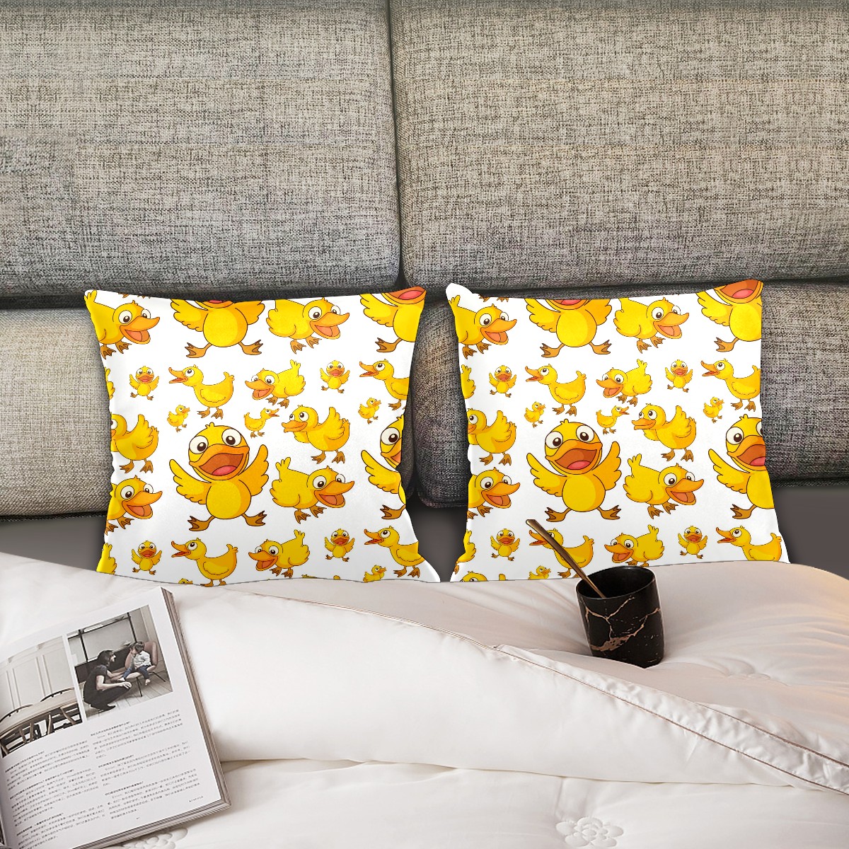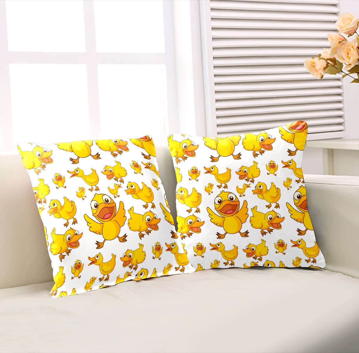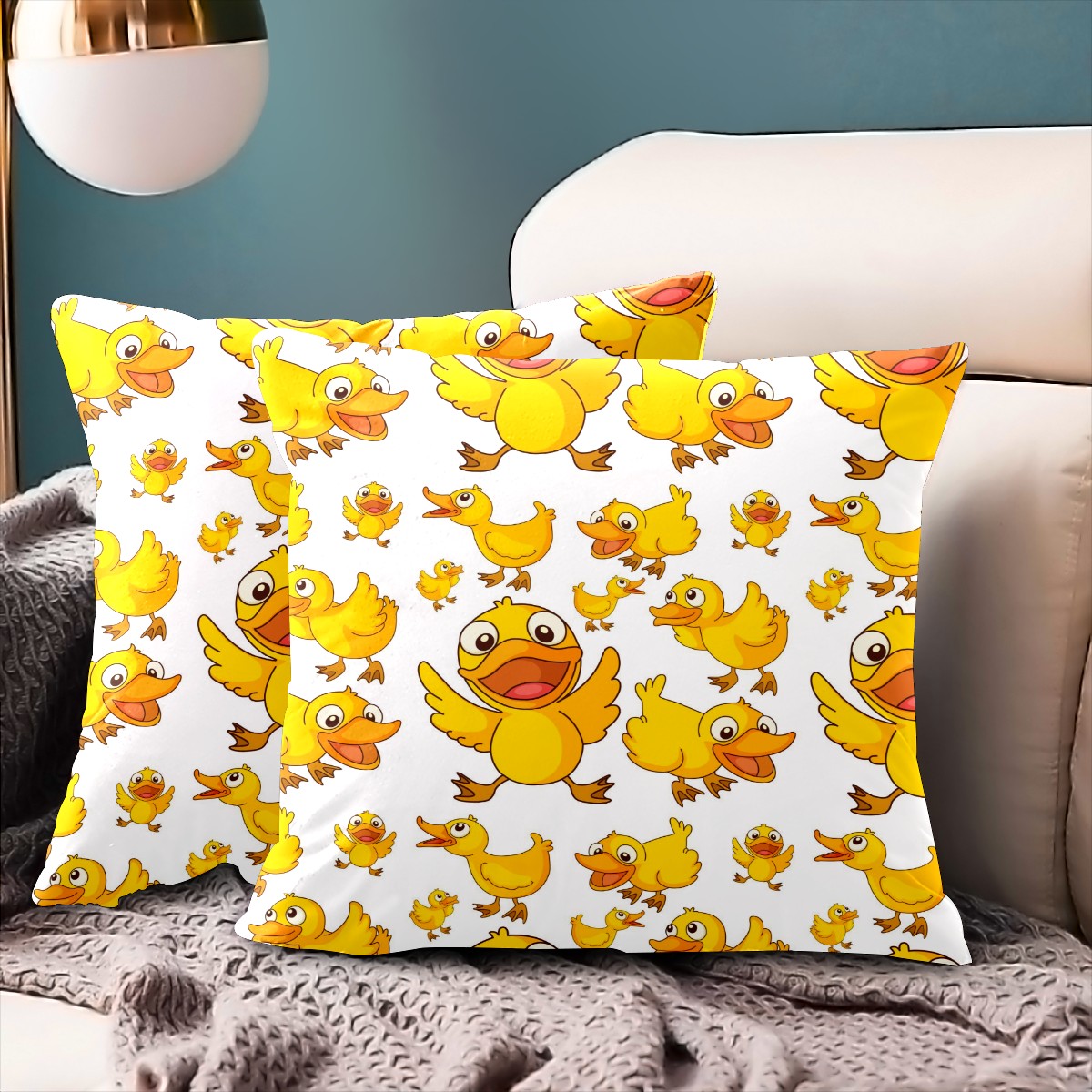 Cartoon Smiling Yellow Duck Pillow Covers 16x16 Square Decorative Throw Pillow Cover Case Soft Velvet Cushion Cover for Couch Sofa Bed Living Room Car Home Decoration Set of 2