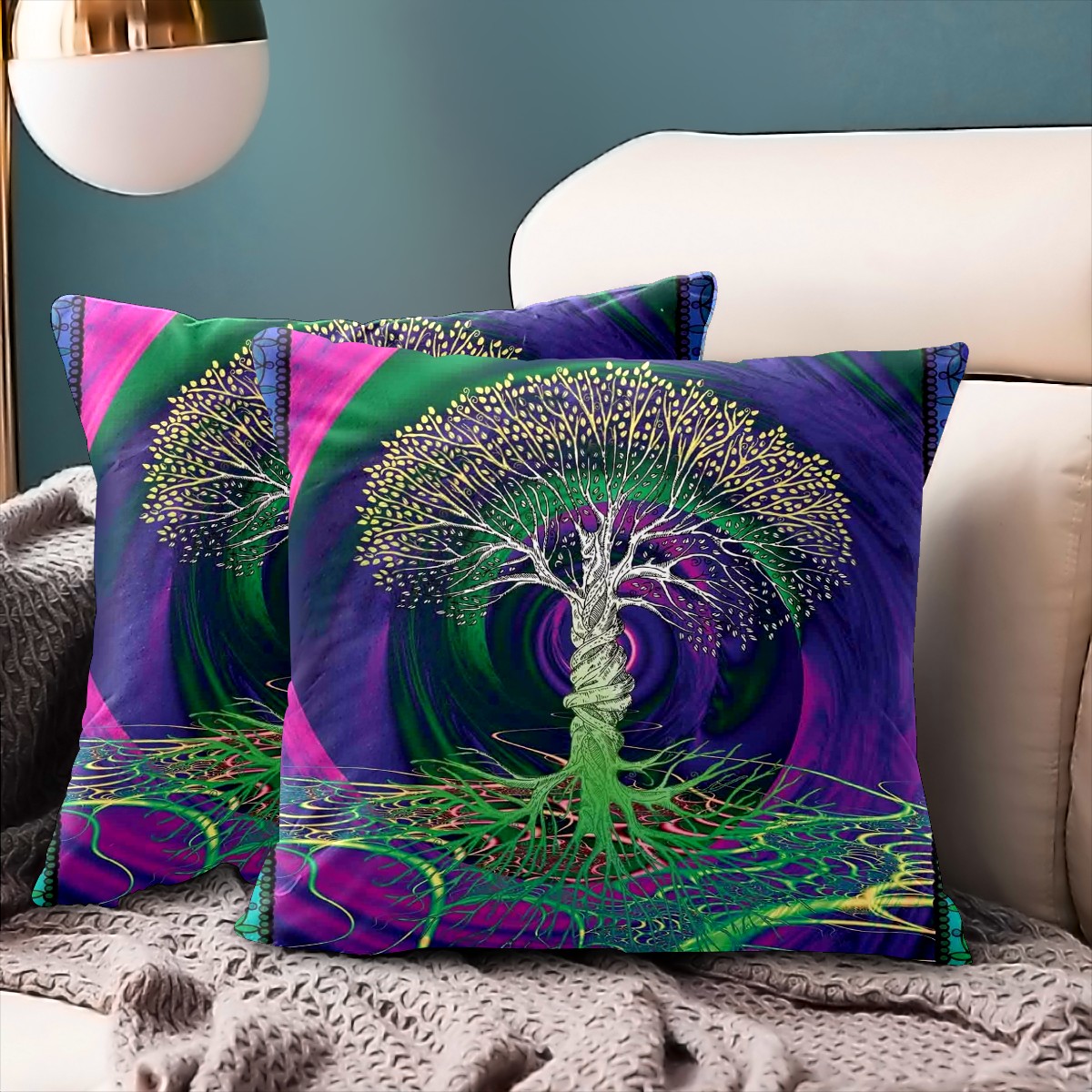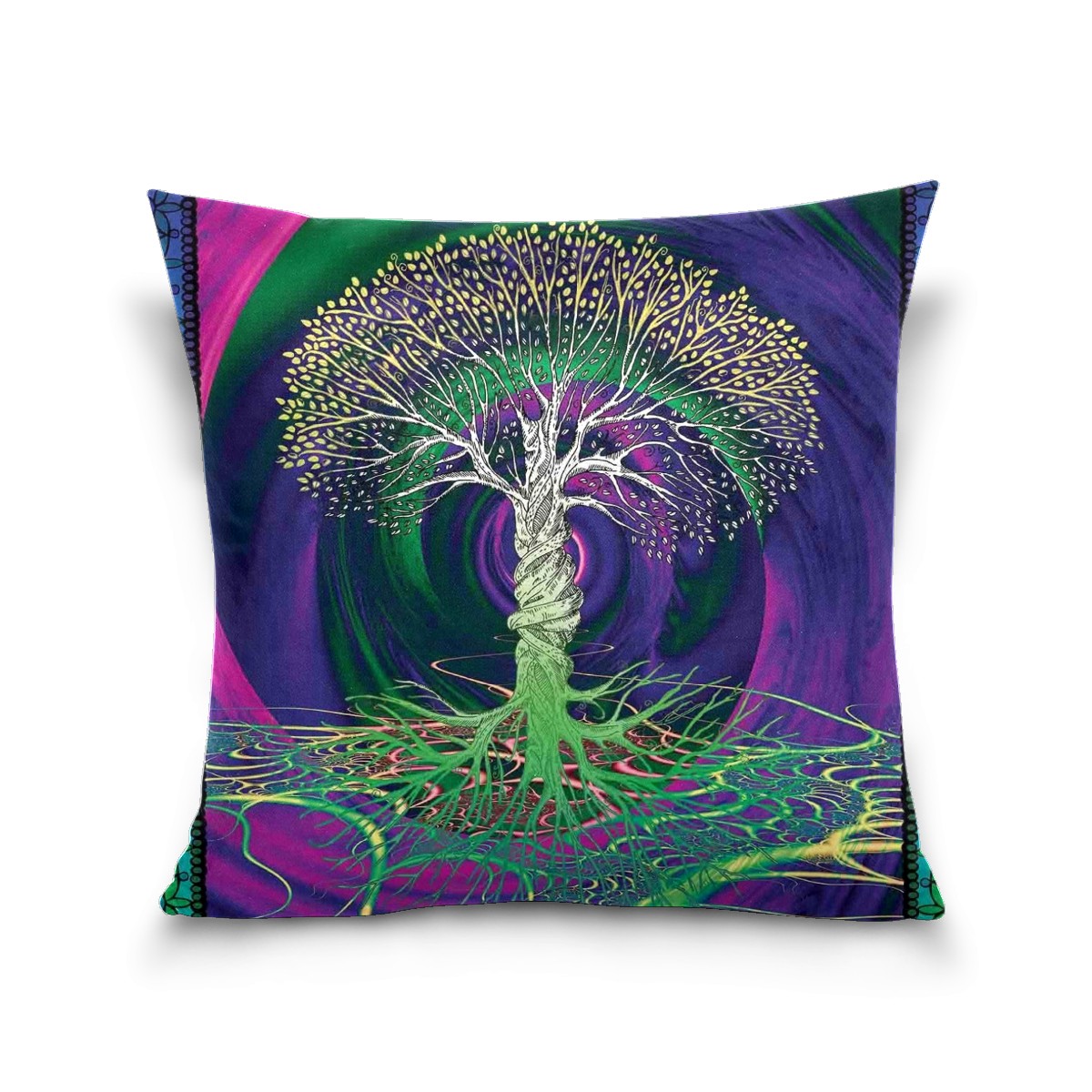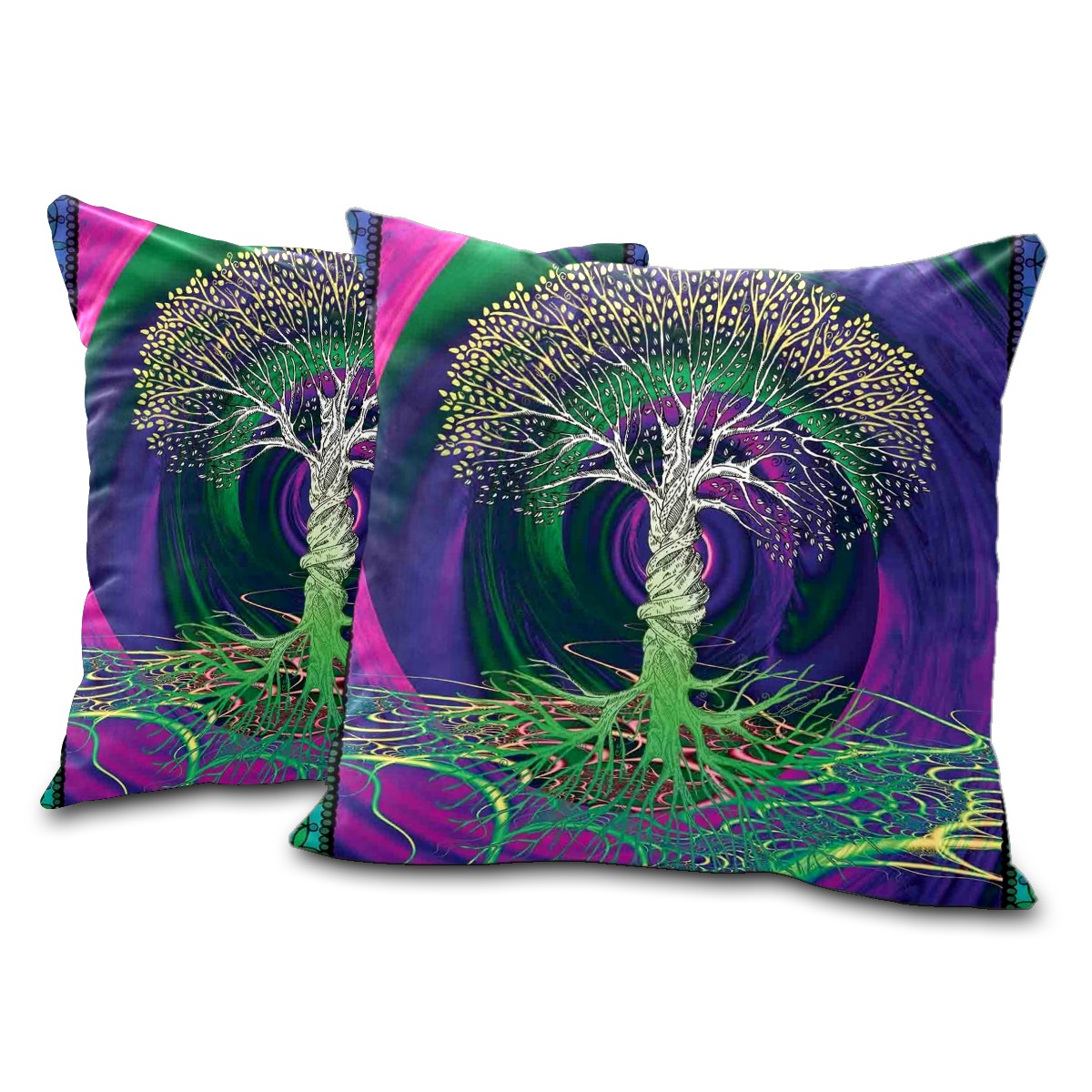 Digital Psychedelic Tree Of Life With Turning Gothic Pillow Covers 16x16 Square Decorative Throw Pillow Cover Case Soft Velvet Cushion Cover for Couch Sofa Bed Living Room Car Home Decoration Set of 2