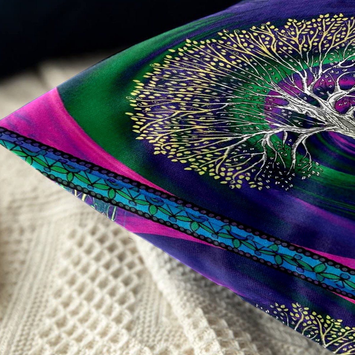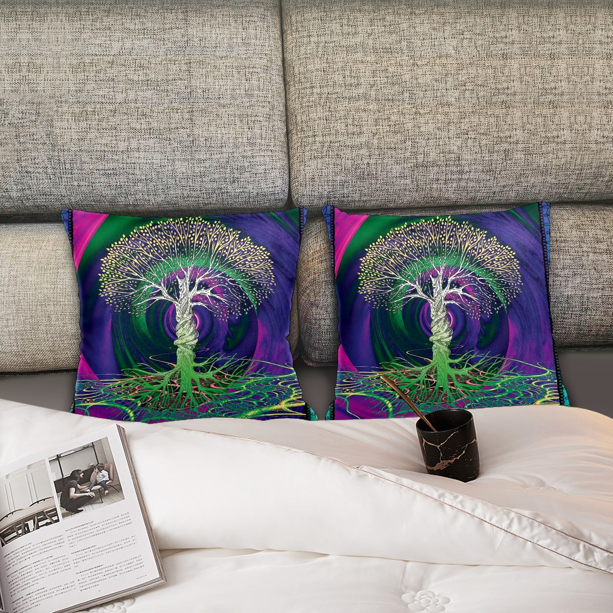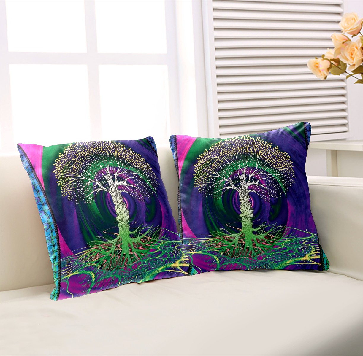 Digital Psychedelic Tree Of Life With Turning Gothic Pillow Covers 16x16 Square Decorative Throw Pillow Cover Case Soft Velvet Cushion Cover for Couch Sofa Bed Living Room Car Home Decoration Set of 2
