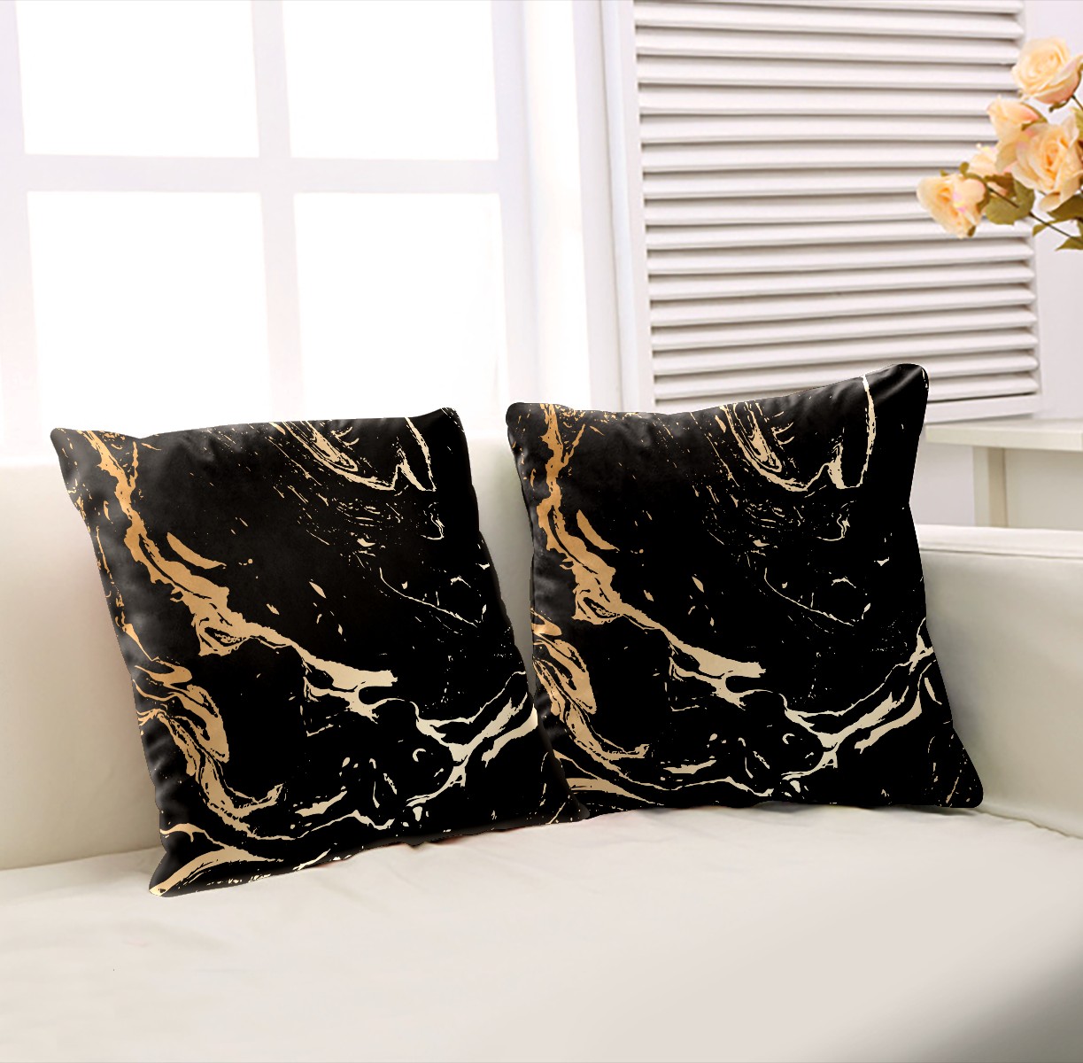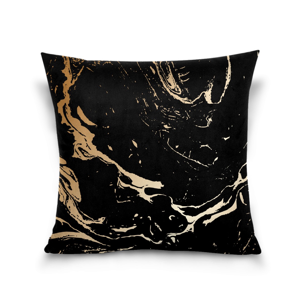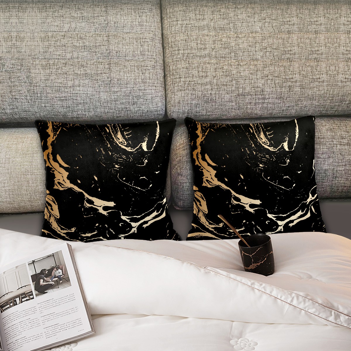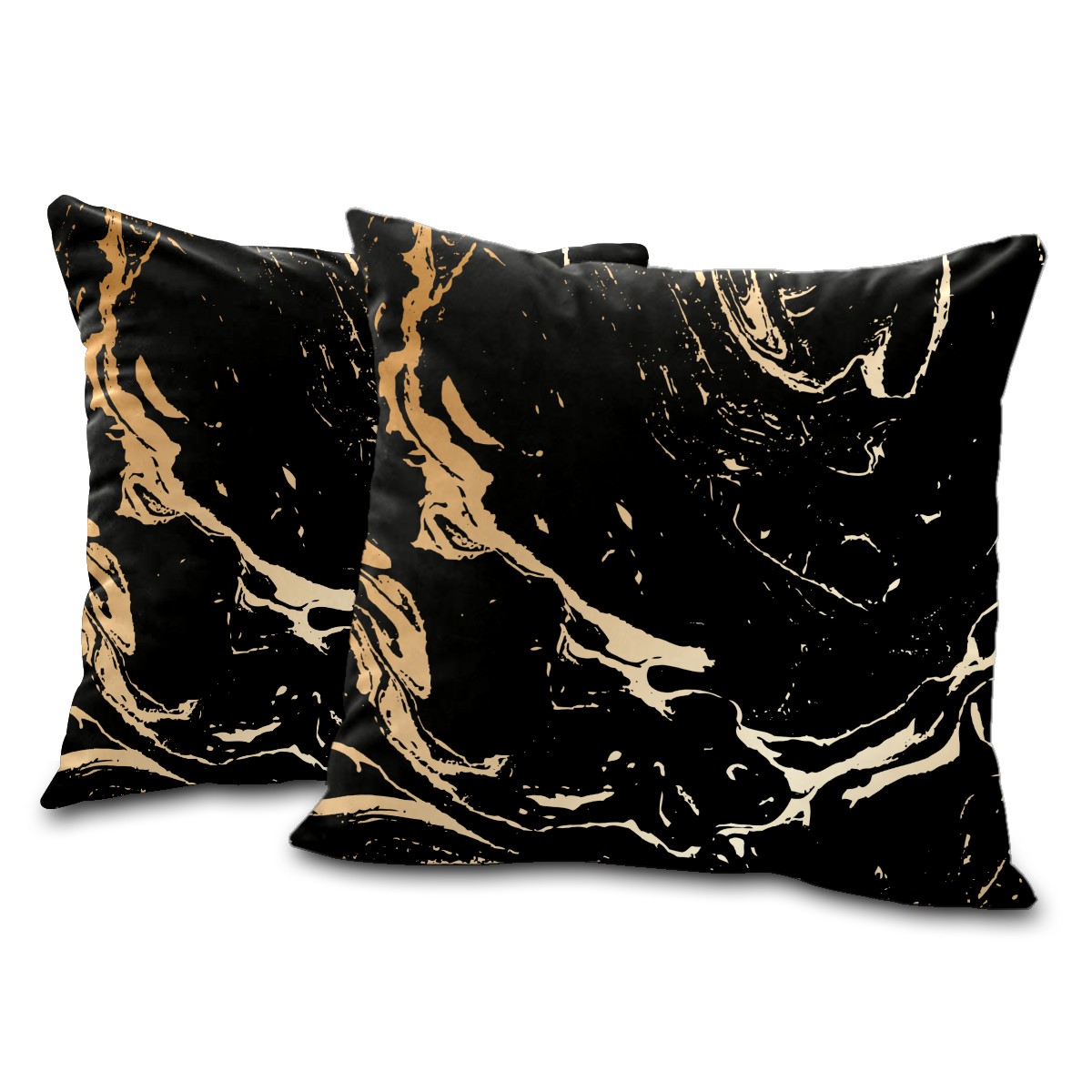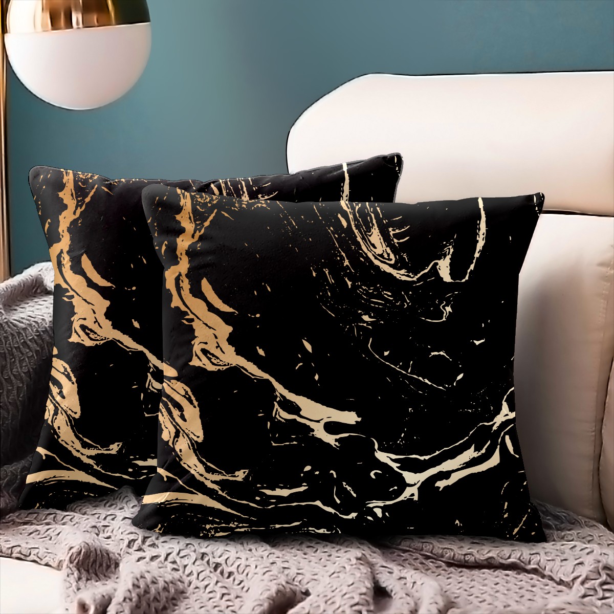 Abstract Black And Gold Marble Texture Pillow Covers 16x16 Square Decorative Throw Pillow Cover Case Soft Velvet Cushion Cover for Couch Sofa Bed Living Room Car Home Decoration Set of 2