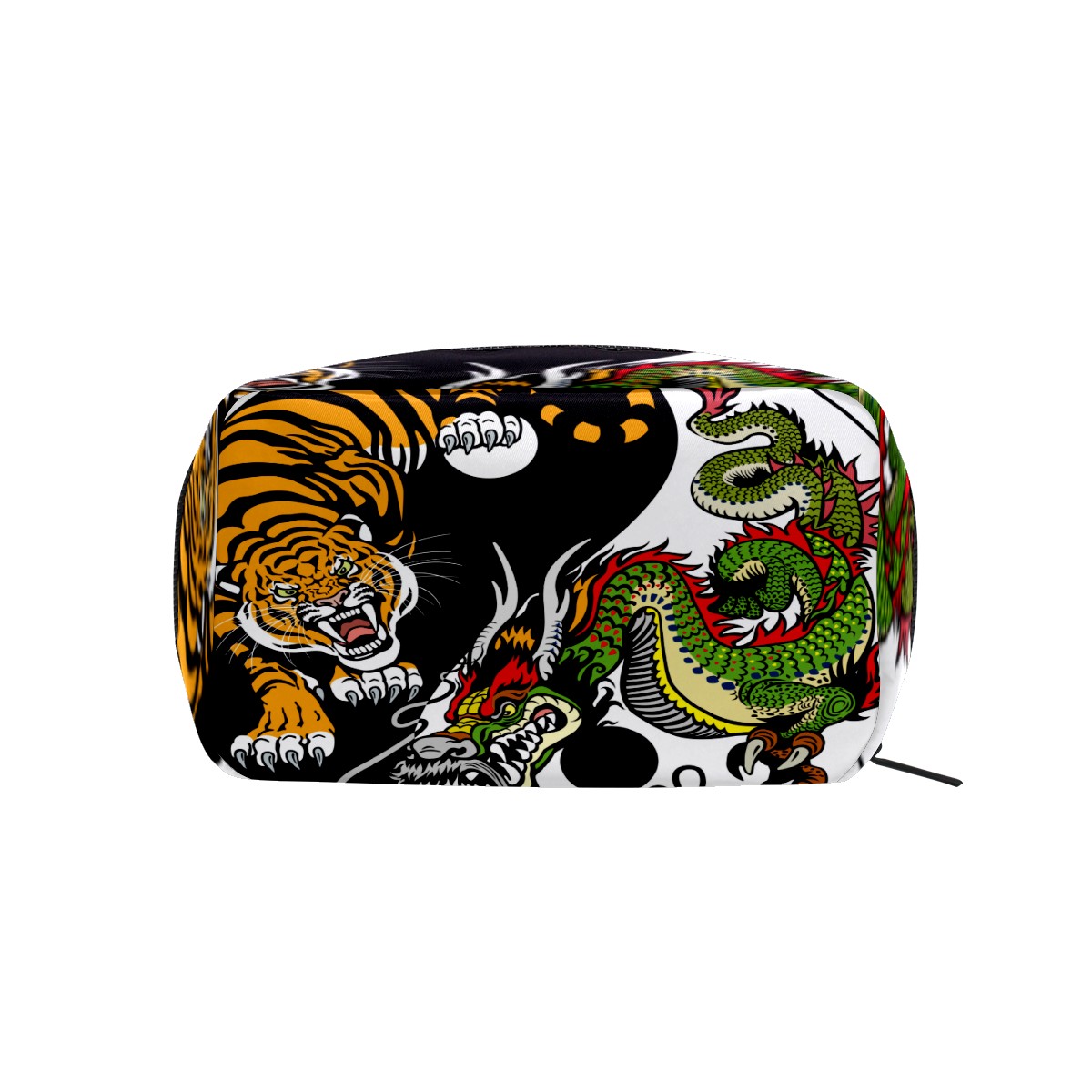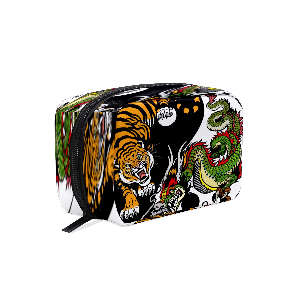 Cosmetic Bag for Women Girls Trave Makeup Bag Toiletry Case Pouch Accessories Organizer Chinease Animal Lion With Dragon
