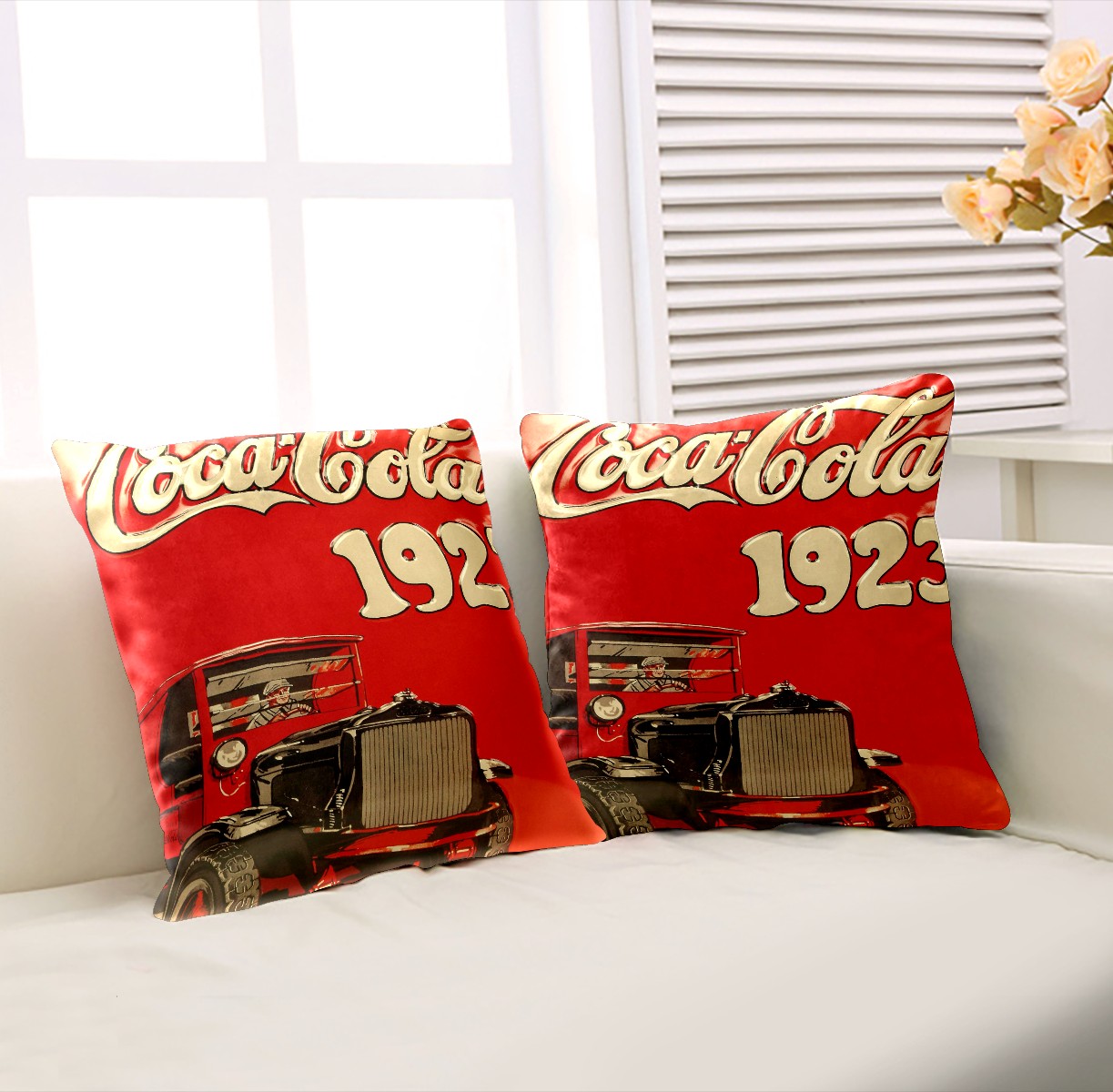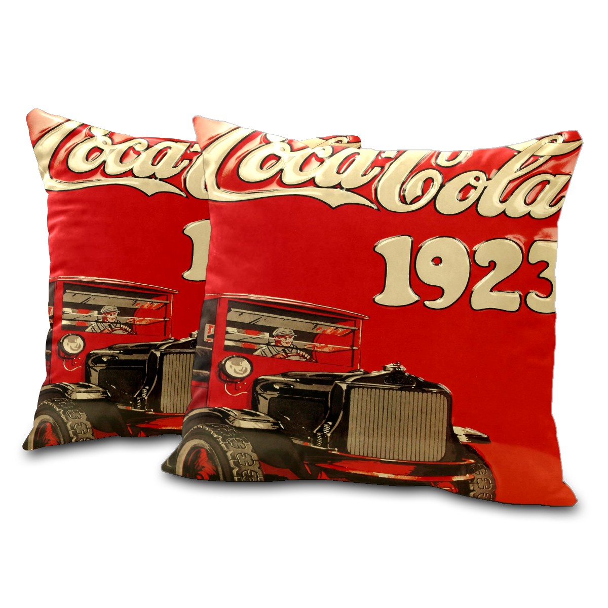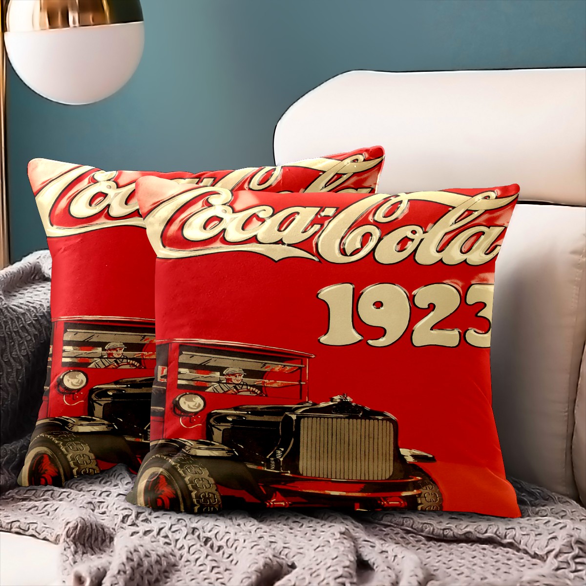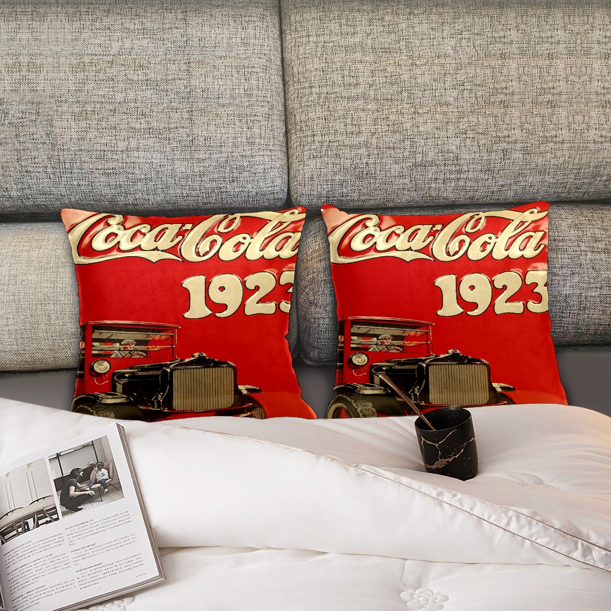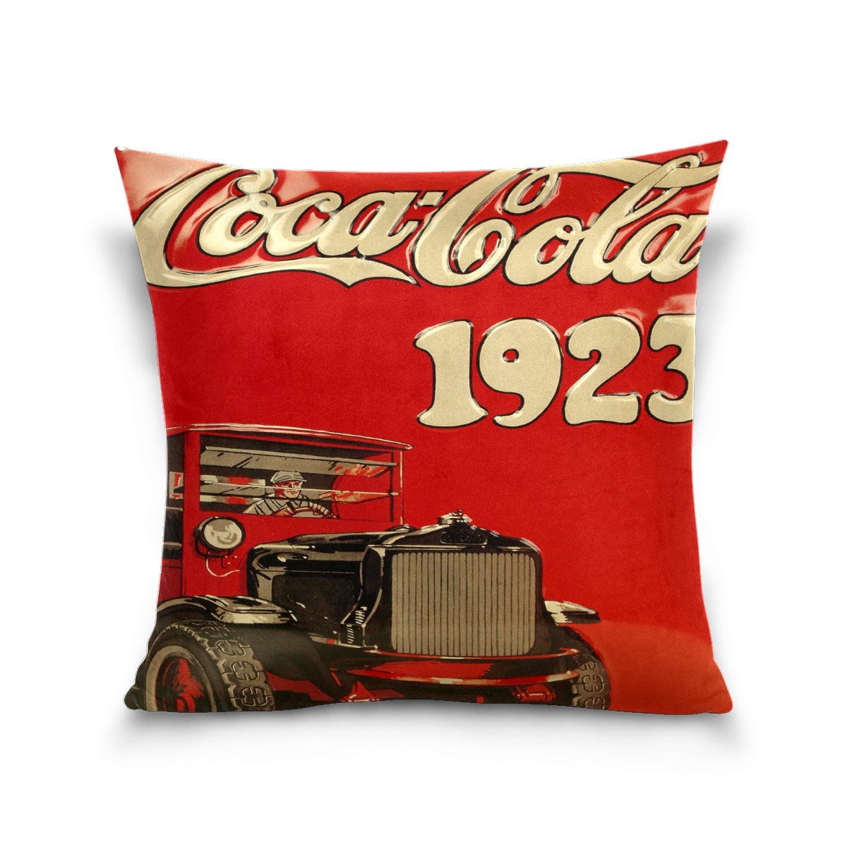Coca Cola Retro Car Pillow Covers 16x16 Square Decorative Throw Pillow Cover Case Soft Velvet Cushion Cover for Couch Sofa Bed Living Room Car Home Decoration Set of 2
