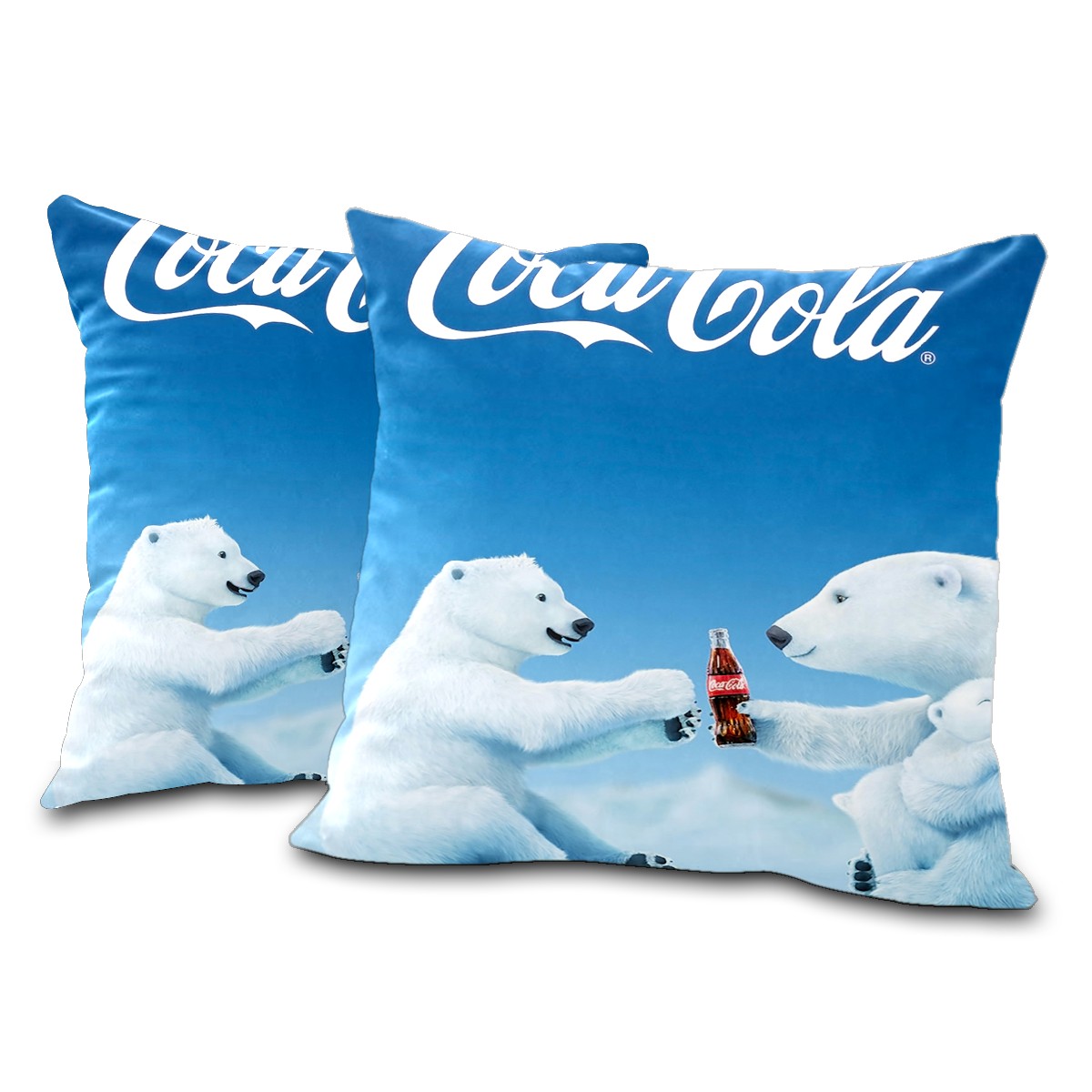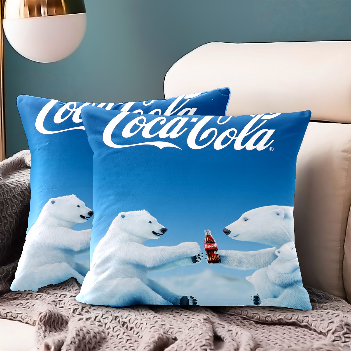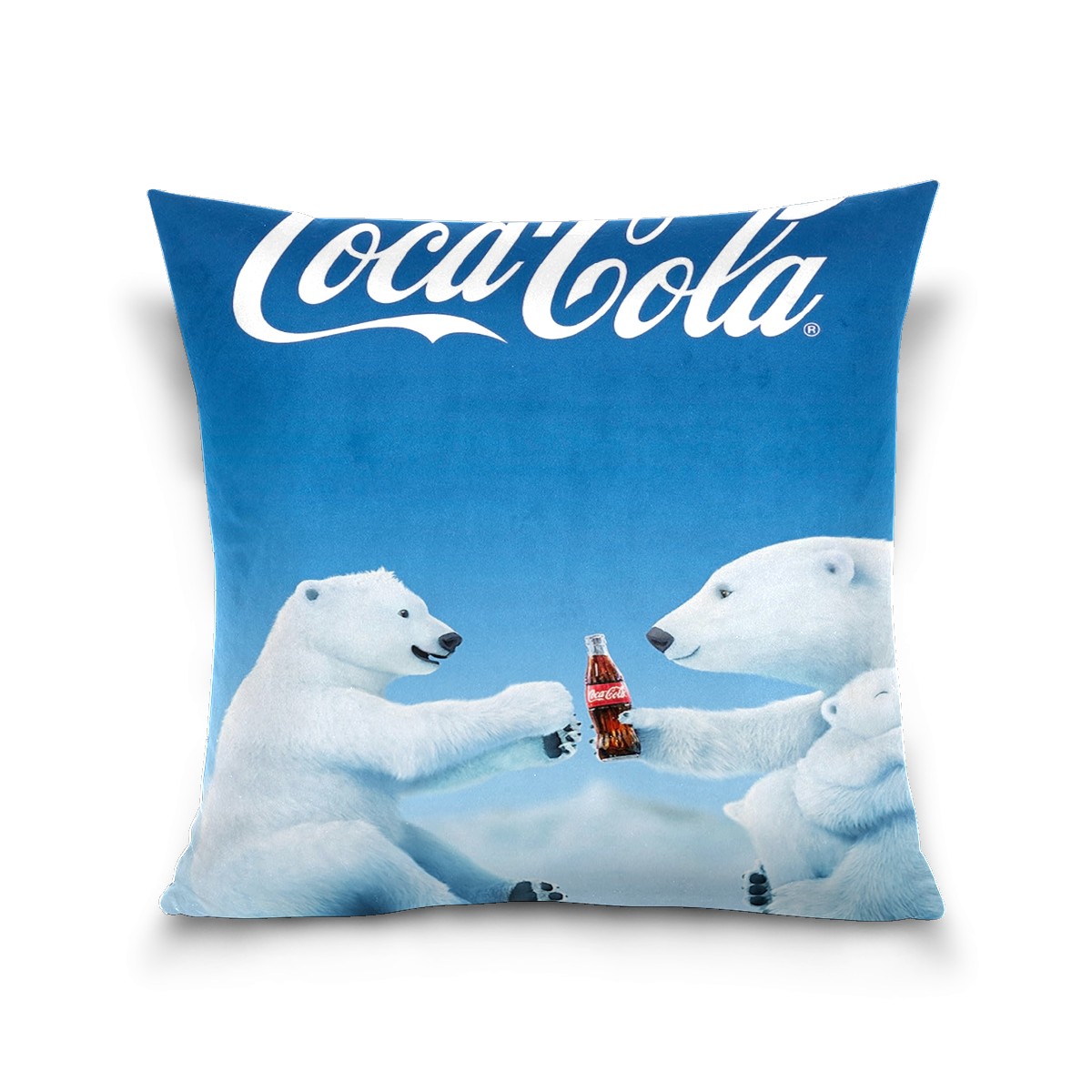 Blue Coca Cola Polar Bear Pillow Covers 16x16 Square Decorative Throw Pillow Cover Case Soft Velvet Cushion Cover for Couch Sofa Bed Living Room Car Home Decoration Set of 2