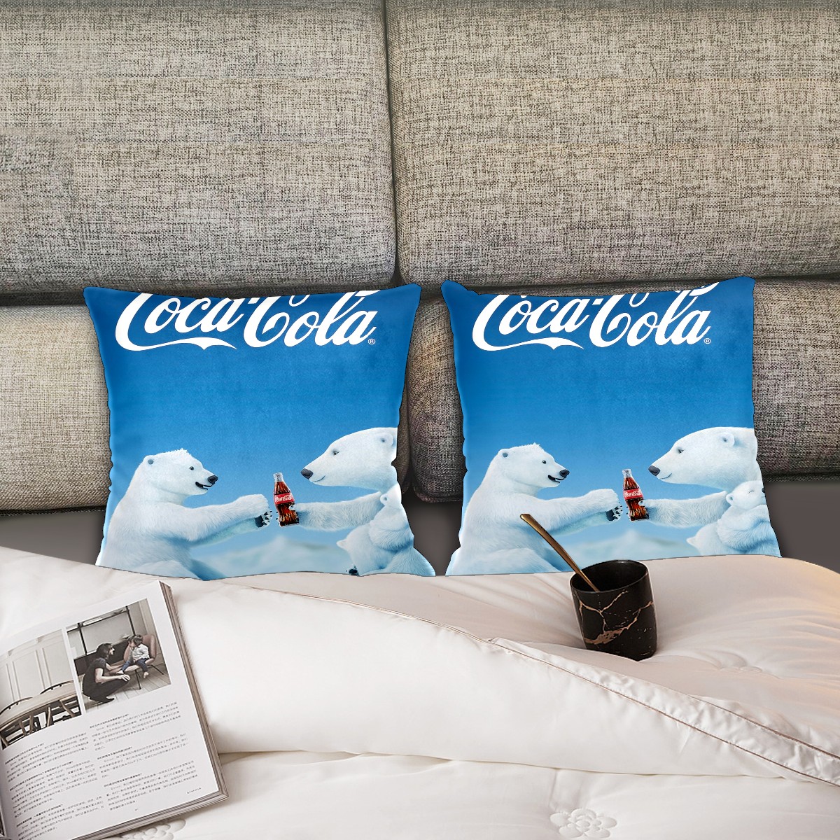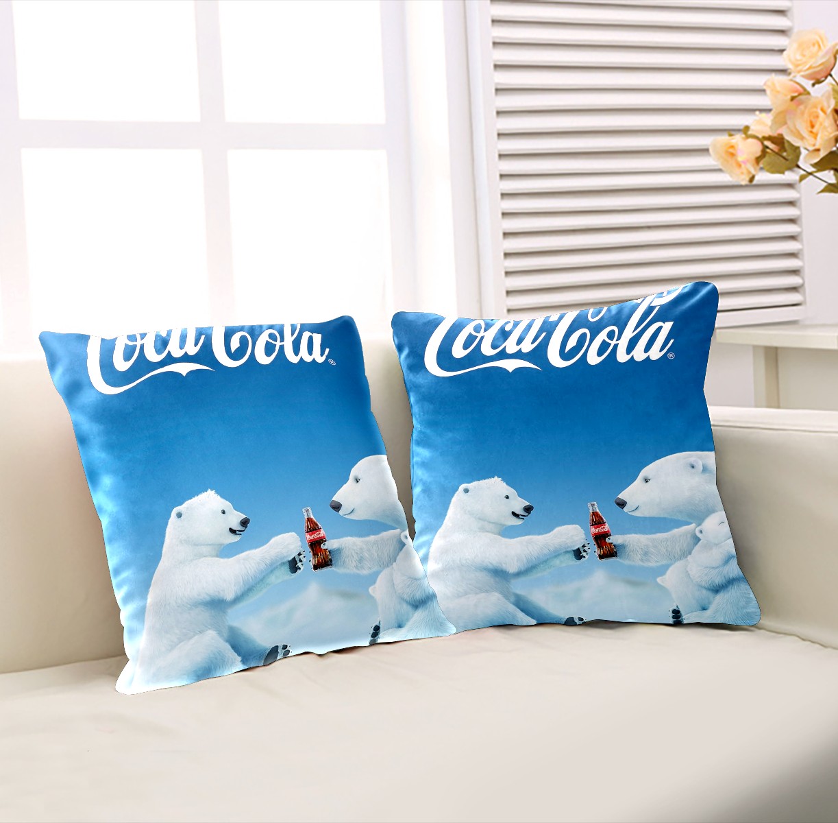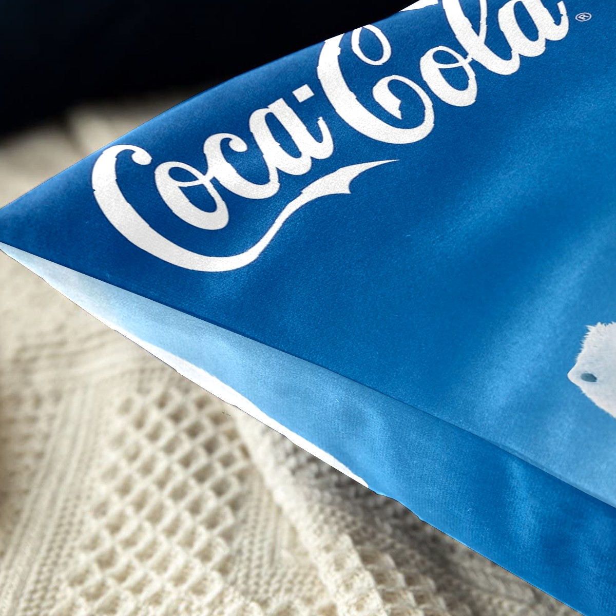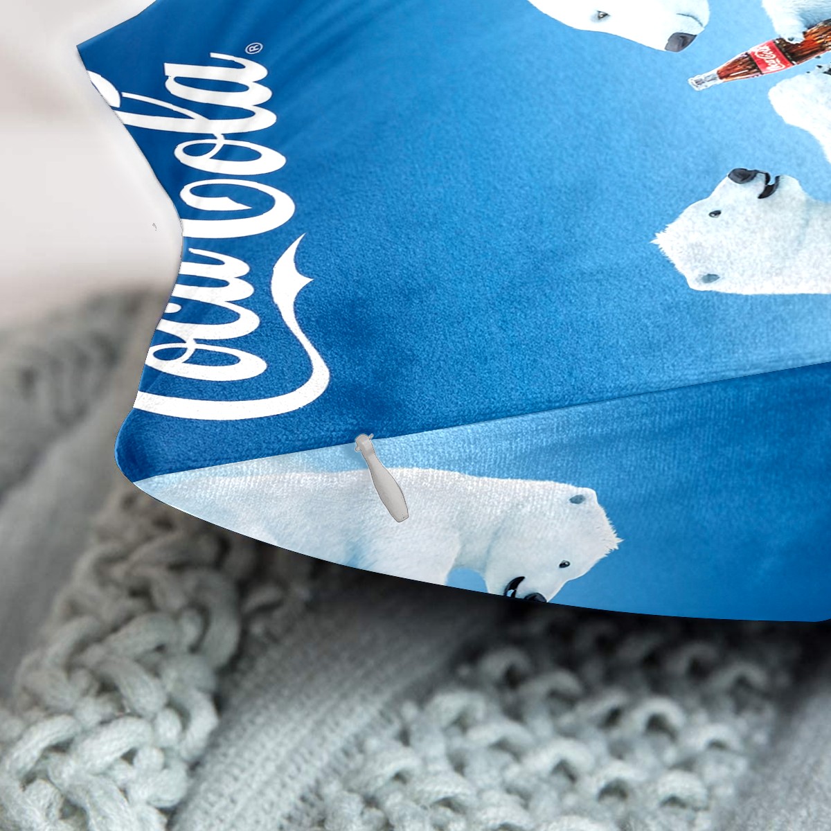 Blue Coca Cola Polar Bear Pillow Covers 16x16 Square Decorative Throw Pillow Cover Case Soft Velvet Cushion Cover for Couch Sofa Bed Living Room Car Home Decoration Set of 2