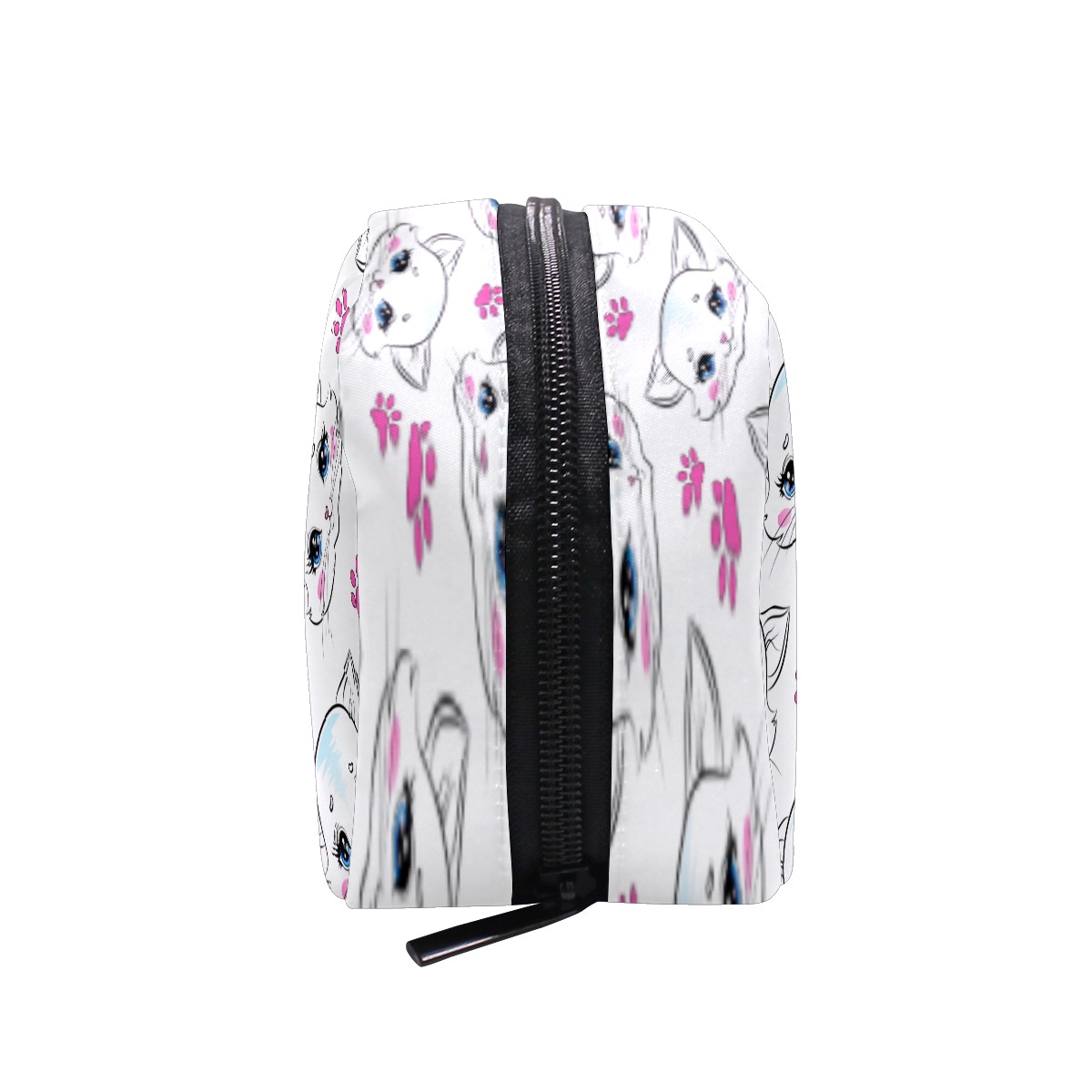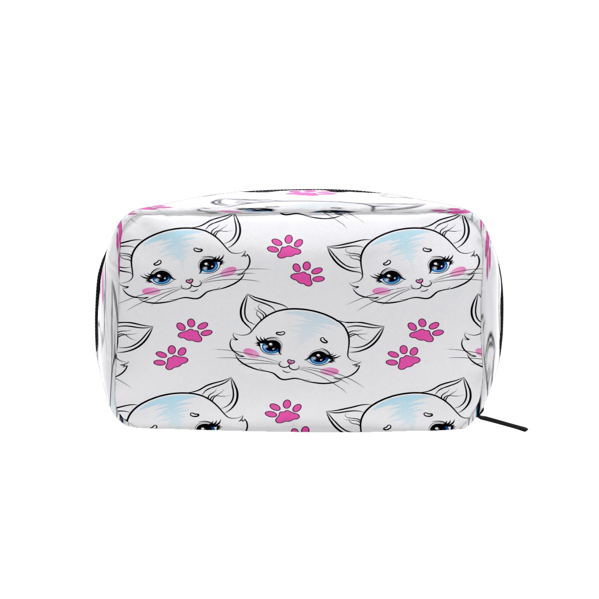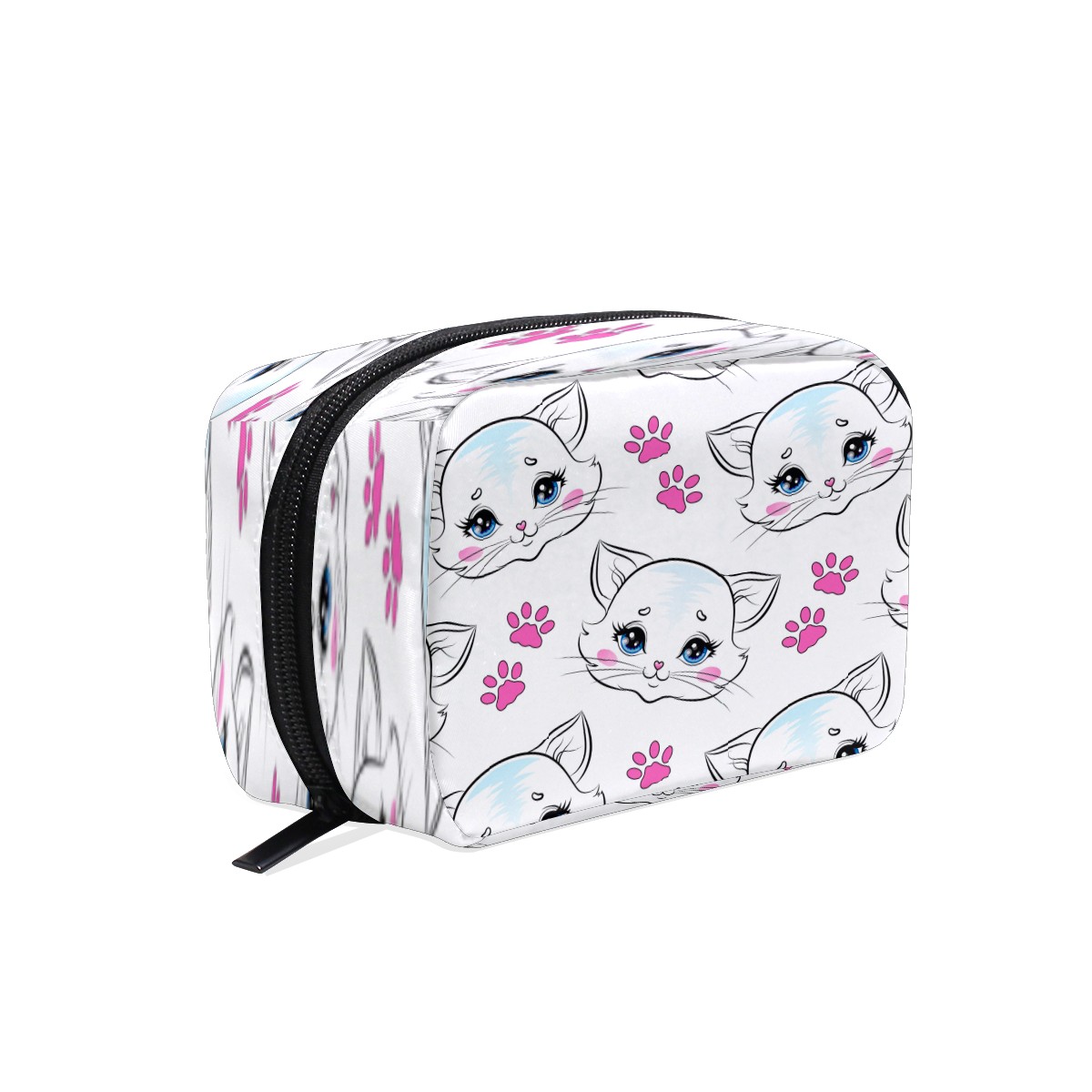 Cosmetic Bag for Women Girls Trave Makeup Bag Toiletry Case Pouch Accessories Organizer Cat Face Pink Paw Pattern
