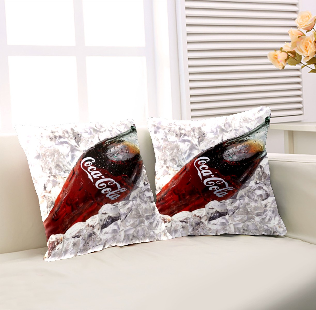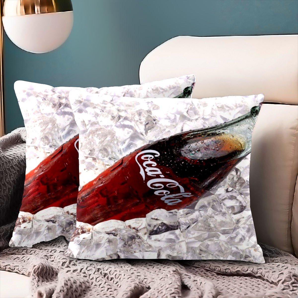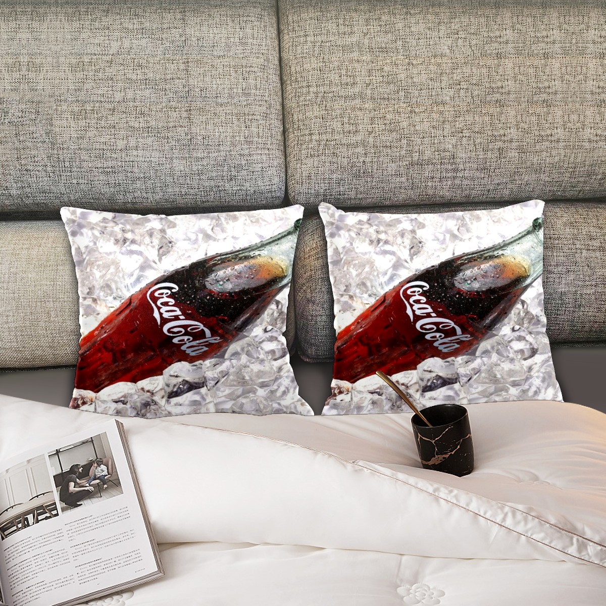 Abstract Coca Cola On Ice Pillow Covers 16x16 Square Decorative Throw Pillow Cover Case Soft Velvet Cushion Cover for Couch Sofa Bed Living Room Car Home Decoration Set of 2