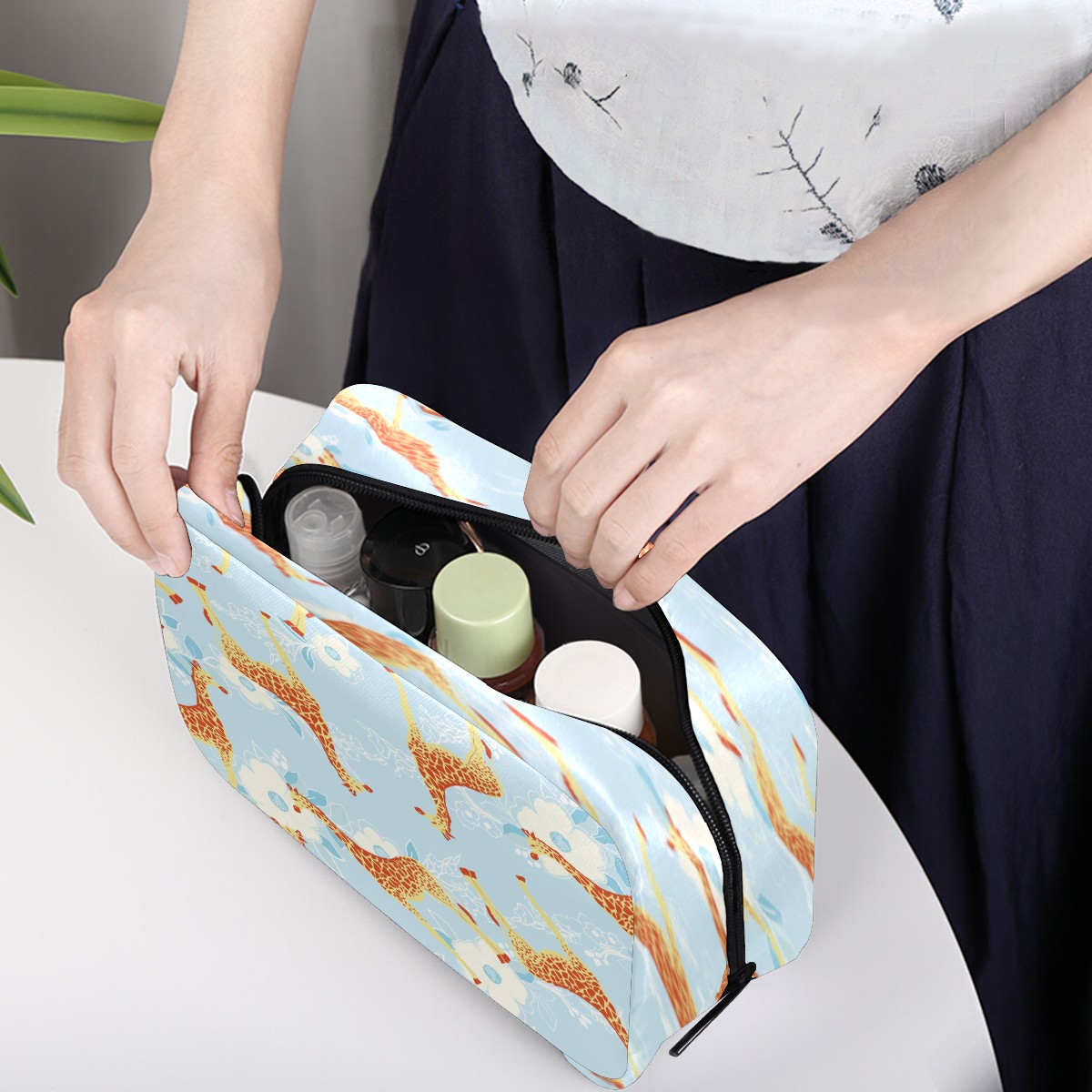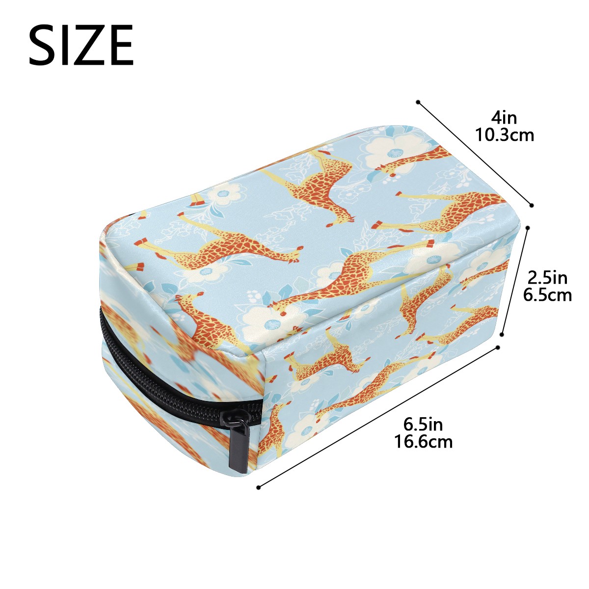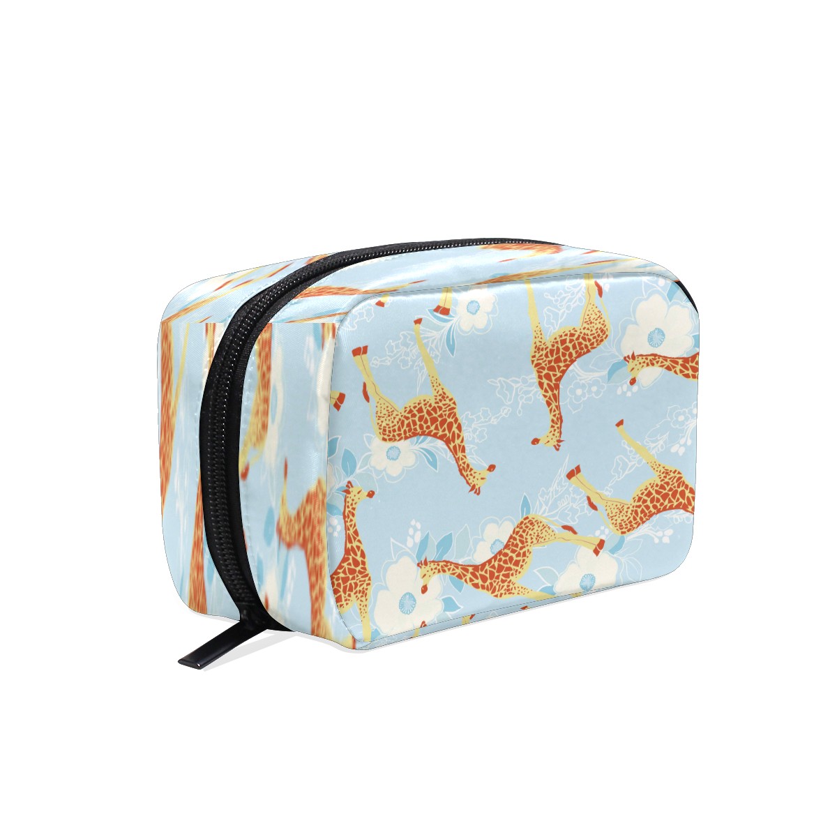 Cosmetic Bag for Women Girls Trave Makeup Bag Toiletry Case Pouch Accessories Organizer Cartoon Giraffe With Floral Pattern