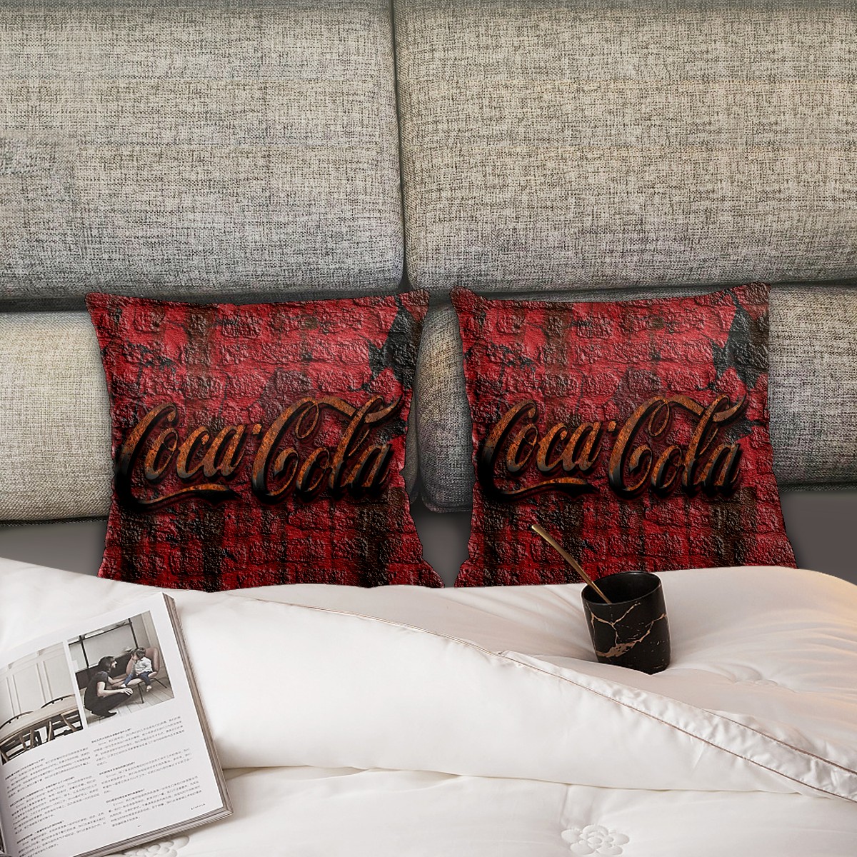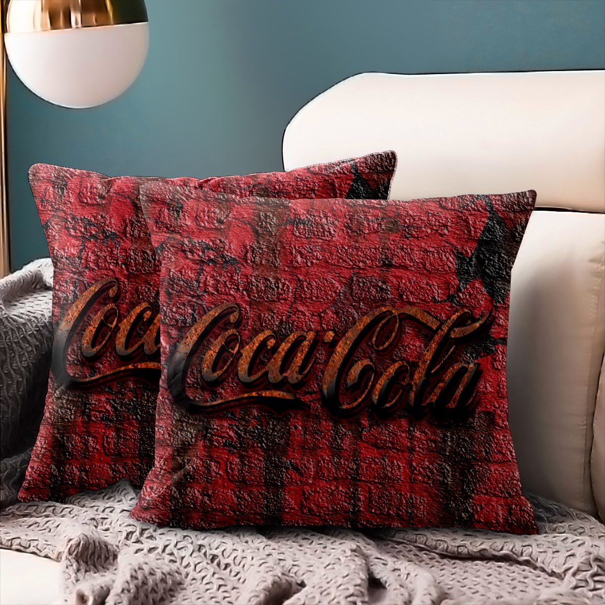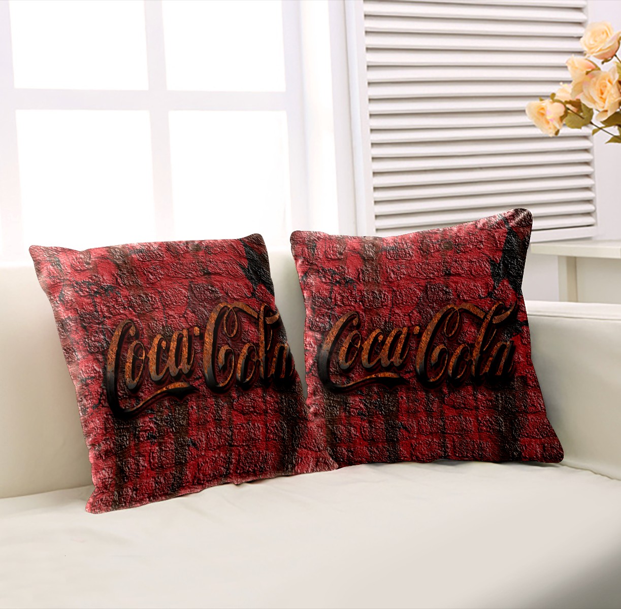 Rustic Coca Cola Retro Pillow Covers 16x16 Square Decorative Throw Pillow Cover Case Soft Velvet Cushion Cover for Couch Sofa Bed Living Room Car Home Decoration Set of 2