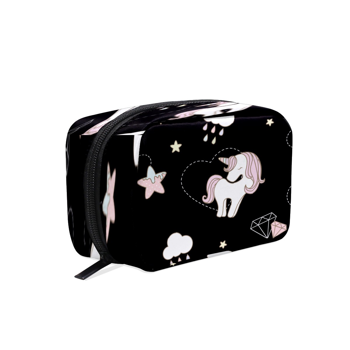 Cosmetic Bag for Women Girls Trave Makeup Bag Toiletry Case Pouch Accessories Organizer Cartoon Magical Unicorn Horse Diamond Star Rainy