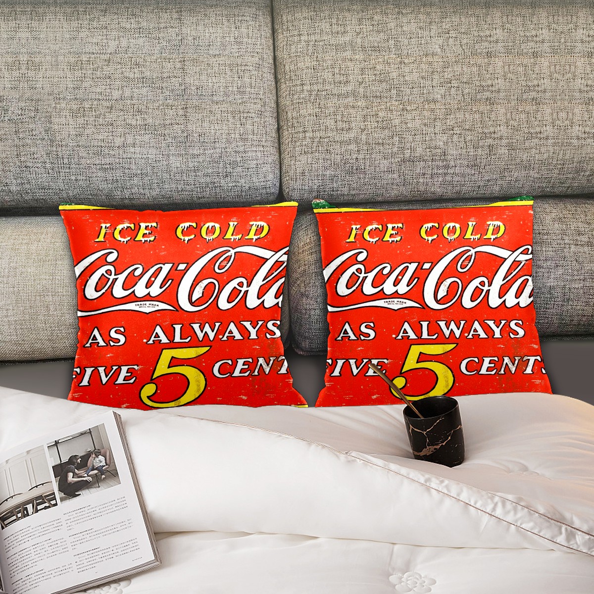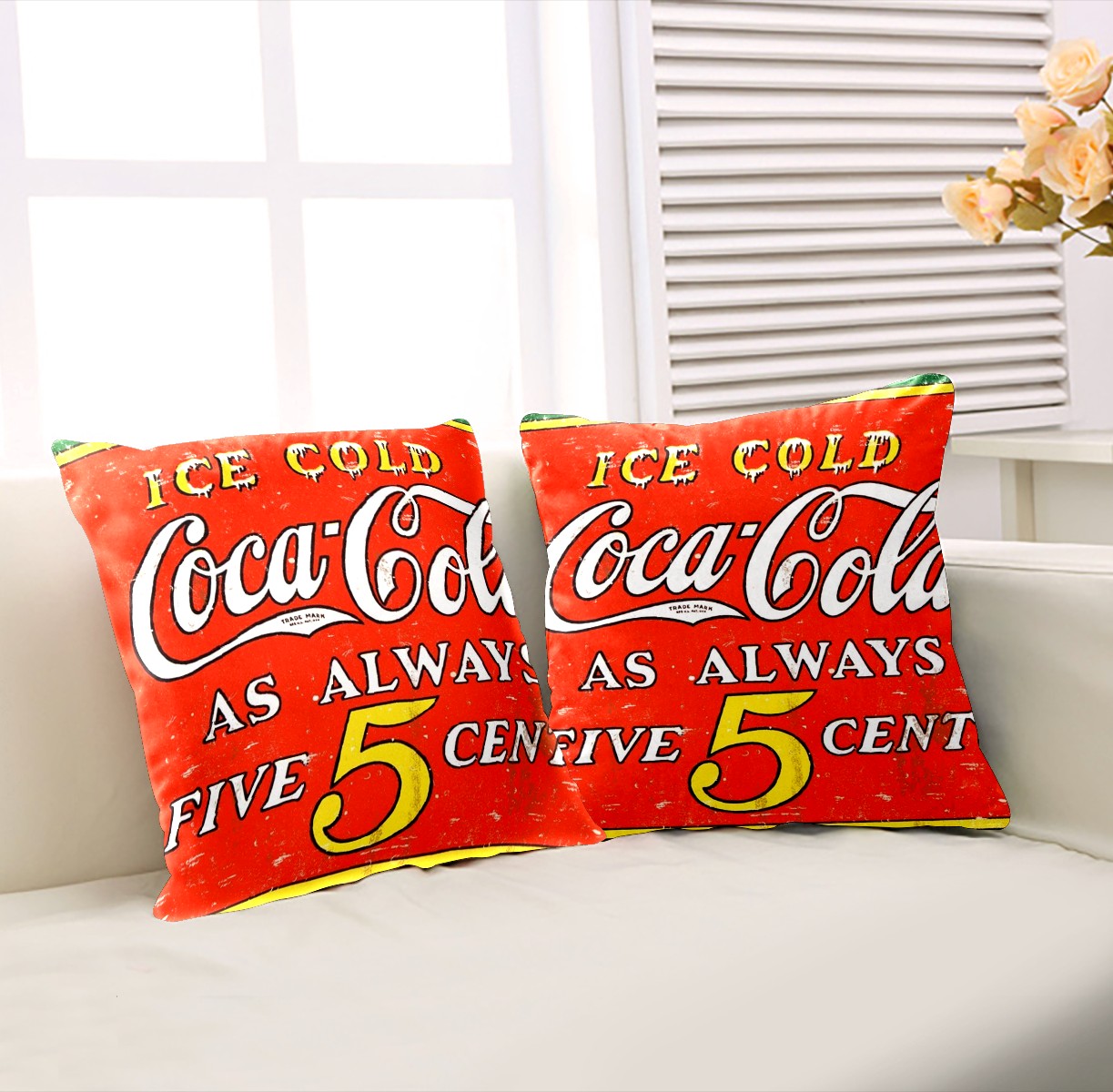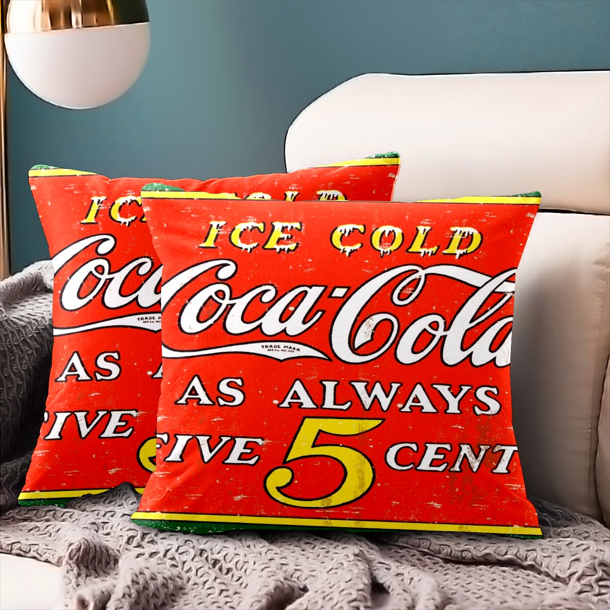 Vintage Coca Cola Sign Retro Pillow Covers 16x16 Square Decorative Throw Pillow Cover Case Soft Velvet Cushion Cover for Couch Sofa Bed Living Room Car Home Decoration Set of 2