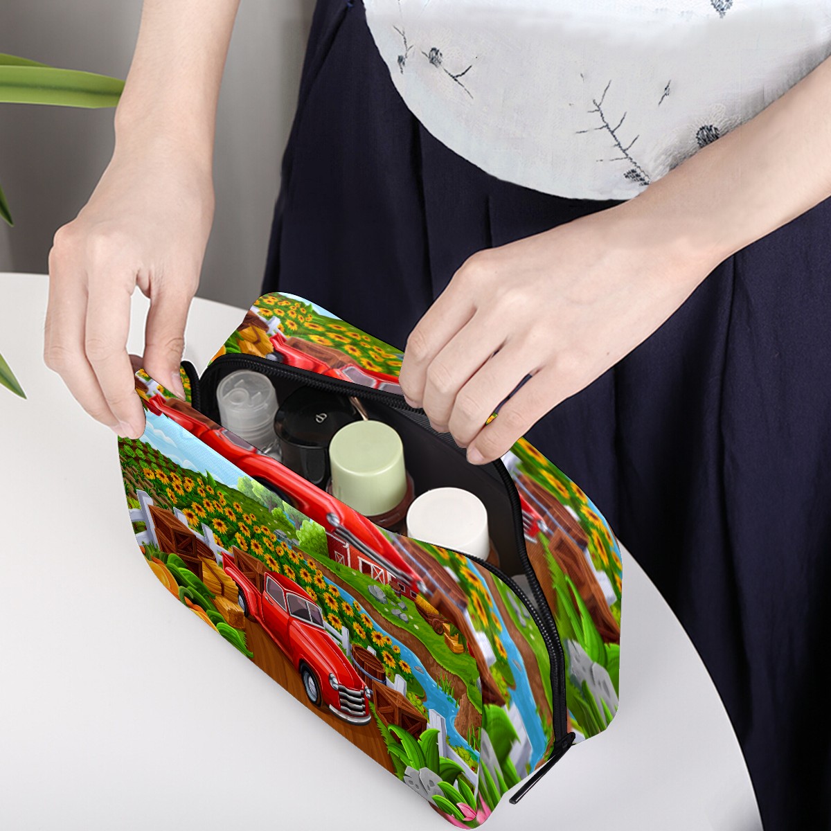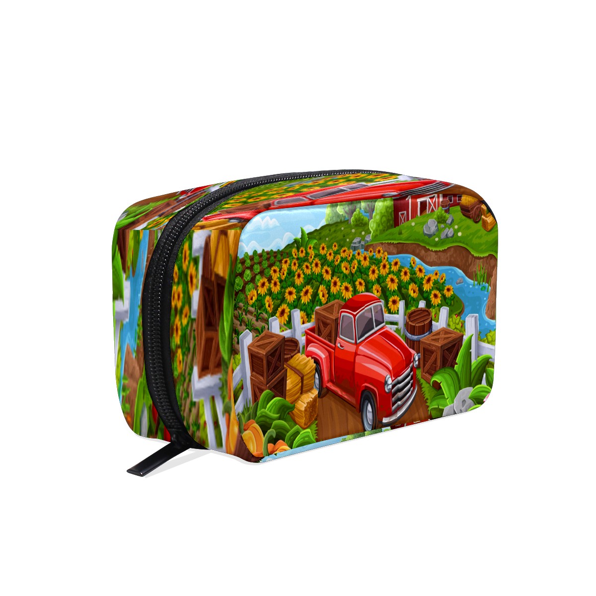 Cosmetic Bag for Women Girls Trave Makeup Bag Toiletry Case Pouch Accessories Organizer Car In Farm Sunflower Pumpkin Flower