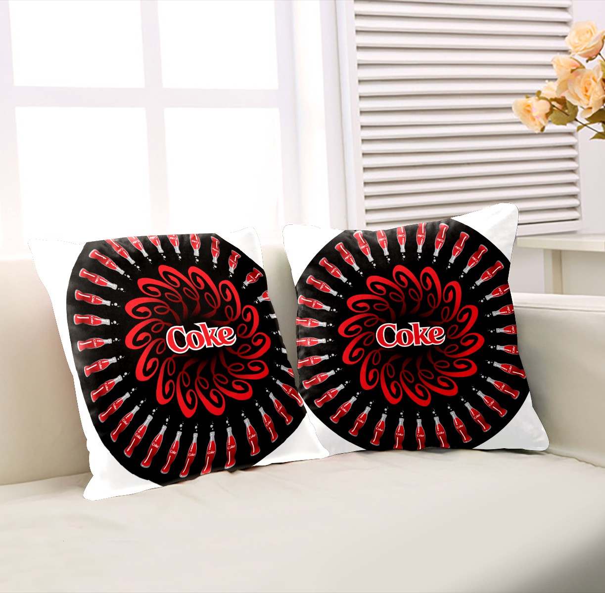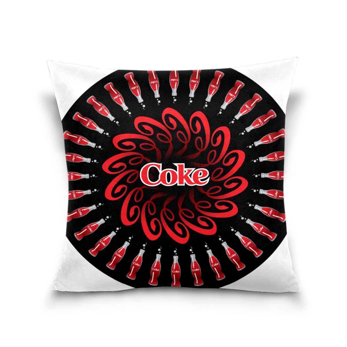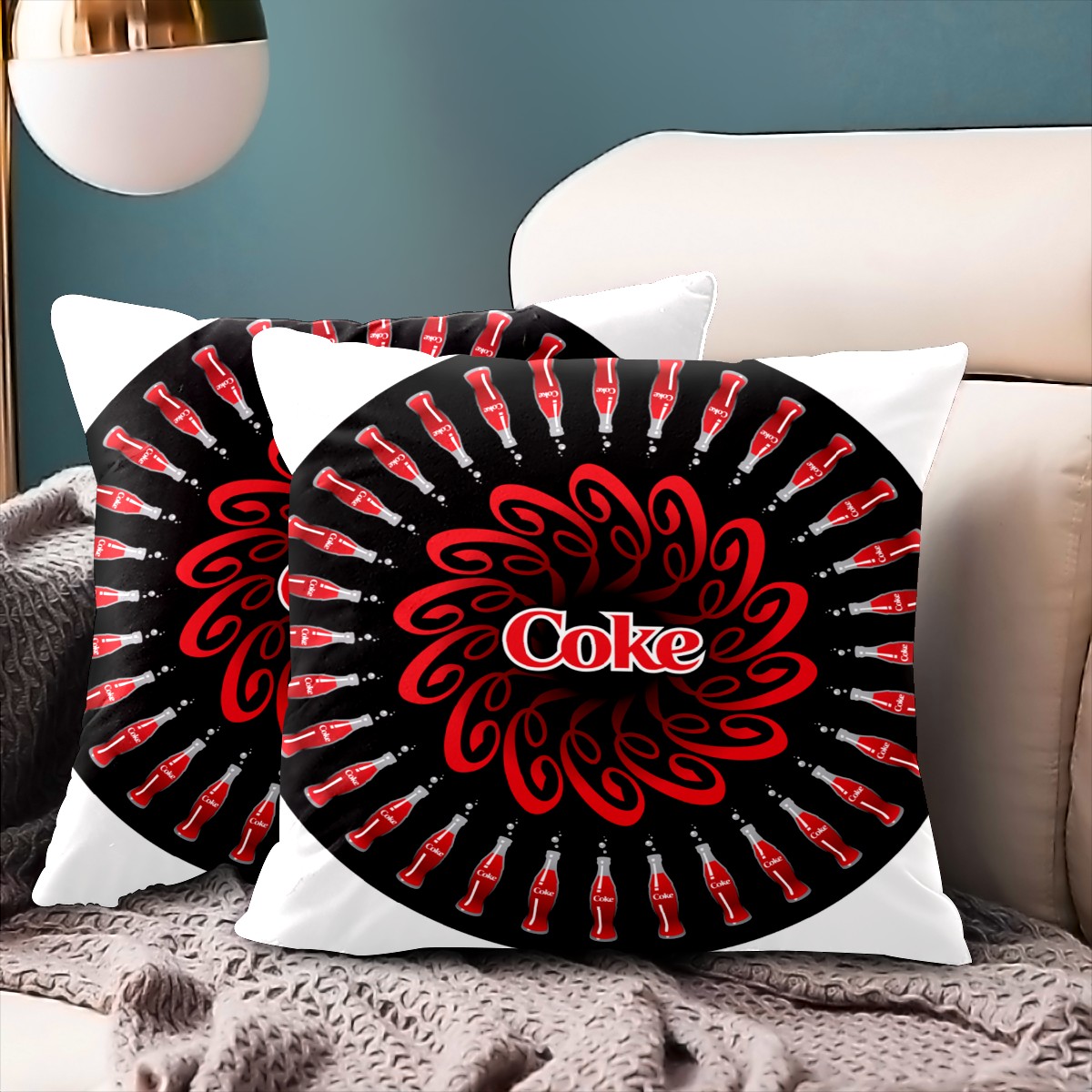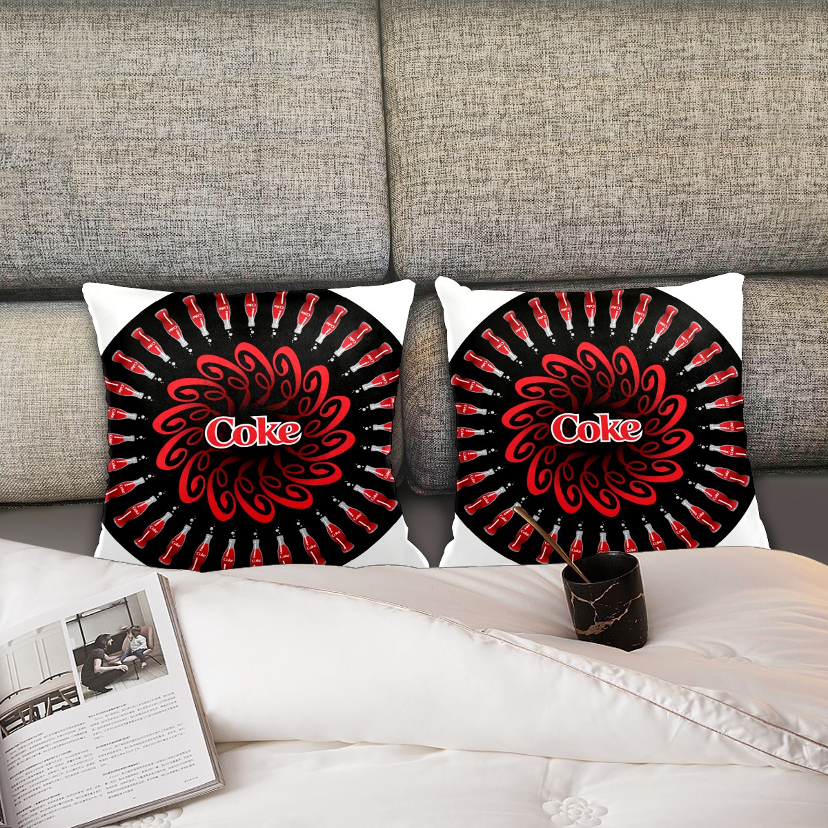 Coke Coca Cola Circle Pillow Covers 16x16 Square Decorative Throw Pillow Cover Case Soft Velvet Cushion Cover for Couch Sofa Bed Living Room Car Home Decoration Set of 2
