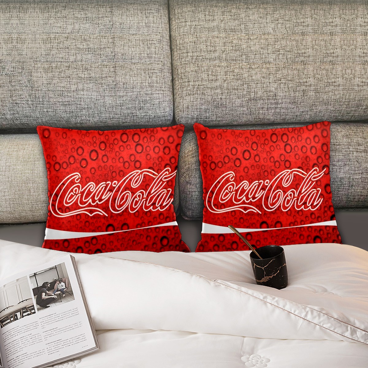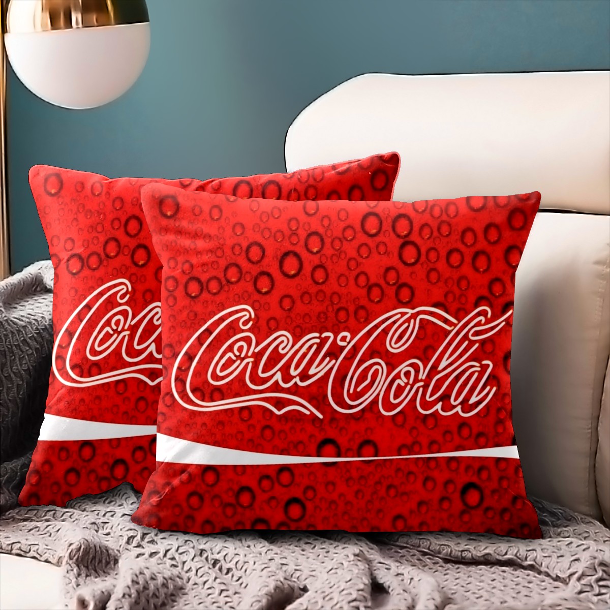 Coca Cola Pillow Covers 16x16 Square Decorative Throw Pillow Cover Case Soft Velvet Cushion Cover for Couch Sofa Bed Living Room Car Home Decoration Set of 2
