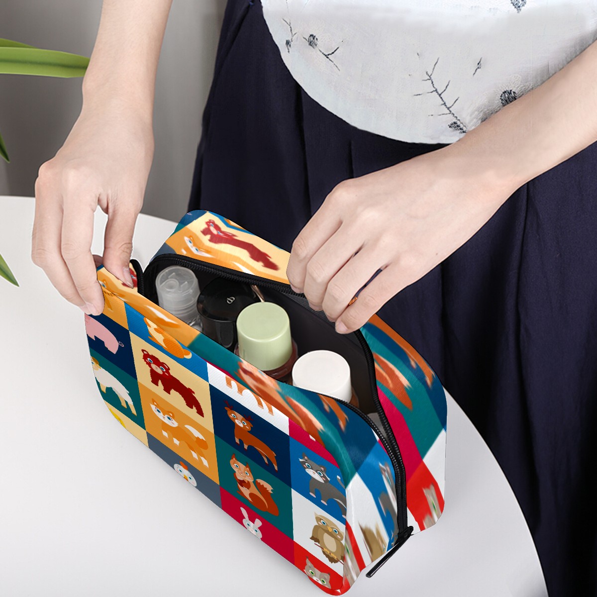 Cosmetic Bag for Women Girls Trave Makeup Bag Toiletry Case Pouch Accessories Organizer Cartoon Animal Tiger Cow Dog Pig Sheep Fox Owl Duck
