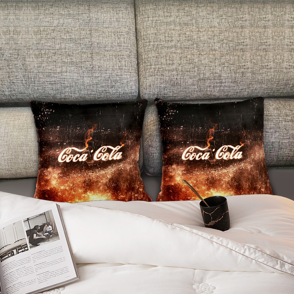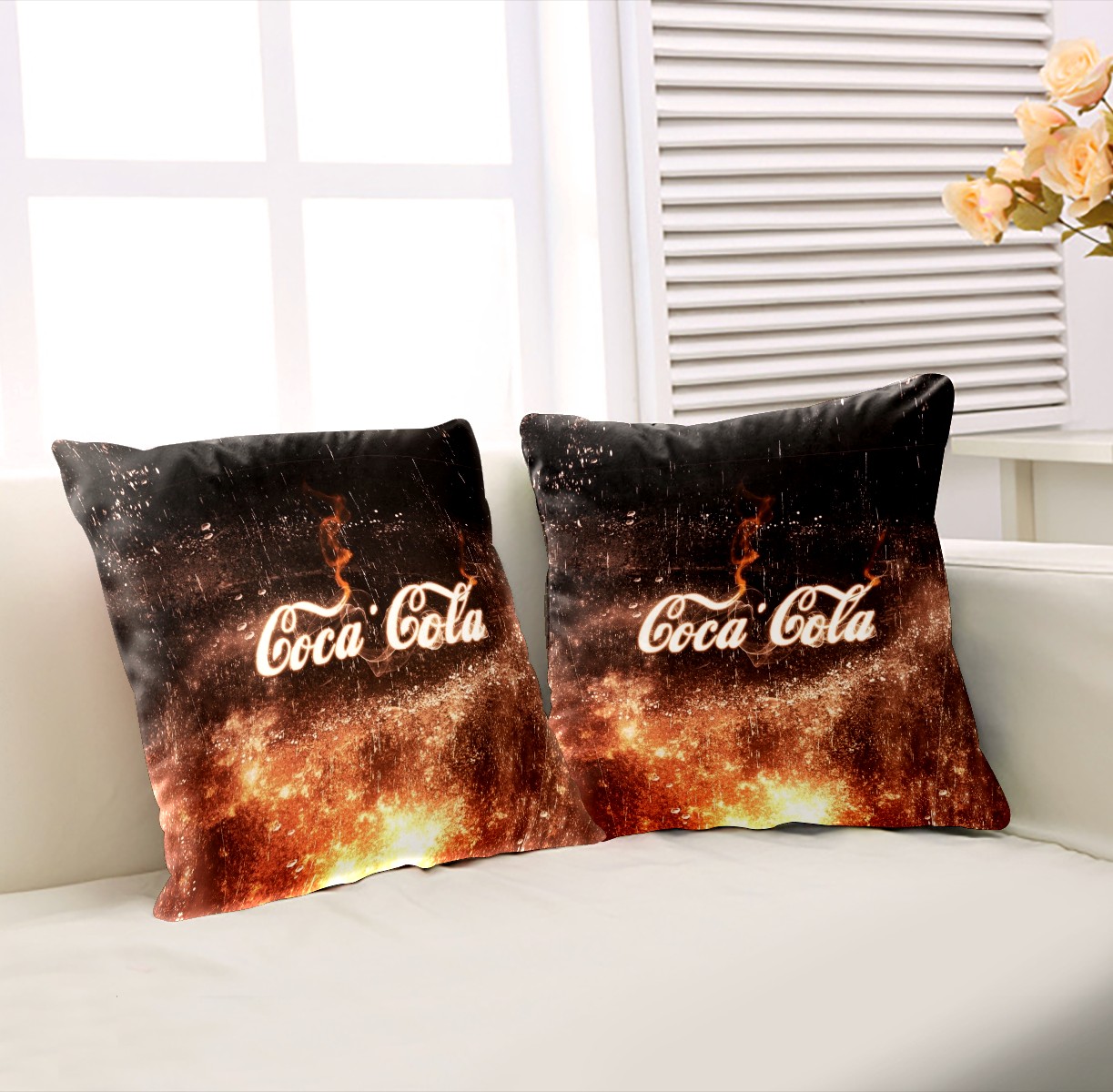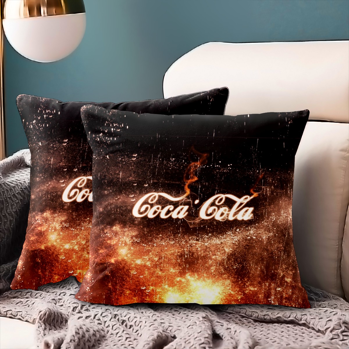 Coca Cola Sign Pillow Covers 16x16 Square Decorative Throw Pillow Cover Case Soft Velvet Cushion Cover for Couch Sofa Bed Living Room Car Home Decoration Set of 2