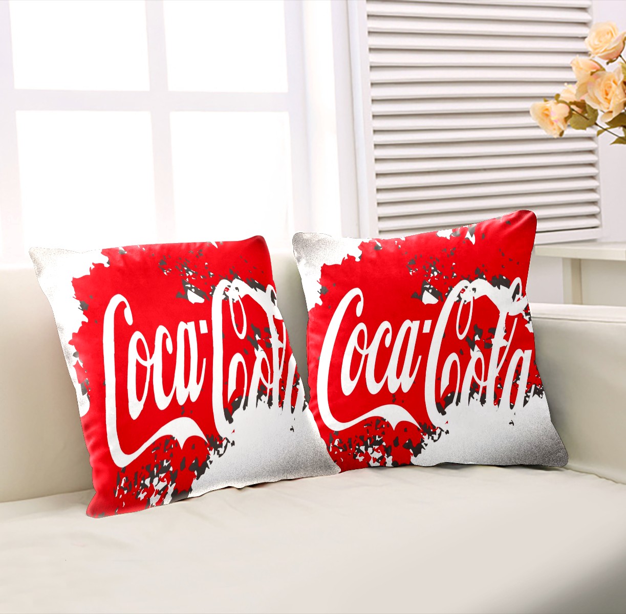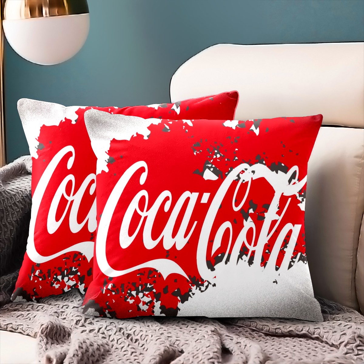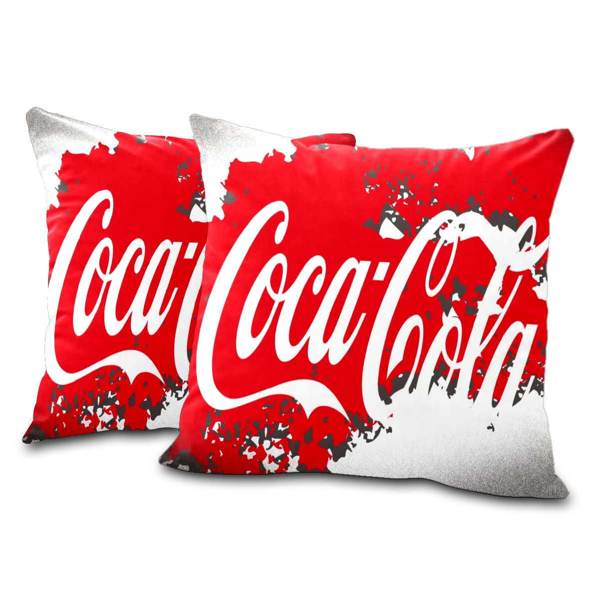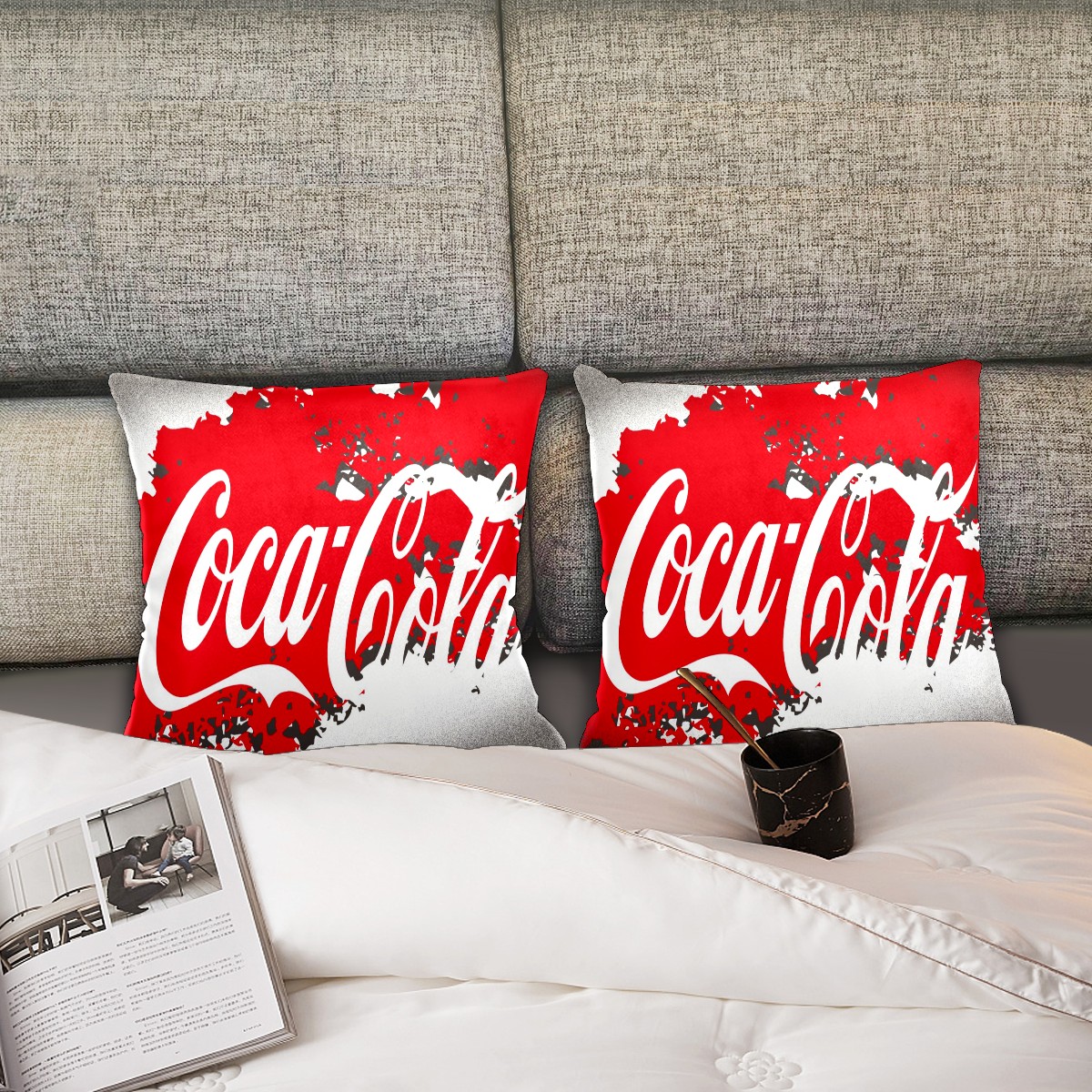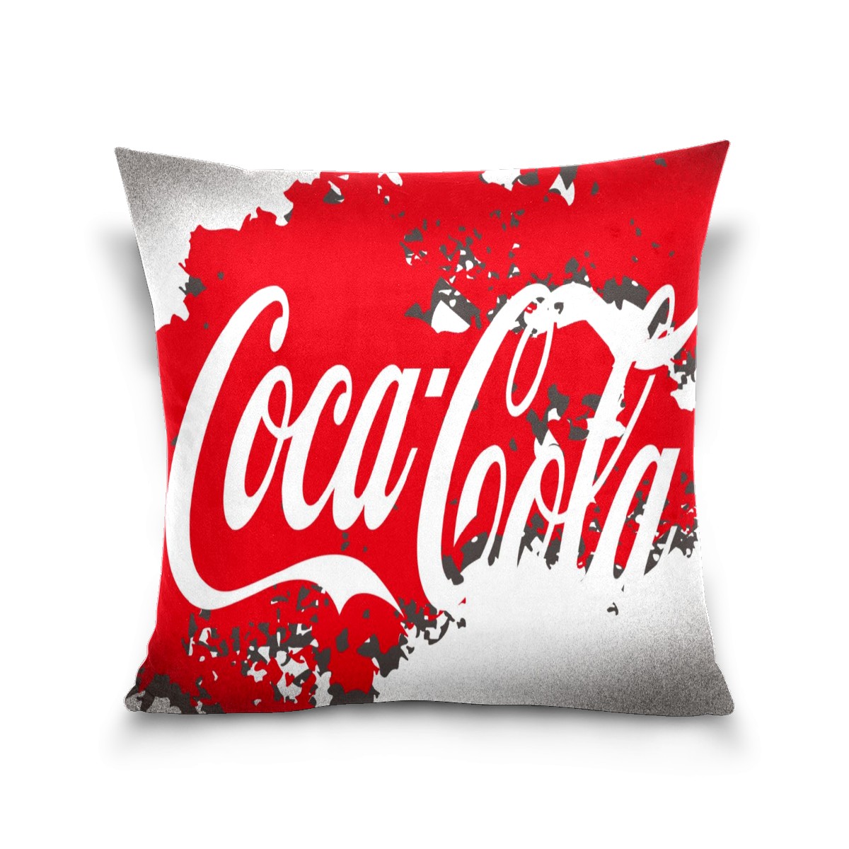 Coca Cola Map Shape Pillow Covers 16x16 Square Decorative Throw Pillow Cover Case Soft Velvet Cushion Cover for Couch Sofa Bed Living Room Car Home Decoration Set of 2