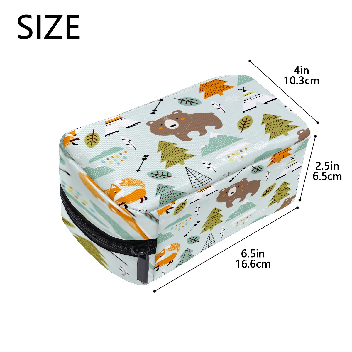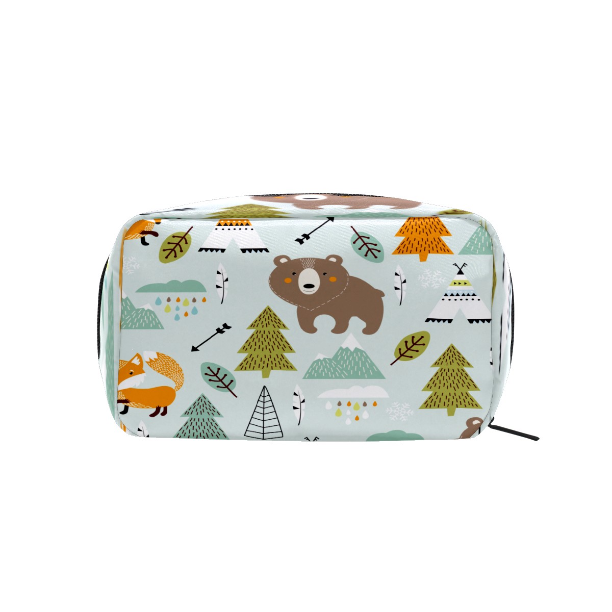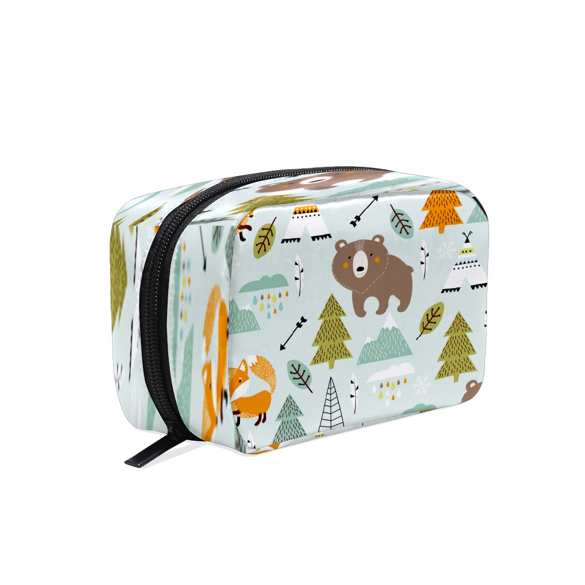 Cosmetic Bag for Women Girls Trave Makeup Bag Toiletry Case Pouch Accessories Organizer Cartoon Animal Forest Fox Bear Arrow Ethnic