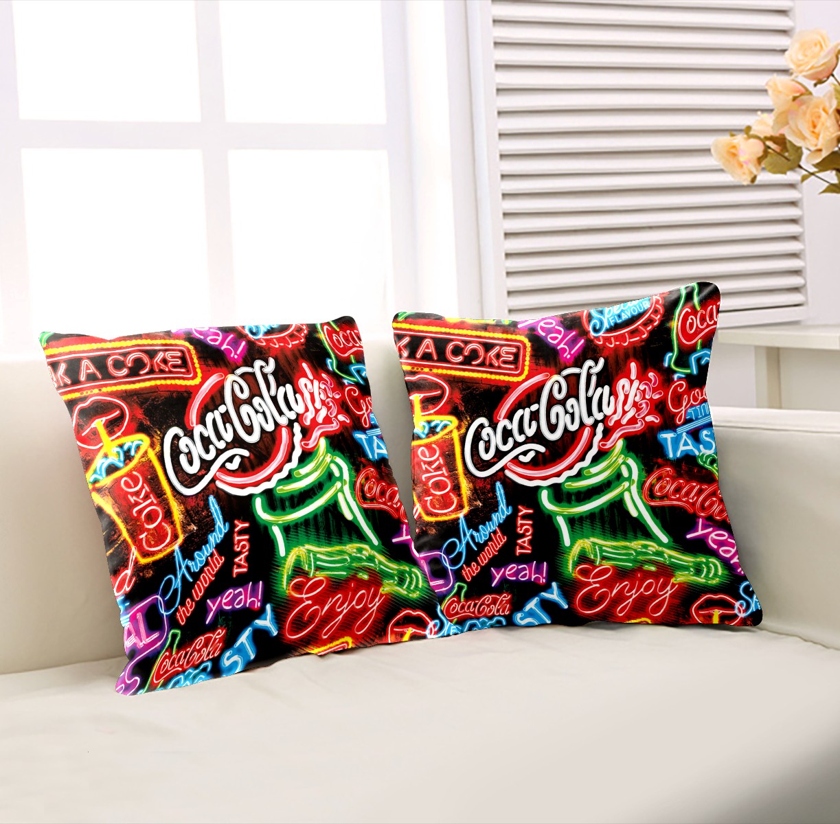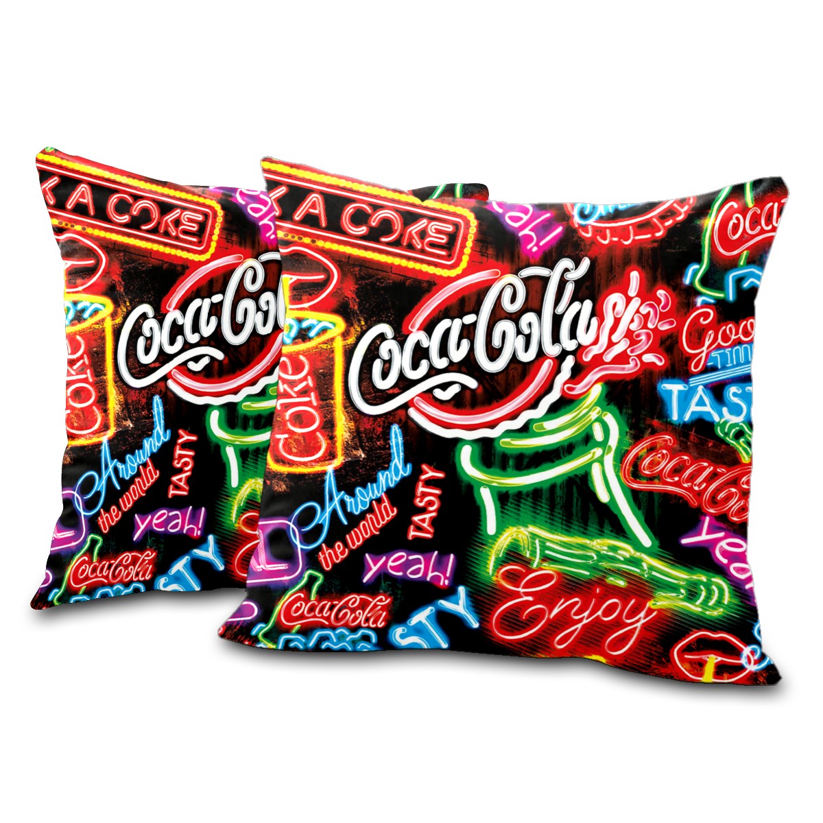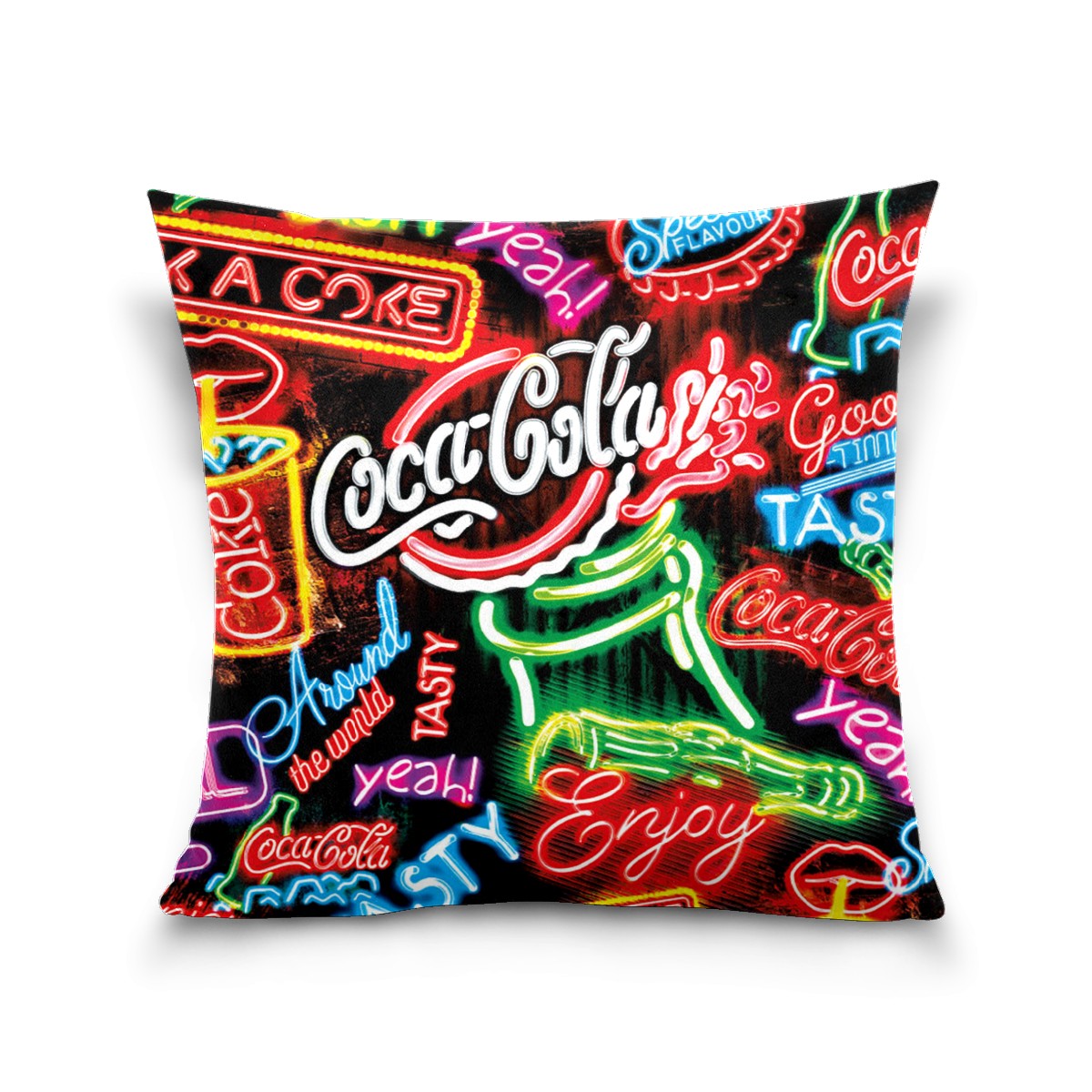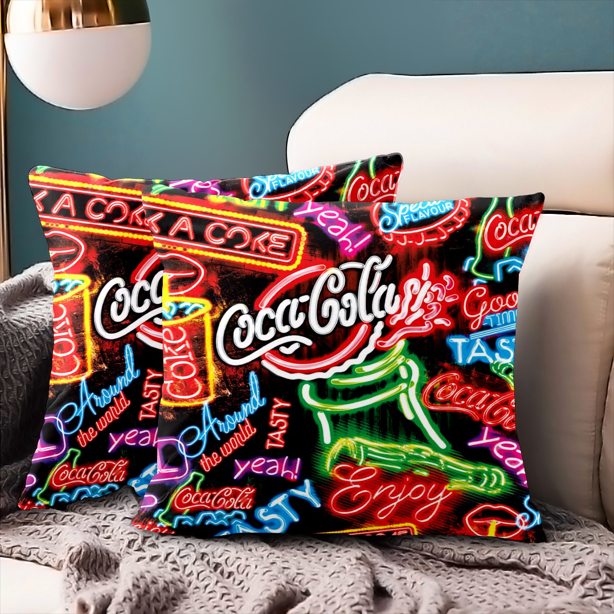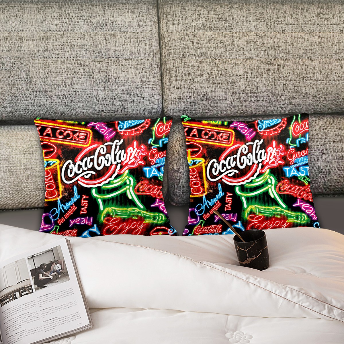 Coca Cola Graffiti Pillow Covers 16x16 Square Decorative Throw Pillow Cover Case Soft Velvet Cushion Cover for Couch Sofa Bed Living Room Car Home Decoration Set of 2