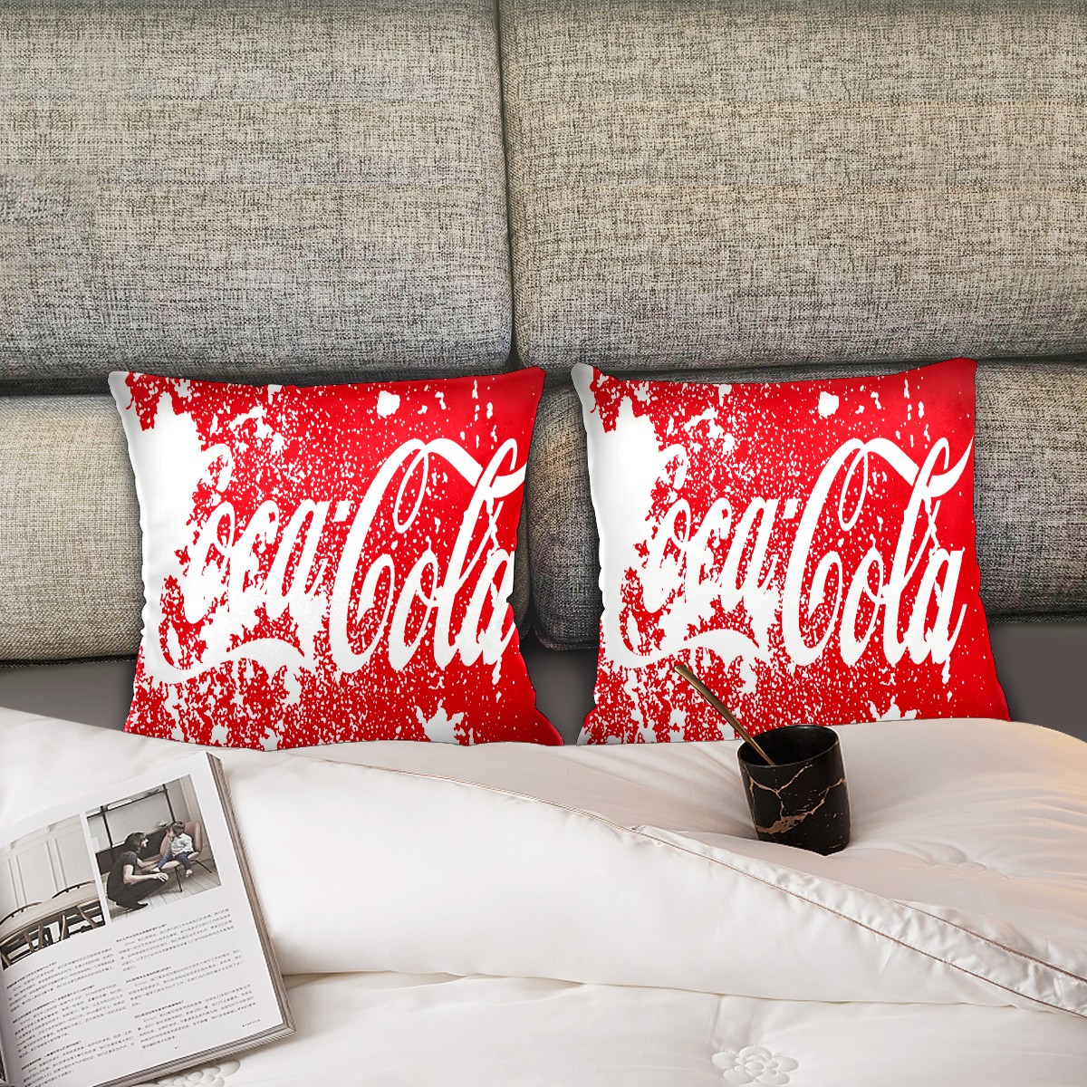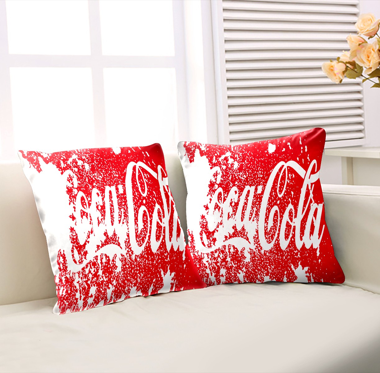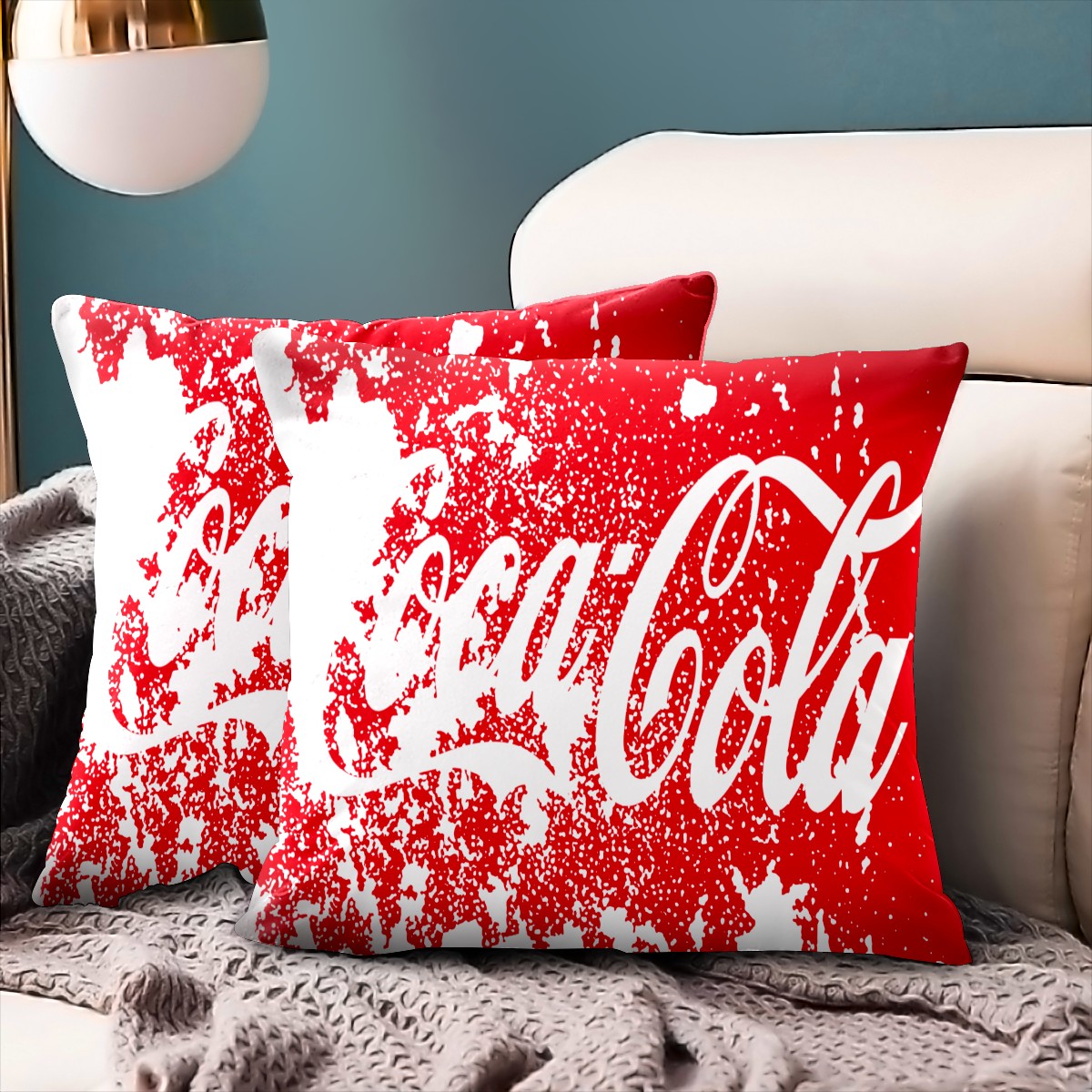 Classic Coca Cola Red Abstract Pillow Covers 16x16 Square Decorative Throw Pillow Cover Case Soft Velvet Cushion Cover for Couch Sofa Bed Living Room Car Home Decoration Set of 2