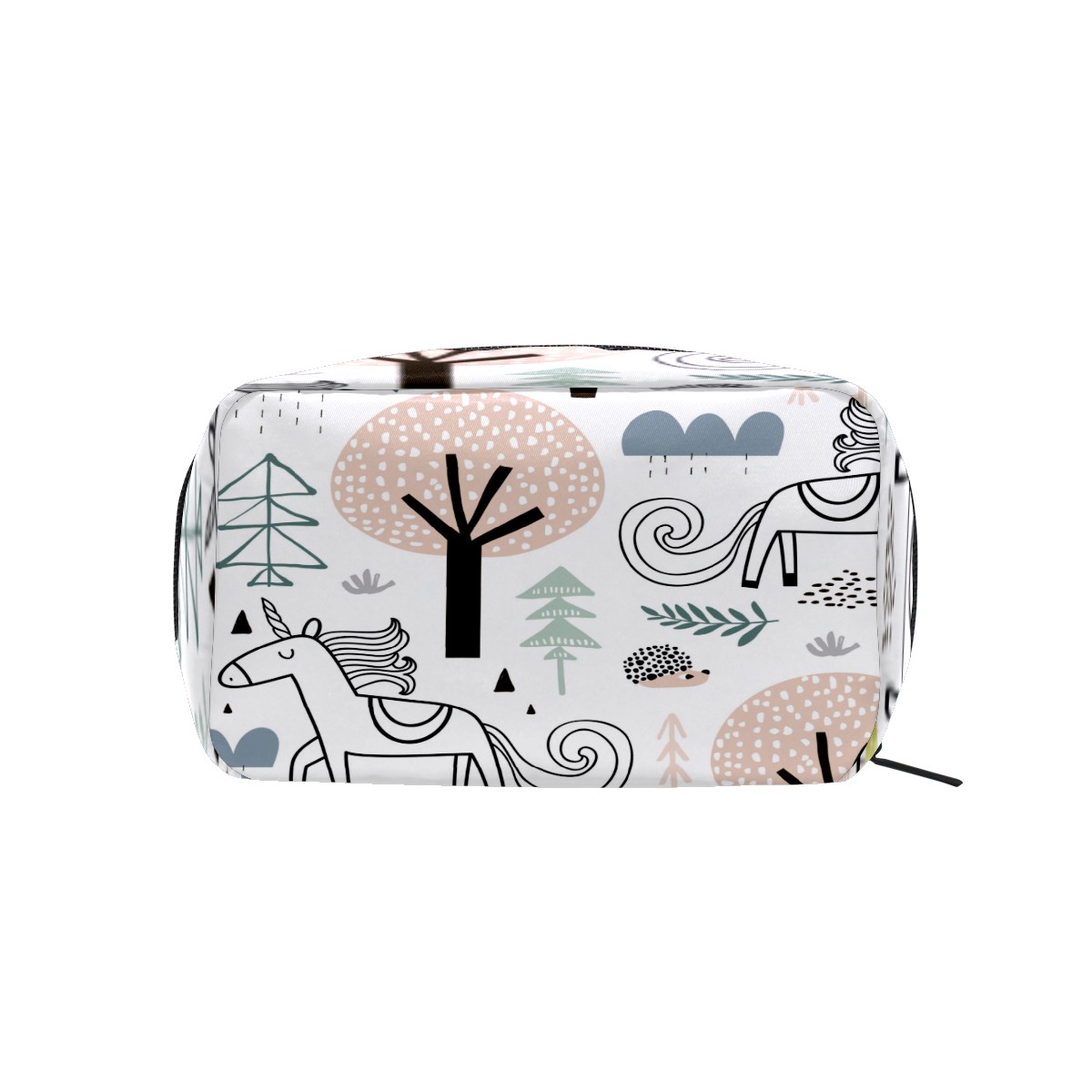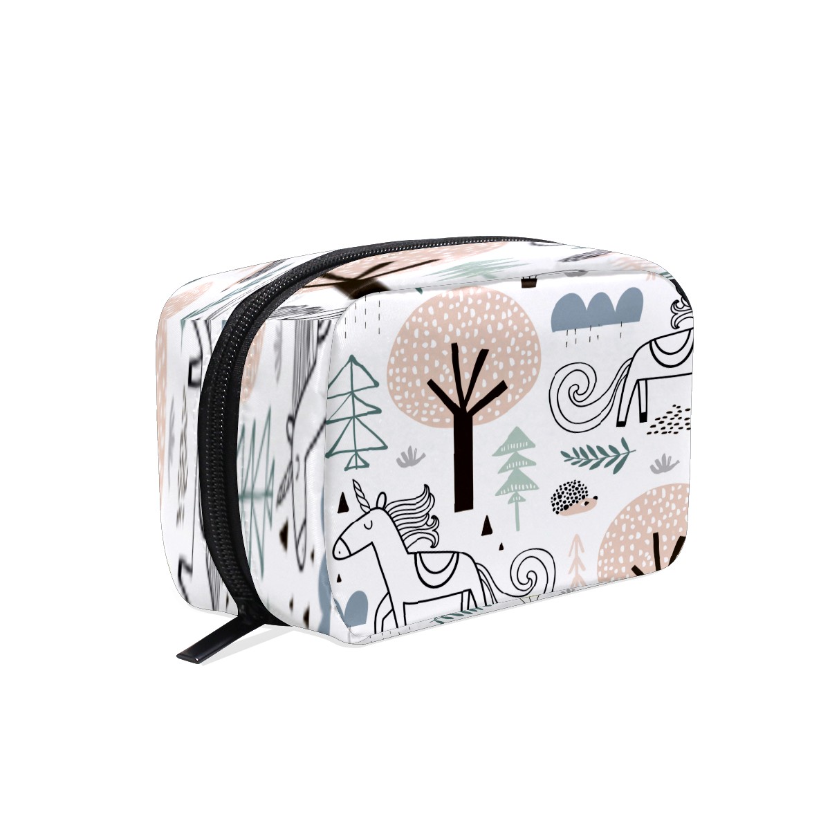 Cosmetic Bag for Women Girls Trave Makeup Bag Toiletry Case Pouch Accessories Organizer Cartoon Animal Forest Unicorn Horse Tree