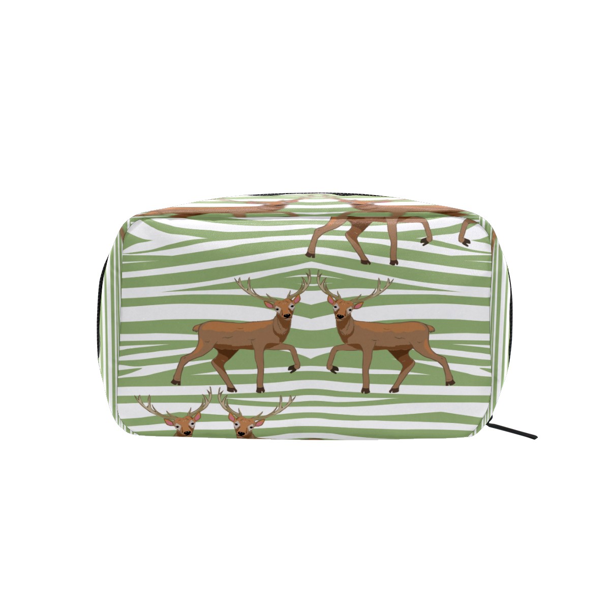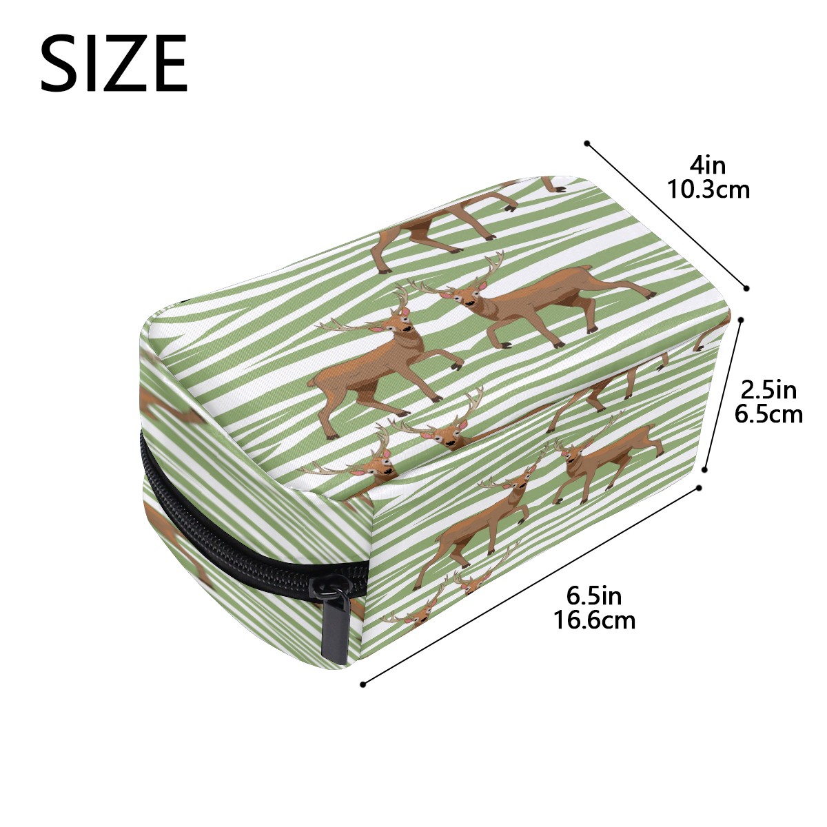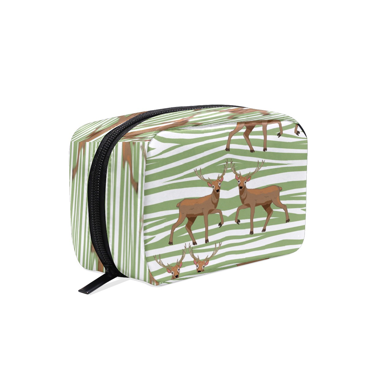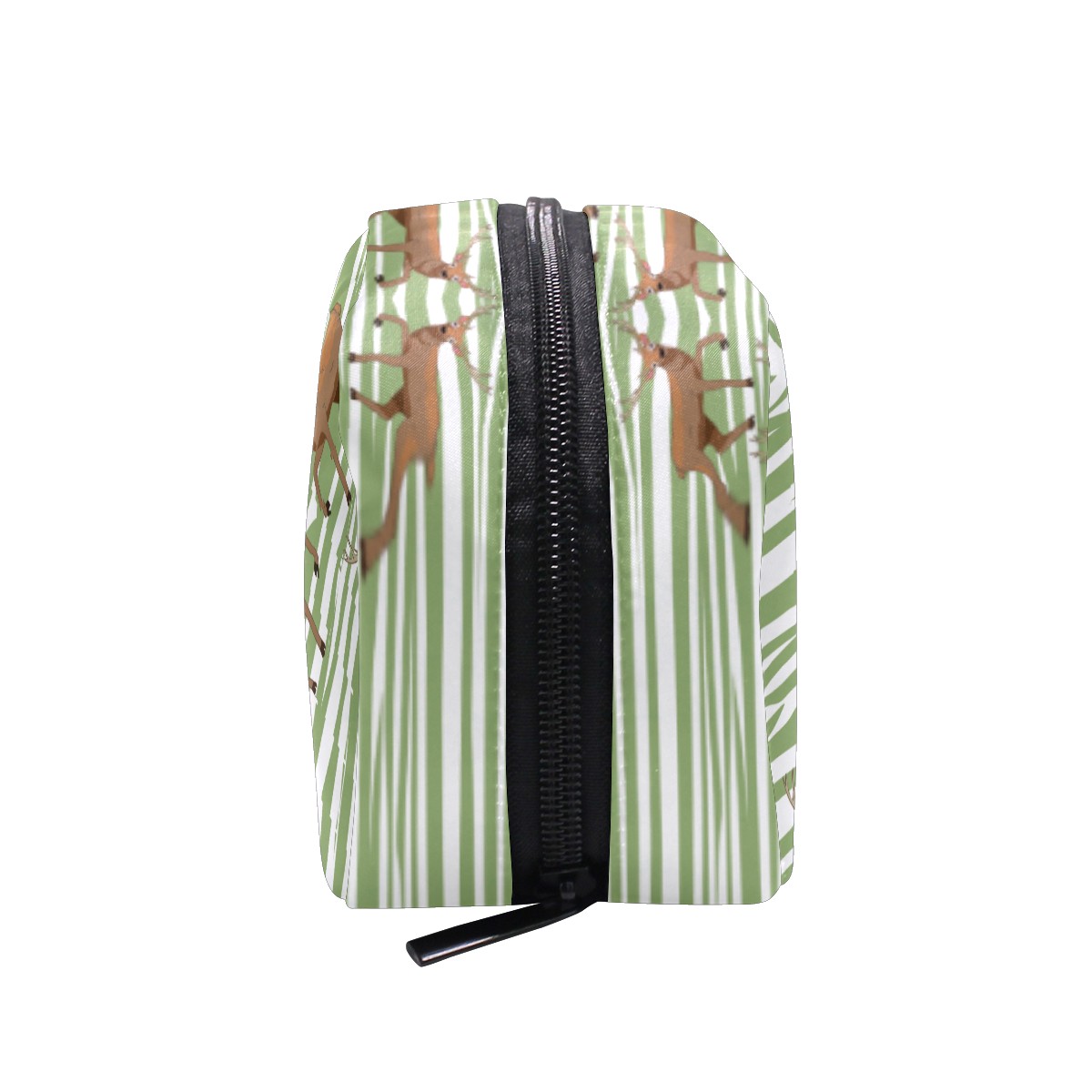 Cosmetic Bag for Women Girls Trave Makeup Bag Toiletry Case Pouch Accessories Organizer Cartoon Animal Deer With Green Zebra Skin Print