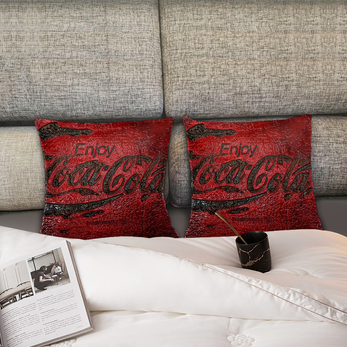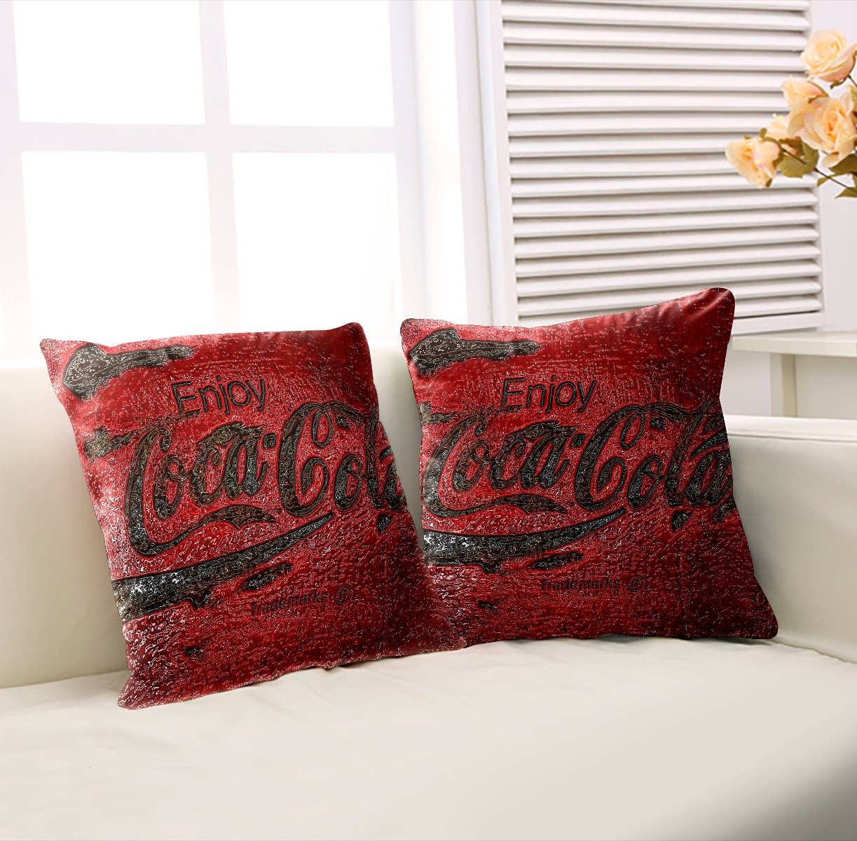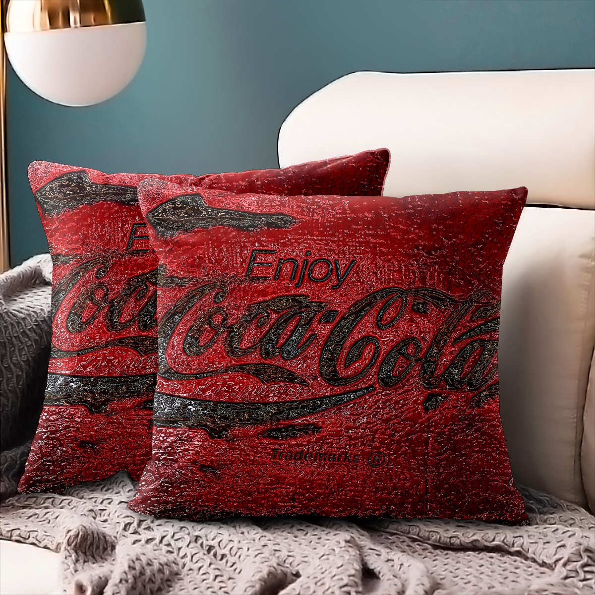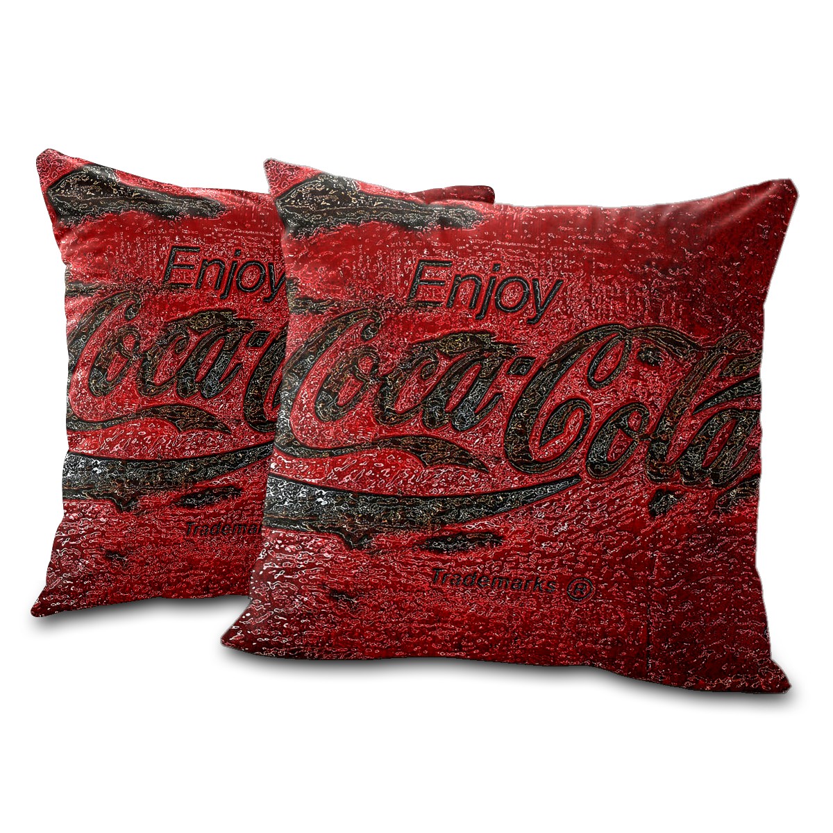 Classic Coca Cola Vintage Red Pillow Covers 16x16 Square Decorative Throw Pillow Cover Case Soft Velvet Cushion Cover for Couch Sofa Bed Living Room Car Home Decoration Set of 2