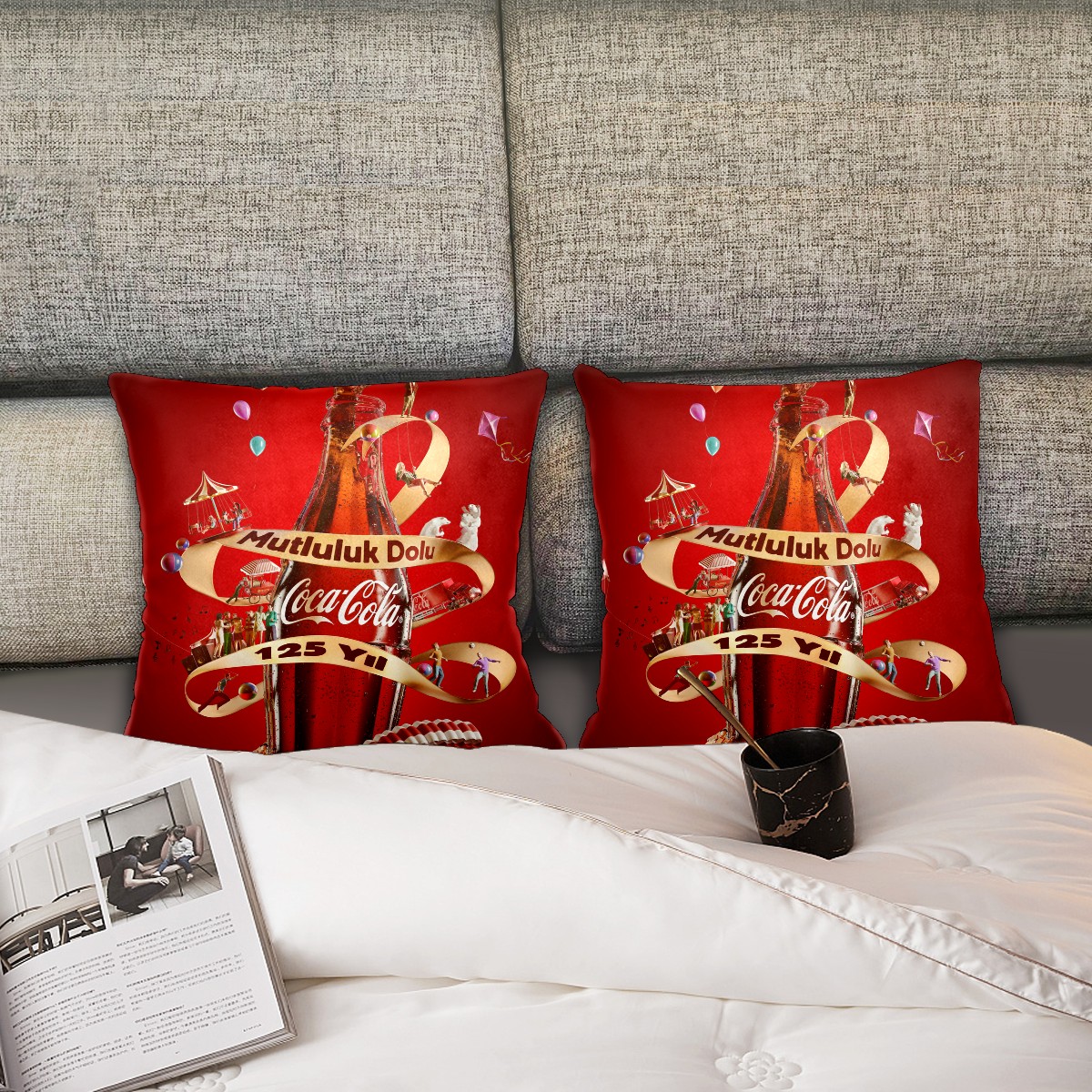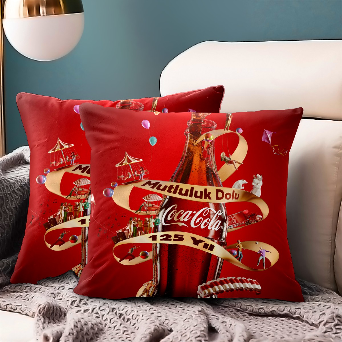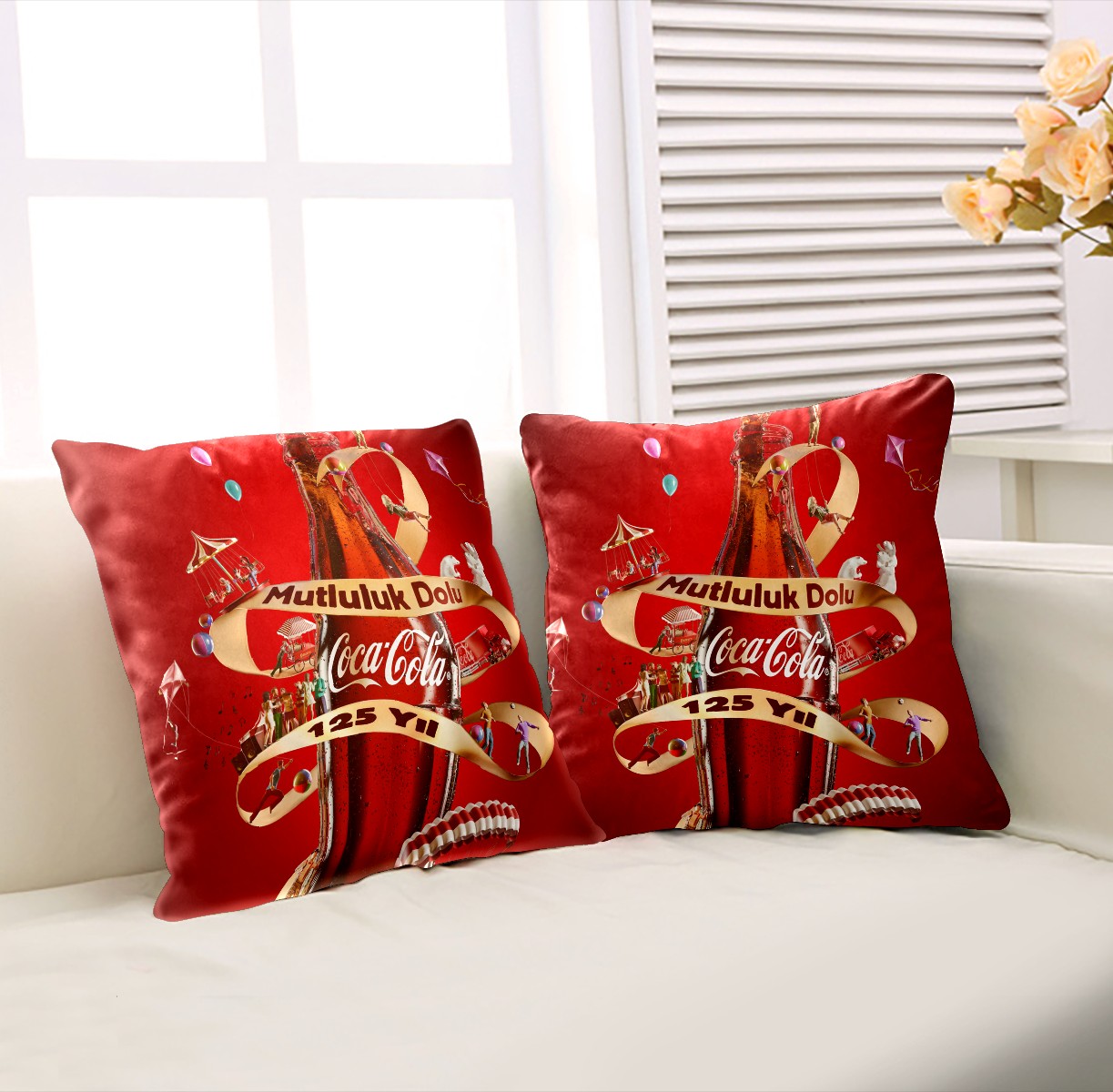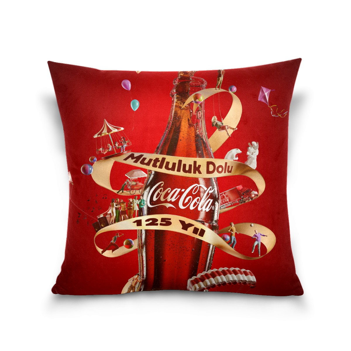 Classic Coca Cola Bottle Pillow Covers 16x16 Square Decorative Throw Pillow Cover Case Soft Velvet Cushion Cover for Couch Sofa Bed Living Room Car Home Decoration Set of 2