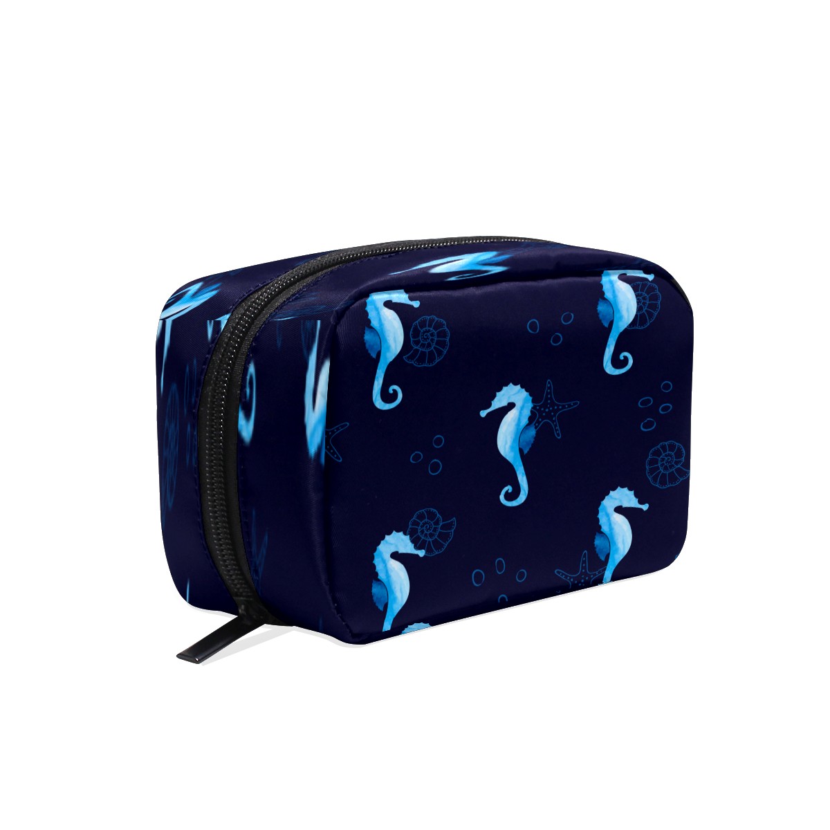 Cosmetic Bag for Women Girls Trave Makeup Bag Toiletry Case Pouch Accessories Organizer Blue Seahose Starfish Snail Pattern