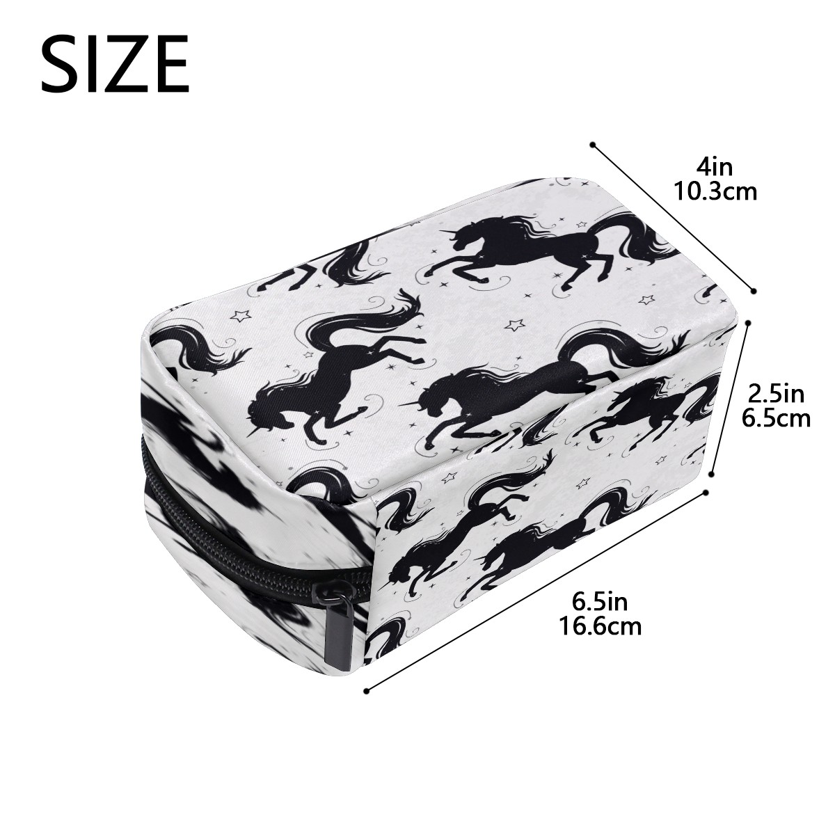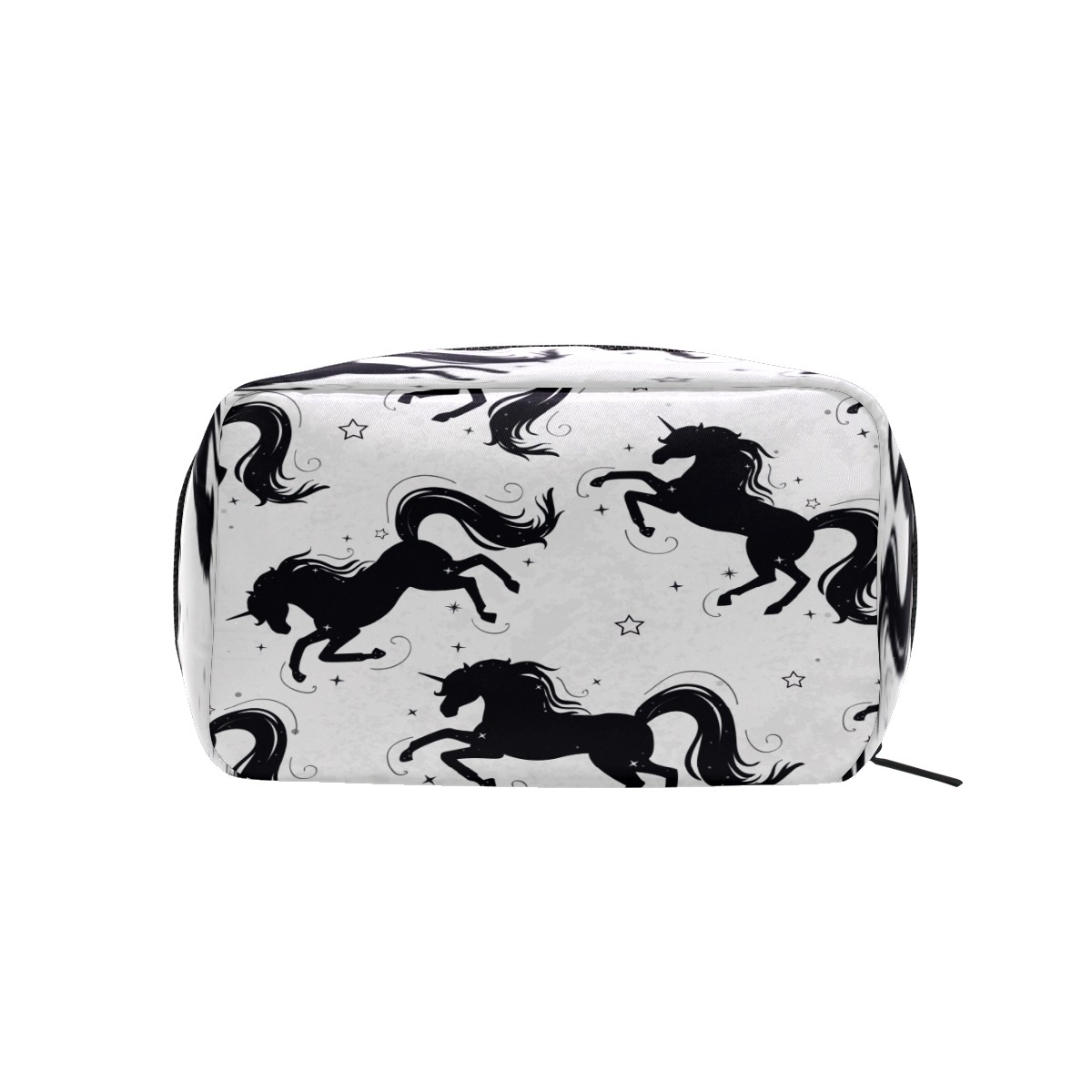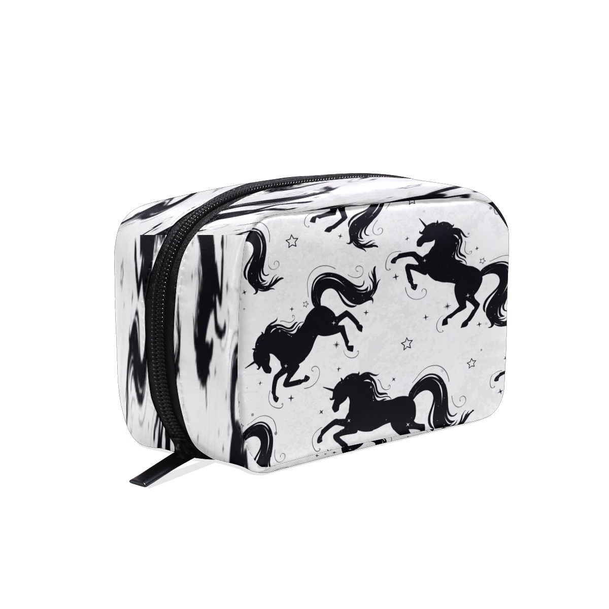 Cosmetic Bag for Women Girls Trave Makeup Bag Toiletry Case Pouch Accessories Organizer Black Unicorn Horse Stars Pattern