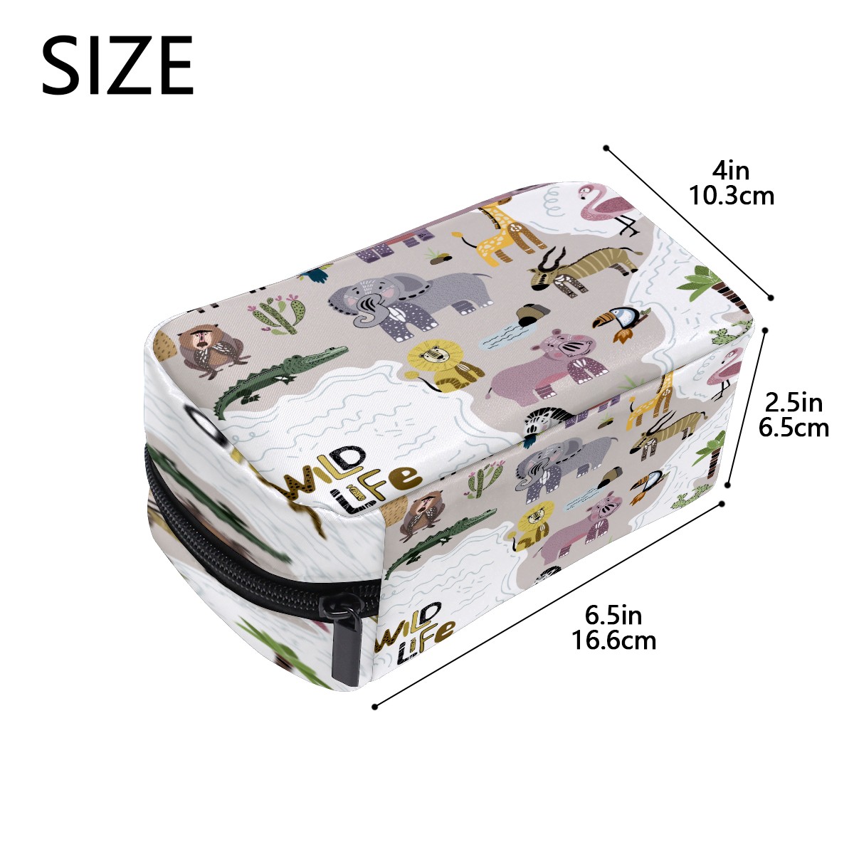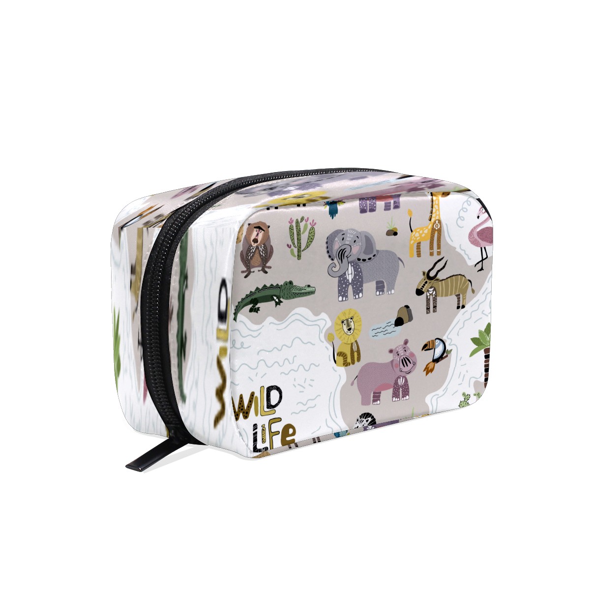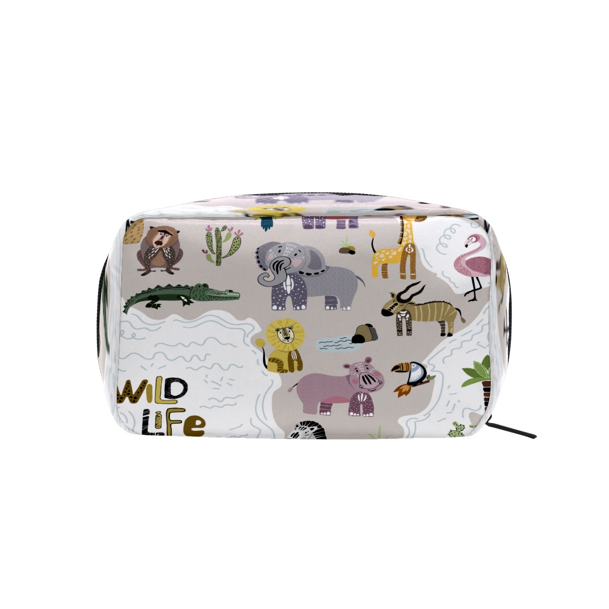Cosmetic Bag for Women Girls Trave Makeup Bag Toiletry Case Pouch Accessories Organizer Africa Wild Life Animal Elephant Zebra Lion Flamingo